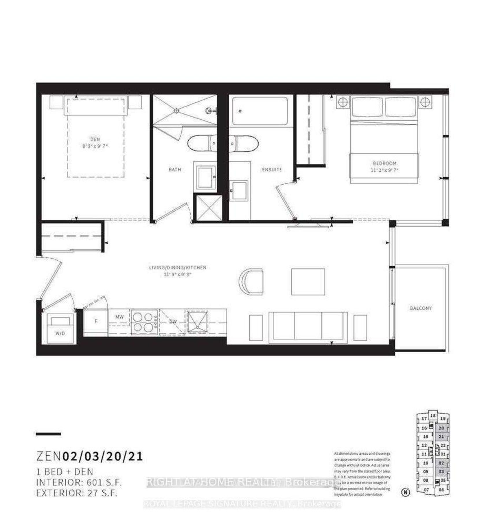 Modern 1+Den, 2-Bath at Zen King West by CentreCourt! Stylish and functional unit in a prime Liberty Village location, steps from Strachan Ave for easy access in and out of the neighbourhood. Smart layout features a primary bedroom with ensuite bath and closet for added privacy. Spacious den with sliding door can easily serve as a second bedroom or home office. Open-concept living and dining area offers great flexibility. Sleek modern kitchen with luxury built-in appliances. Enjoy outdoor living on the spacious balcony. Steps to The Ex, Trillium Park, Ontario Place, Centre Island, Hotel X, and more. Live in elegance, comfort, and convenience at Zen King West. **Extras: Built-in fridge, stove, dishwasher, microwave, washer & dryer, window blinds. **Amenities: Gym, party room, 24-hour concierge & security, BBQ area, lounge, and more.