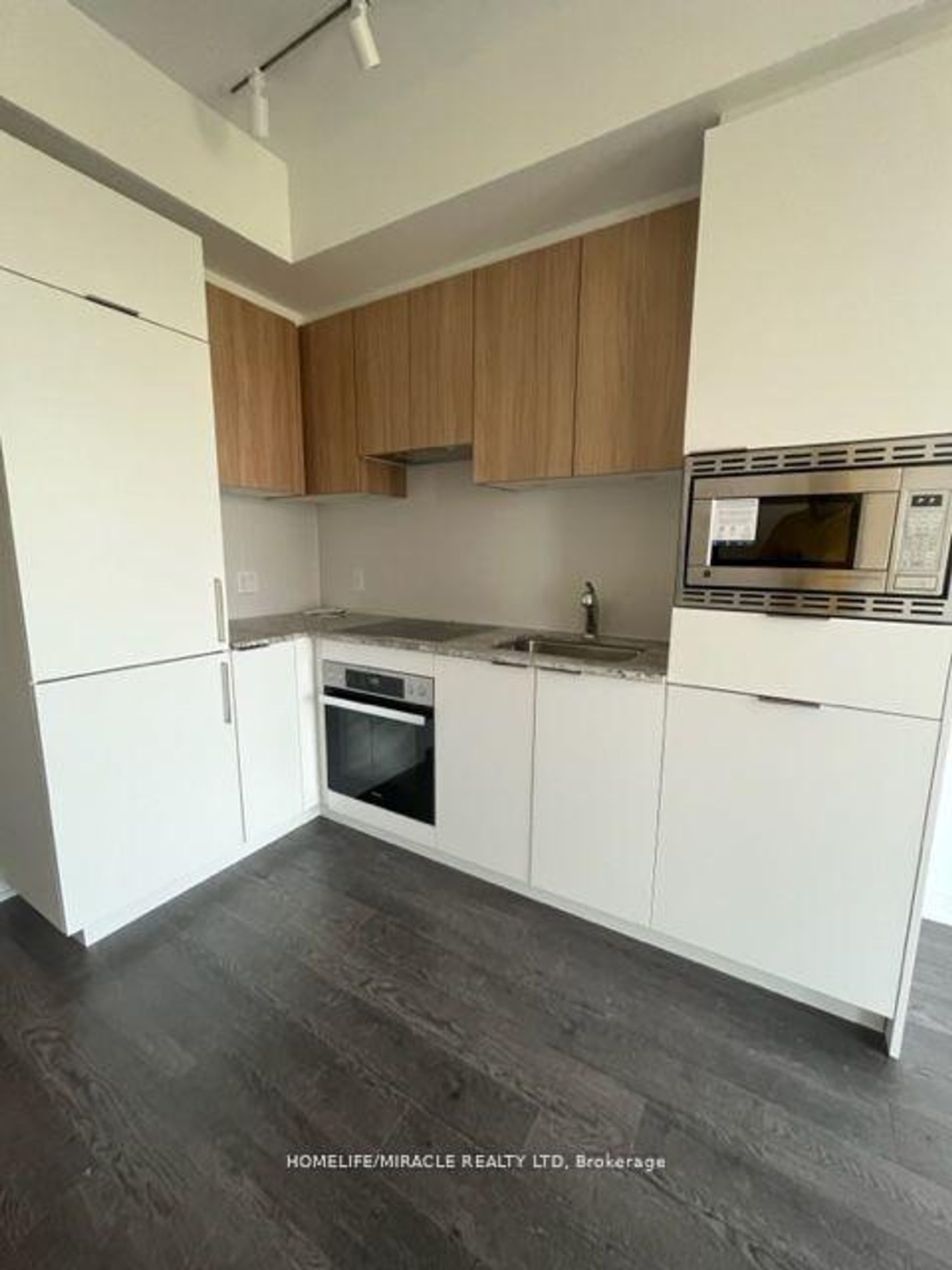 RODEO CONDOMINIUMS @ Shops at Don Mills: One Bed w/ LARGE TERRACE. Stunning view, architecture by Rodeo Drive apart as an inspiring landmark in the Don Mills community. Connected to great shopping, fine dining, schools, parks, libraries and community centers. The TTC is at your doorstep offering fast connections to the Yonge/Bloor subway line and downtown. Integrated counter depth refrigerator, S/S slide in range with glass top, Built-in oven, Paneled multicycle Dishwasher, S/S Microwave, Built-in hood fan vented to the exterior. Ceiling mounted lighting fixture. Stacked white washer/Dryer.