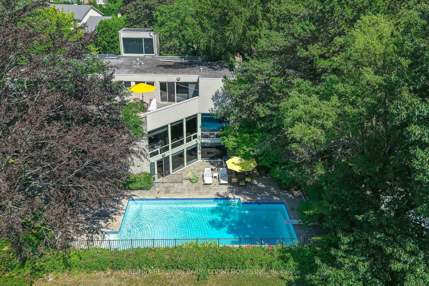 Architecturally Significant and Newly Renovated Residence In Prestigious Windfields Neighbourhood Backing Directly Onto Windfields Park. The Home's Brutalist Architecture Creates Immersive Privacy and An Idyllic Natural Sanctuary With Floor to Ceiling Picture Windows On Every Level Featuring Custom Belgian Linen Window Coverings, Expansive 2nd Floor Sundeck with Clear Views of Windfields Park and Access From All 4 Bedrooms on the 2nd Floor, Plus Walk-Up From Lower Level to Rear Gardens. 3-Car Garage With 8+ Car Circular Drive. Formal Living, Dining, Kitchen, Sunken Family Room Plus Servery on Main Level with Walk-Out to Flagstone Patio and Outdoor Pool. Open riser staircase connects all levels of the home, enhancing the flow of natural light throughout. Lower Level features 5th Bedroom, Wet Bar, Rec Room With Wood Burning Fireplace, Sauna, Laundry and Floor to Ceiling Picture Windows With Views of the Rear Gardens Plus Walk-Up to Patio. A True Escape From The City, Within The City! Convenient Access to 401, 404/DVP, Granite Club, Public and Private Schools in The Area.