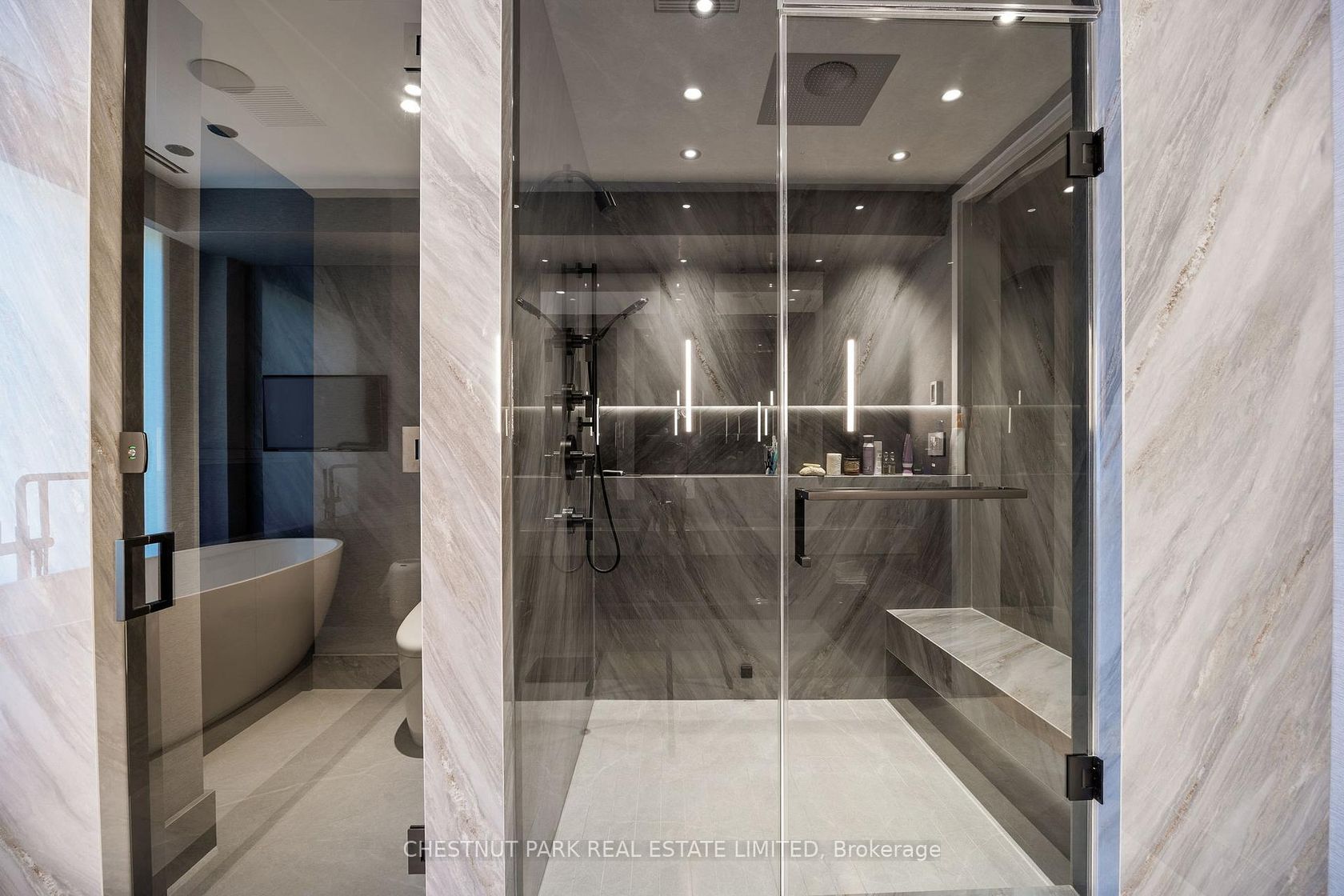 Outstanding custom renovation just completed!! Loft-style condo in quiet boutique building that feels like a private home. Only 7 suites. 2 bedrooms with ensuites. Powder room. Exposed brick. Stunning white oak herringbone floors. Luxury hotel feel. Special kitchen: built-in stainless steel wall ovens and microwave, Panelled fridge, built in dishwasher, gas cooktop with hood fan. Built-in coffee and water station. Reverse osmosis system. Primary suite feels like a 5 start retreat: custom-lined built-in cupboards, 5-piece ensuite with free-standing luxe bath tub and separate steam shower. Top of the line toilets. Second bedroom has a separate entrance which can be perfect as a teenage or guest suite and includes: 3-piece ensuite, wet bar, and custom built-in cupboards. See the attached floor plan and virtual tour. Fully automated throughout the suite. Control 4 system complete with lighting control and mechanical blinds. Sonos surround sound everywhere. No expense spared** 2 car ground level parking garage. Fabulous midtown location. Steps to Yorkville, cafes, restaurants, and TTC. Move right in!! Listing agent to be present for showings. ***This is a very special suite with special features*** All furnishings included. ****** Must see to appreciate!!