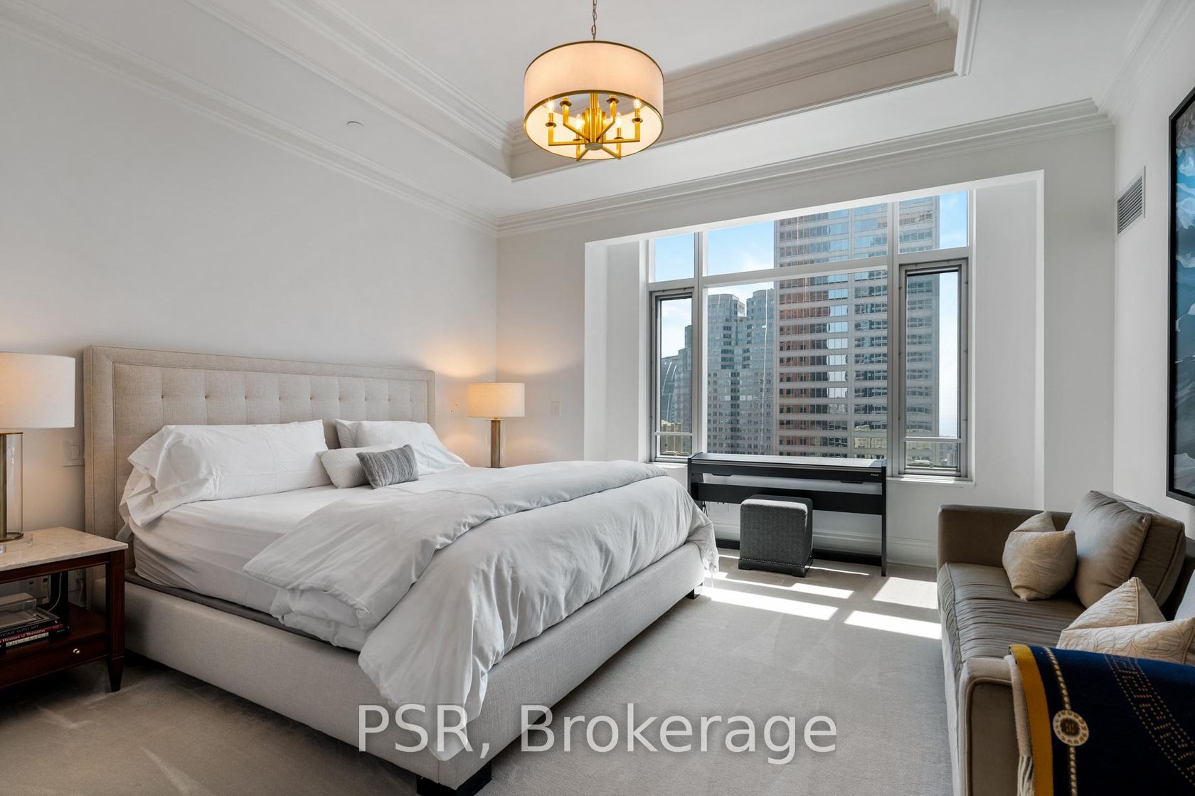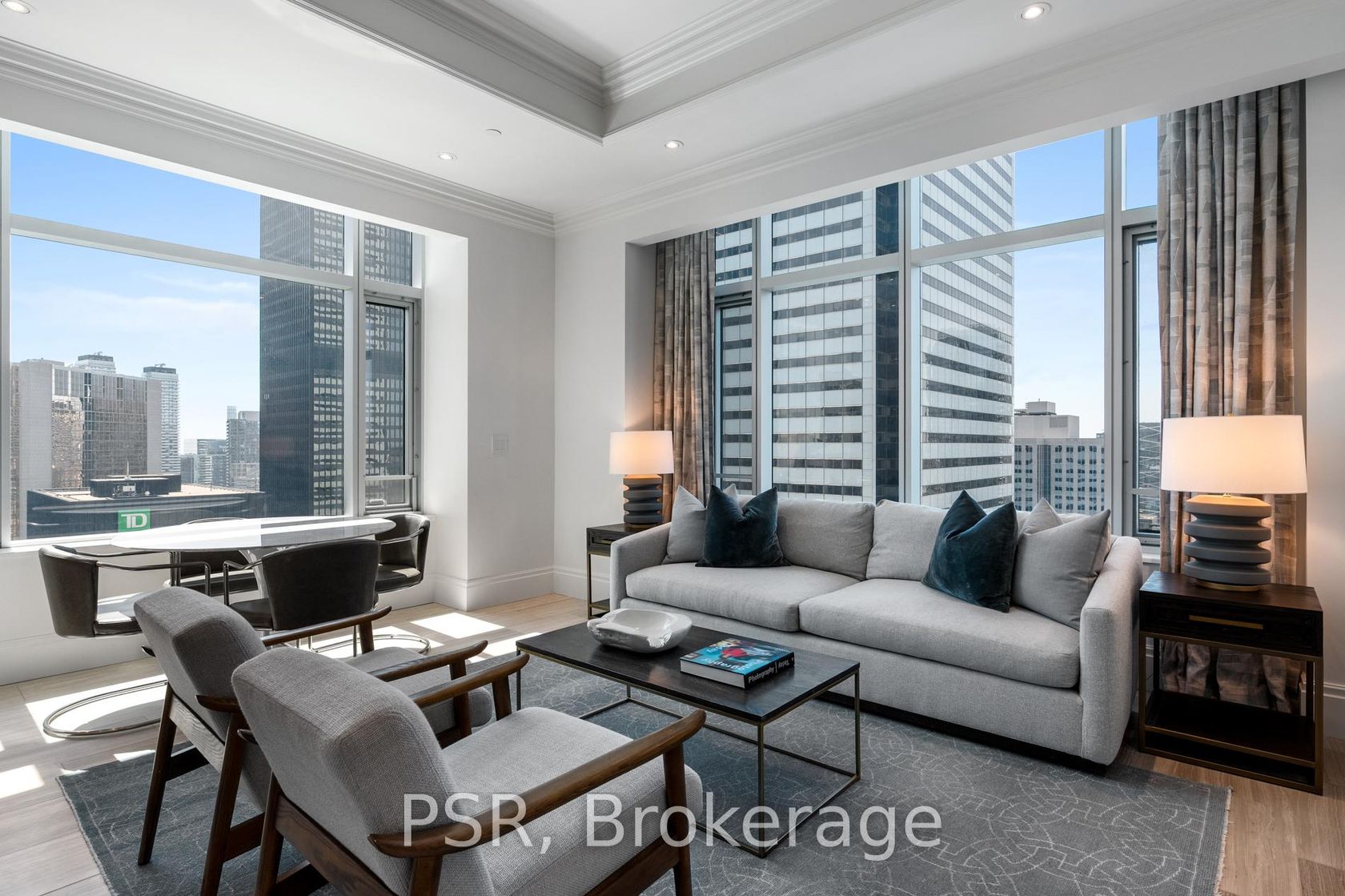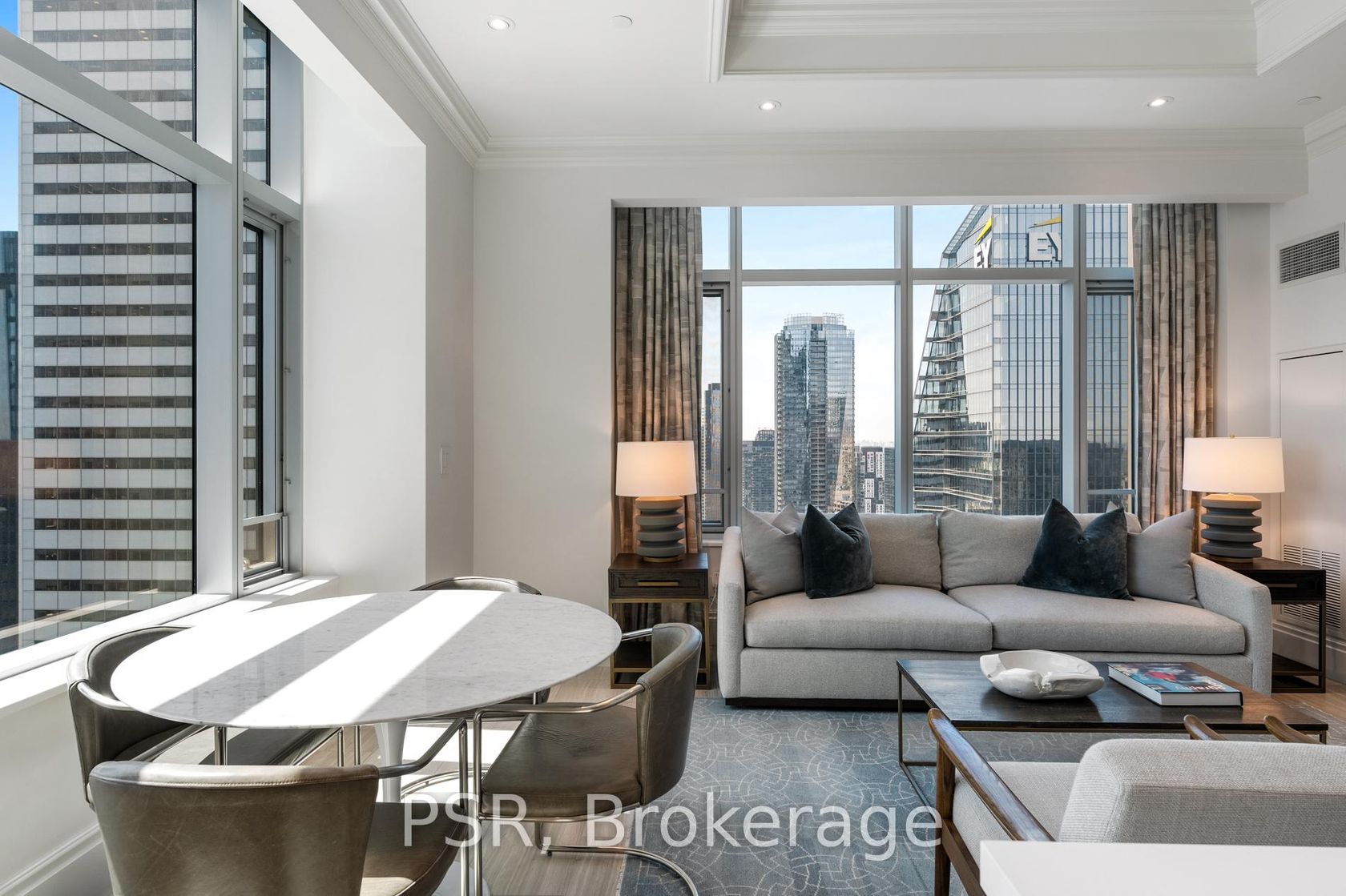 Elegance & Opulence Awaits! Beautifully Appointed & Meticulously Maintained Corner Suite Within The St. Regis Residences! No Detailed Has Been Overlooked Or Expense Spared During Design - The Perfect Primary Residence Or Luxurious Pied-A-Terre. Boasting 10.5ft Coffered Ceilings, Wainscotting, Extensive Custom Millwork, Designer Wall Coverings, Italian Hardwood & Marble Flooring Throughout. Highly Sought After, Split Floorplan Offers The Buildings Coveted South West Exposure - Enjoy Sweeping Lake Ontario & Cityscape Views. Chefs Kitchen Is Well Equipped With Top Of The Line Miele Appliances, Downsview Cabinetry, & Oversized Island. All In-Place Light Fixtures And Window Coverings [Drapery/Sheers/Roller Shades] Included. Primary Bedroom Retreat Boasts Not One But Two Large Custom Closets And A Spa-Like 6 Pc. Ensuite Bathroom With Freestanding Bathtub & Heated Floors. Both Bedrooms Have Had Premium Carpets Professionally Installed Atop The Still Intact Original Hardwood Floors, As Well As Automated, Blackout Roller Shades. Library Was Renovated To Be A Separate Room And Currently Functions As A Secondary Living Space/Office - Keep As Is Or Easily Convert Into A 3rd Bedroom. As A Resident At The St. Regis Residences You'll Have Daily Access To The Hotels Five Star Amenities: 24hr Concierge, World Renowned Spa, Indoor Salt Water Pool, Sauna, State Of The Art Fitness Centre, Valet & Visitor Parking, As Well As Private Residential Sky Lobby, Lounge & Terrace Located On The 32nd Floor.