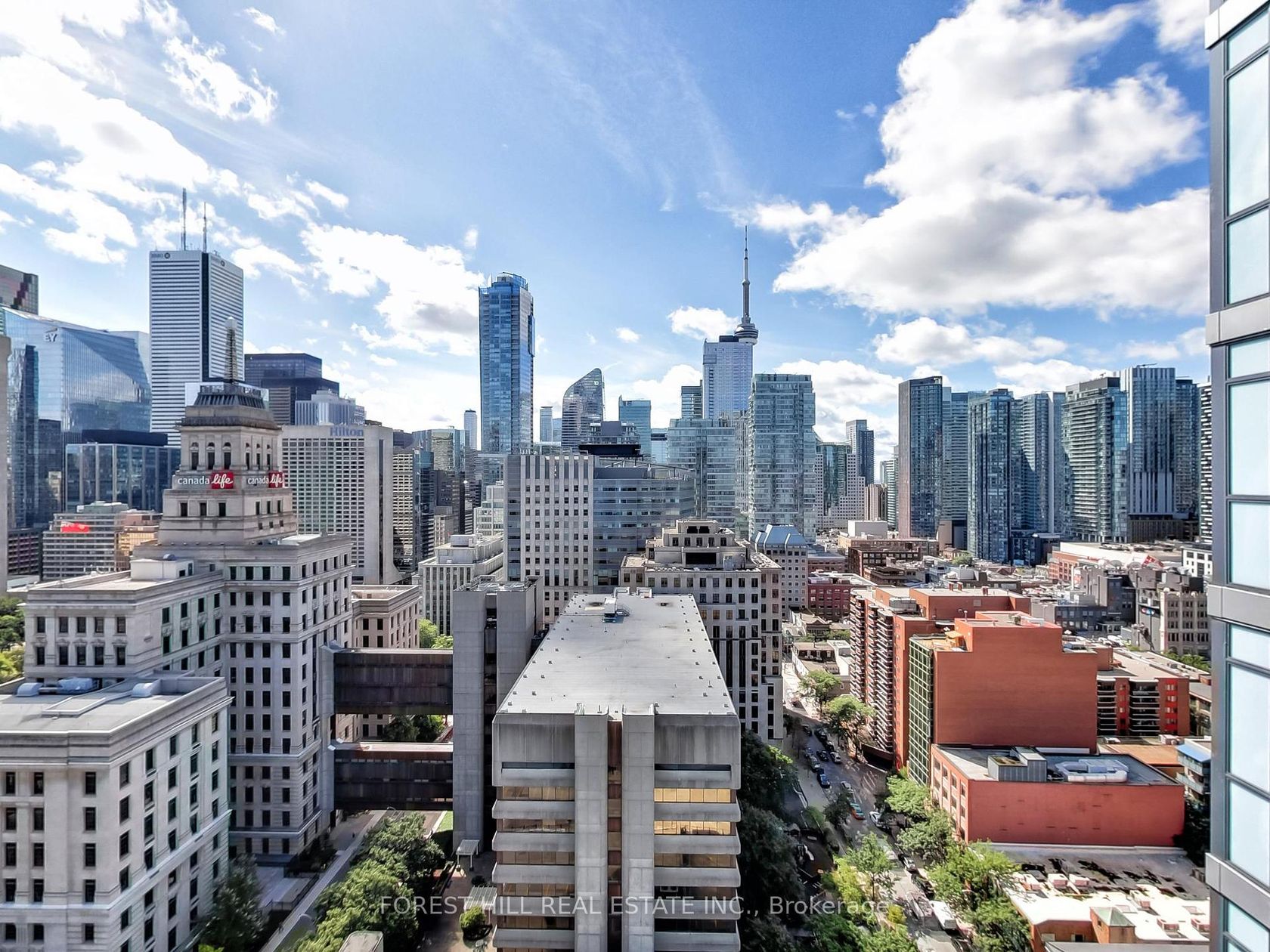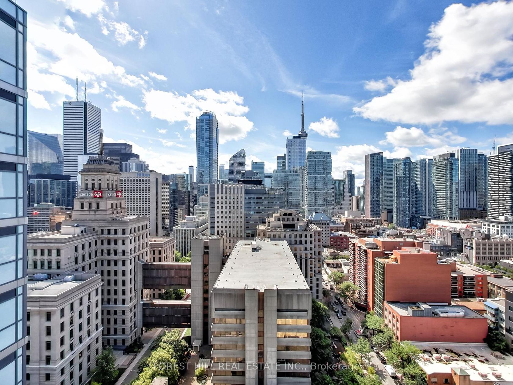 A rare opportunity to own one of the most coveted suites in this highly desirable building. This spacious and wide 1 bedroom plus den suite offers the most sought-after layout one of only a few like it in the entire residence.Unobstructed South Views from the 23rd floor, showcasing the Toronto skyline and CN Tower.Bright and Sun-filled Floor Plan with every inch perfectly utilized.Expansive Living Area and large south-facing balcony for indoor-outdoor enjoyment.9-foot industrial-style ceilings for a modern, airy feel.Freshly finished interiors in move-in ready condition.The building is surrounded by one-way streets due to proximity to US Consulate, providing residents with a quiet residential feel and limited traffic. Situated at University & Dundas, you're just steps away from major hospitals, U of T, TMU, Art Gallery of Ontario, 2-minute walk to the subway, theatres, top restaurants,Financial and Entertainment Districts.Parking & locker included for ultimate convenience. Residents enjoy access to a 3rd floor terrace, party room, lounge, fully equipped gym, yoga studio, and more. Pets are also welcome. This is truly an exquisite opportunity rarely available, highly desirable suite in an unbeatable location.