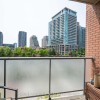 Welcome to the highly sought-after DNA condos in the King W & Shaw neighborhood, offering a perfect blend of modern aesthetics and comfort. This 1 bedroom plus den unit boasts hardwood floors, stainless steel appliances, ensuite laundry and bathroom with walk-in shower. The spacious enclosed den is ideal flex space as an office or bedroom. Enjoy abundant natural light from its private, south facing position, and extend your living space outdoors on to the covered balcony equipped with line for gas BBQ. With approximately 685 sq ft. of interior space, the primary bedroom includes large windows, double closet with organizers and 9ft smooth ceilings. The building offers convenient amenities, including ample visitors parking, concierge, fitness facilities, vibrant party room and spacious rooftop terrace with unobstructed views of the CN Tower. Boutique building in the trendy King West area. Steps to Liberty Village, Trinity Bellwood Park, TTC, Grocery, Shops, Restaurants, Parks and Waterfront
