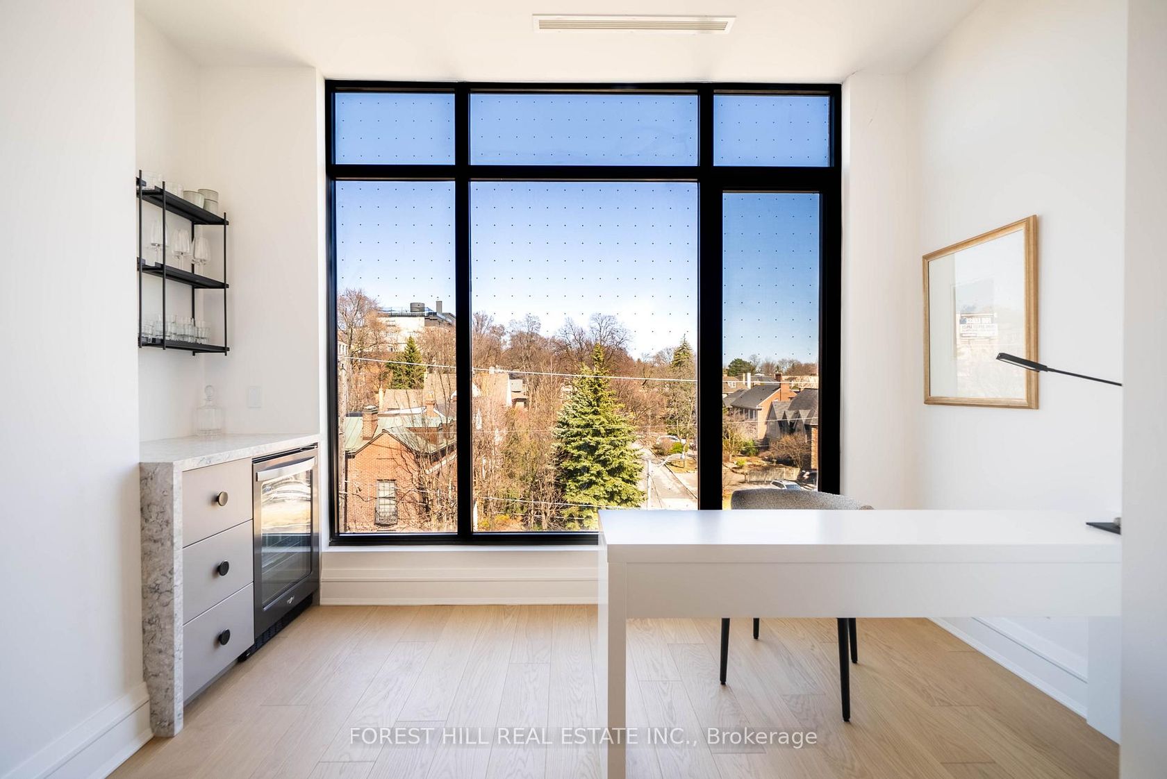 Welcome to The Rhodes Residences a boutique 25-suite luxury building in the heart of Forest Hill. This gorgeous 2-bedroom + den, 3-bath suite offers elegant, east-facing views over the Forest Hill neighbourhood and charming RosemaryLane. The chefs kitchen features an oversized island with seating for five and a full suite of built-in Gaggenau appliances, including a gas cooktop perfect for entertaining and everyday luxury. Enjoy spa-inspired ensuite bathrooms with Wi-Fi controlled heated floors, curb less showers, and rain shower heads. The custom-designed den includes a built-in wine bar and desk ideal for relaxing or working from home. A full-size laundry room offers custom millwork, a large sink, and plenty of in-suite storage. Bonus features include a rough-in for motorized shades and high-end designer upgrades throughout. Amenities include a stunning rooftop terrace with gas BBQ, a fully equipped ground floor gym, boardroom, pet spa, bike room, and exceptional 24/7 concierge service by The Forest Hill Group.