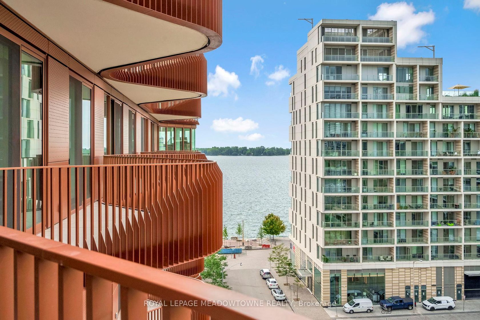 ***THIS IS NOT AN ASSIGNMENT SALE***TAXES NOT ASSESSED YET***Welcome to Aqualuna, Toronto's iconic waterfront address. This brand new never lived in 1bedroom plus den, 2 bath suite offers 809 sq ft of thoughtfully designed living space complemented by two private balconies with stunning city and lake views. Step inside to soaring 9ft ceilings and engineered white oak hardwood flooring throughout. The open concept layout is both spacious and practical, blending style with functionality. The designer kitchen features Irpinia cabinetry in a sleek two-tone finish, quartz countertops with a matching backsplash, under-cabinet lighting, a Blanco undermount sink with Hansgrohe faucet, and fully integrated Miele appliances including fridge, cooktop, wall oven, speed oven, dishwasher, and hood fan. A Whirlpool stacked washer and dryer add everyday convenience. The primary bedroom offers its own private balcony, custom closets with organizers, and a spa-inspired ensuite finished with Sivec marble, large-format porcelain tile, and premium Hansgrohe fixtures. A second full bathroom is equally stylish with graphite marble and matte black hex tile, providing comfort for residents and guests alike. Nestled within a 13 acre master planned community, Aqualuna combines striking architecture with a serene lakeside setting. Smart Home Technology via Tridel Connect elevates the living experience, offering modern convenience and peace of mind. This is waterfront luxury at its finest, designed for those who value elegance, comfort, and lifestyle.