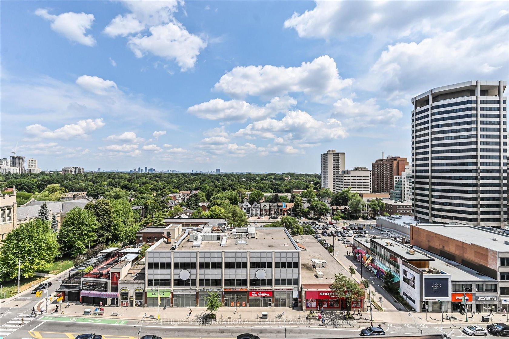 Enjoy Clear and Lush Views over the eastern tree canopy, from this breathtaking11th floor suite at "The St Clair"! This premium split bedroom floor plan with 2 bedrooms, 2 bathrooms and a rare and generous size den/office/3rd bedroom, is a coveted and masterfully designed layout! With over 1060 sq ft of interior living space, this highly functional suite with a large dining room, oversized primary bedroom and 5-piece ensuite, incredible storage and full size kitchen appliances is fitting for families, downsizers, entertainers and working professionals alike. If a home office is a priority in your search then this suite is a must see! This prime Delisle Ave location offers hyper convenient access to transit, downtown, top schools and an array of amenities at your doorstep-literally! Elaborate building amenities include a well-equipped on-site gym and two expansive event rooms featuring a full kitchen with TVs, a fireplace, a grand piano, and a pool table! An outdoor patio with mature foliage and BBQ facilities make for an ideal summer entertaining spot.