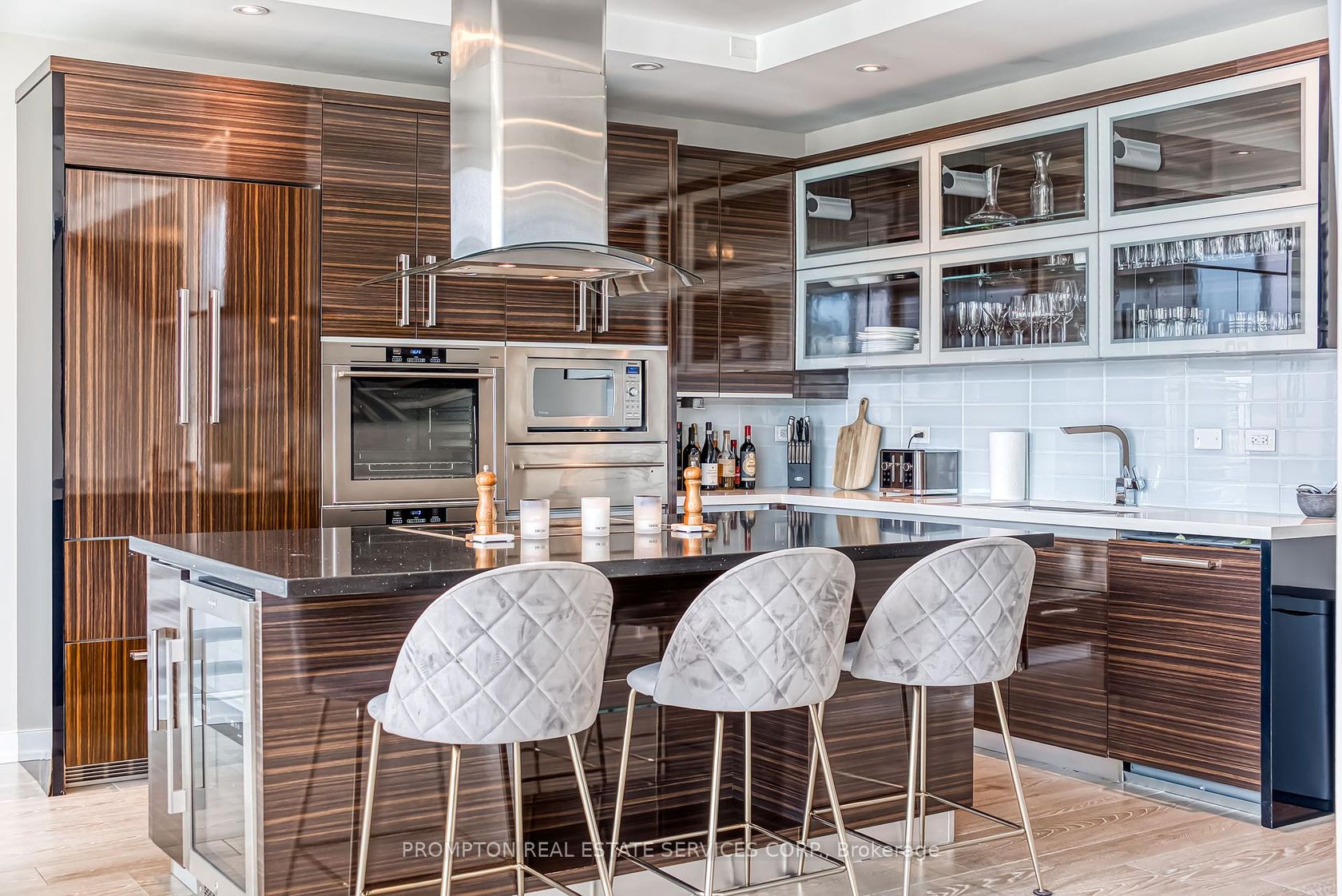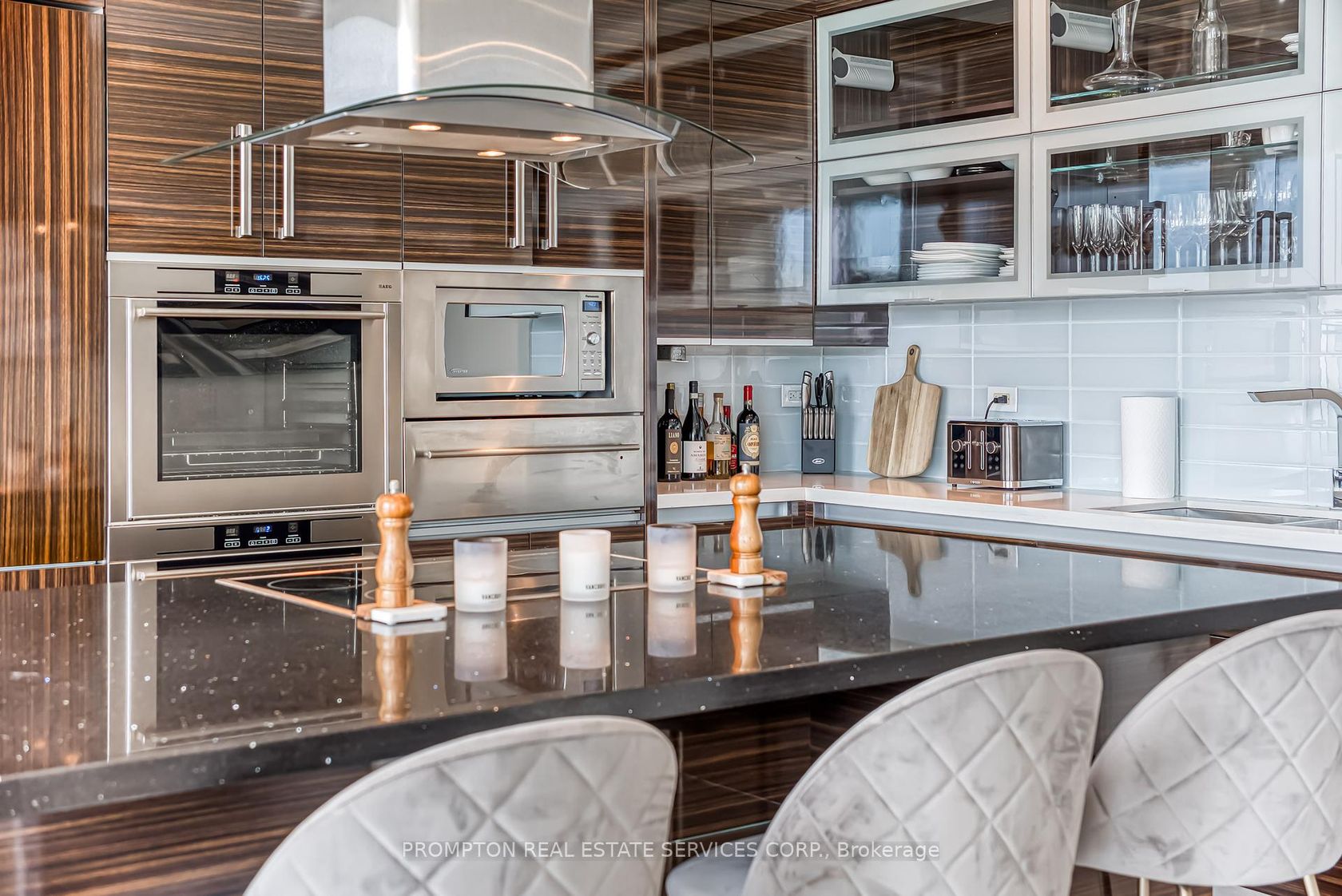 Absolutely Stunning Custom 2-Storey Penthouse in the Heart of Downtown Toronto! This sun-filled 3-bedroom, 4-bathroom residence offers luxury living just steps from the Eaton Centre, top restaurants, theatres, shopping, and the subway. Soaring 10-ft ceilings, floor-to ceiling windows, and 8-ft solid doors throughout. Modern floating staircase with glass railing, sleek custom lighting, and two spa-inspired ensuites. The Italian-designed kitchen features granite countertops, a large island, and solid cabinetry.