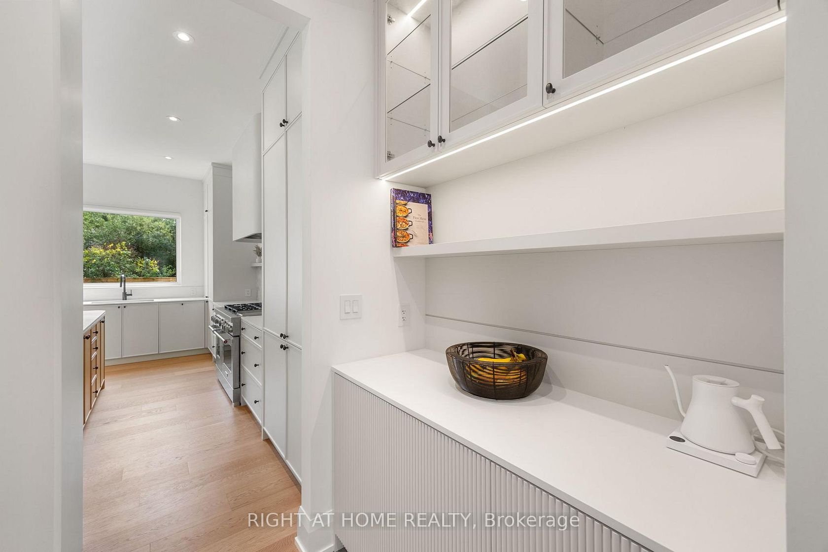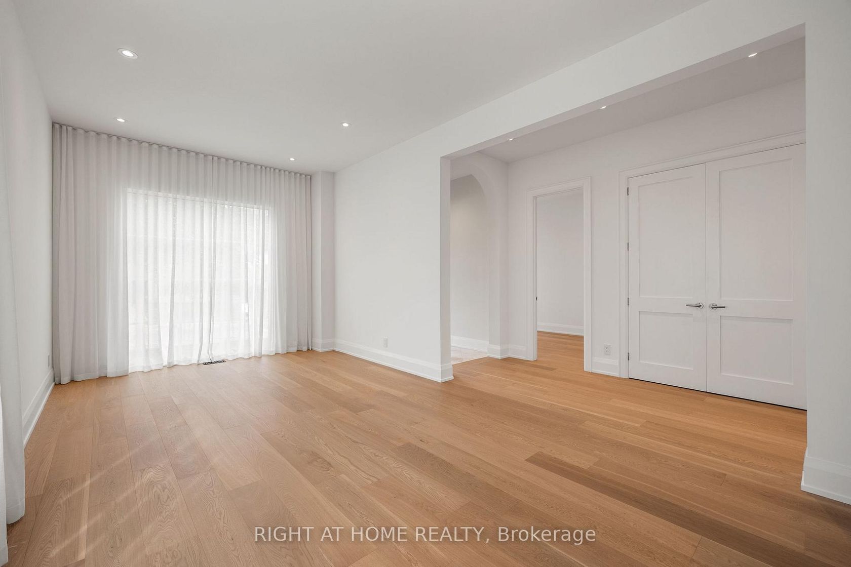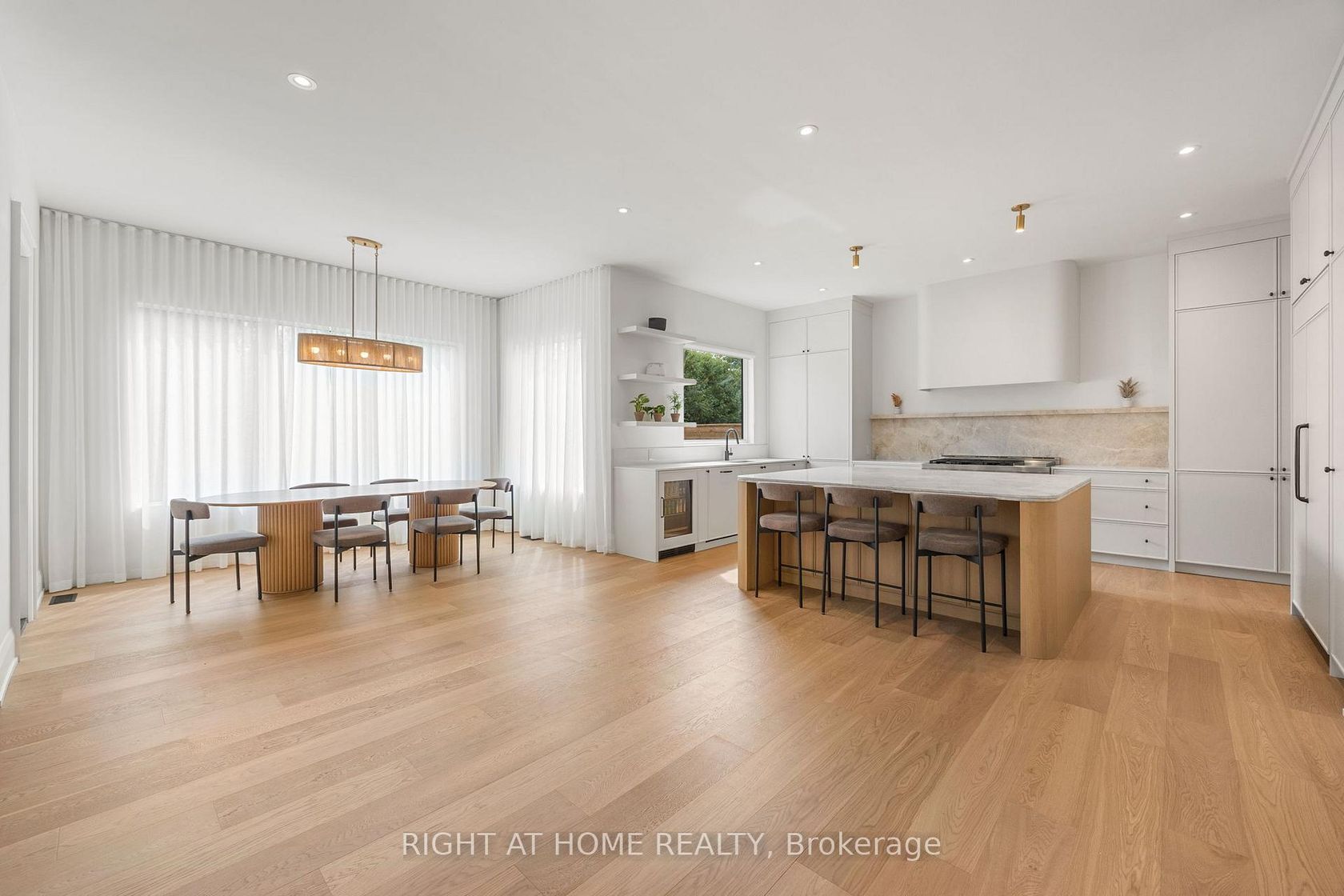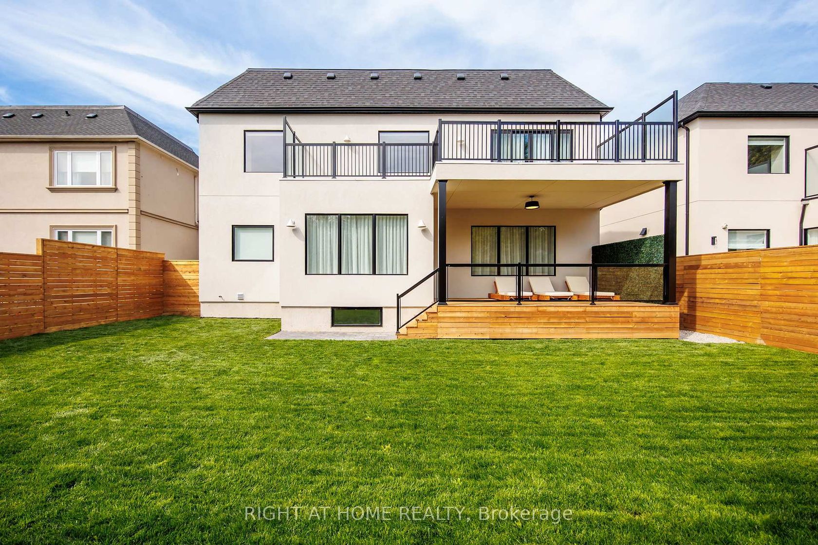 Welcome to this meticulously crafted 5-bedroom custom home, tucked away on a rare and quiet cul-de-sac. With 5,700 SF of refined living space, this residence is set on an ultra-wide, south-facing lot, allowing for a distinctive design and layout rarely found on narrower properties. The architectural detail is unmistakable: the bold inverted front roofline, elegant limestone and brick exterior, Kingshore windows with sleek drywall reveals, cantilevered porch, custom wrought-iron railings create a striking first impression. Beautiful arched doorways elegantly define the interior, leading to the private home office, mudroom w/ custom millwork & built-in bench, and family room w/ gas travertine fireplace set in a stylish built-in. The chefs kitchen has a dramatic rounded custom hood, an oversized Taj Mahal stone island, appliance garage, servery w glass cabinetry and second sink rough-in, and a walk-in pantry. Professional Kitchen Aid appliances, including a 48" gas range & 48" panel-ready fridge, complete the space. Fluted doors frame the bar area, finished with a bevelled white oak floating shelf and micro-cement accent wall. A striking white oak staircase w/ custom wrought-iron railings leads to the impressive 2nd floor foyer, crowned by massive skylights. The second floor offers five spacious bedrooms, each with generous closet space and ensuites. The grand primary suite, accessed through a private hallway, features a sitting room, custom TV built-in/desk, an oversized walk-in closet with vanity and linen closet. Its spa-like marble ensuite offers a double vanity with Taj Mahal countertops and handcrafted wood pulls, heated floors, private water closet & oversized shower with floating bench and travertine surround.The fully finished lower level features a home theatre, large rec area, home gym with rubber flooring, two bedrooms, secondary laundry, and ample storage. Large private yard with covered terrace, glass railings, green wall, and sleek ceiling design.