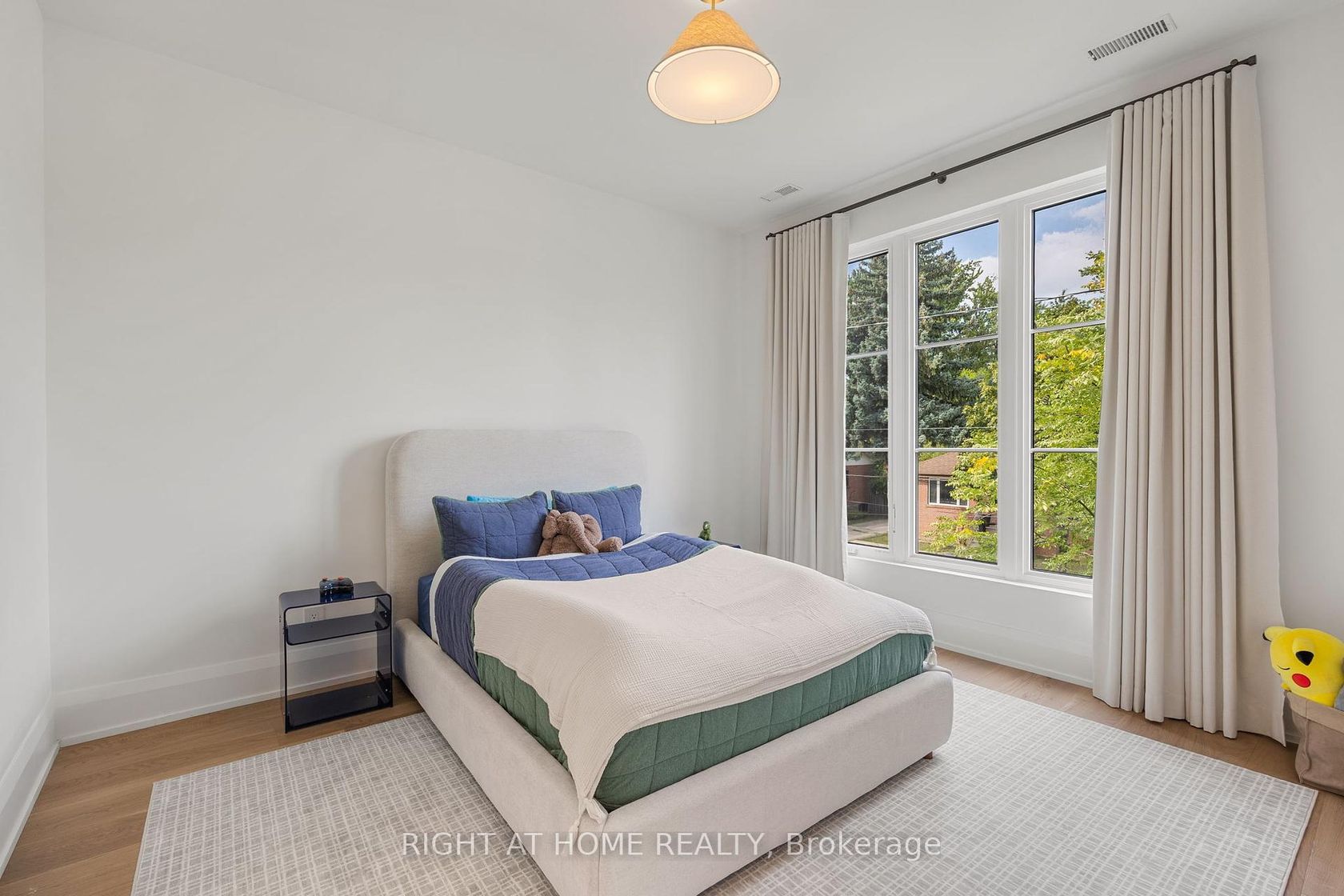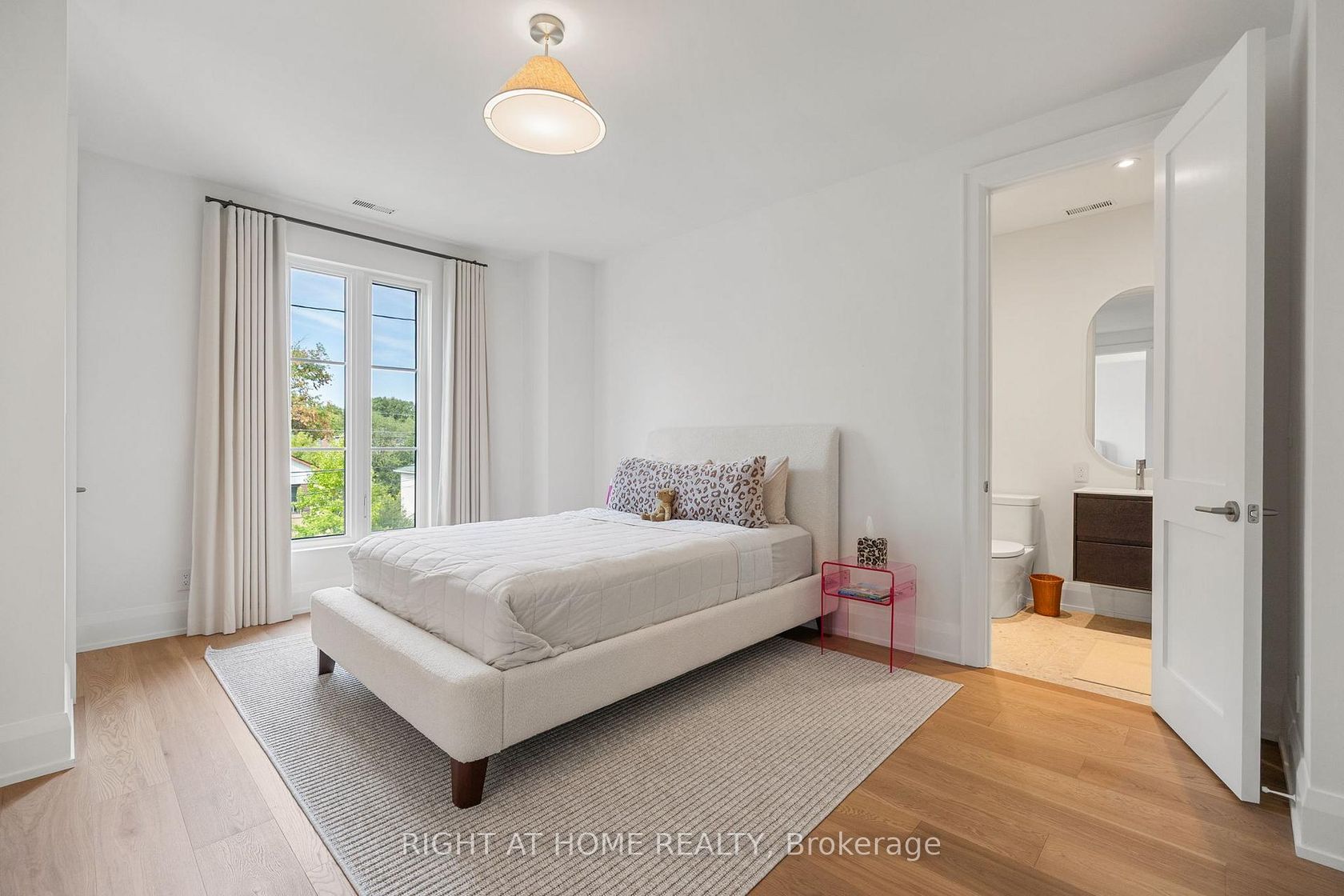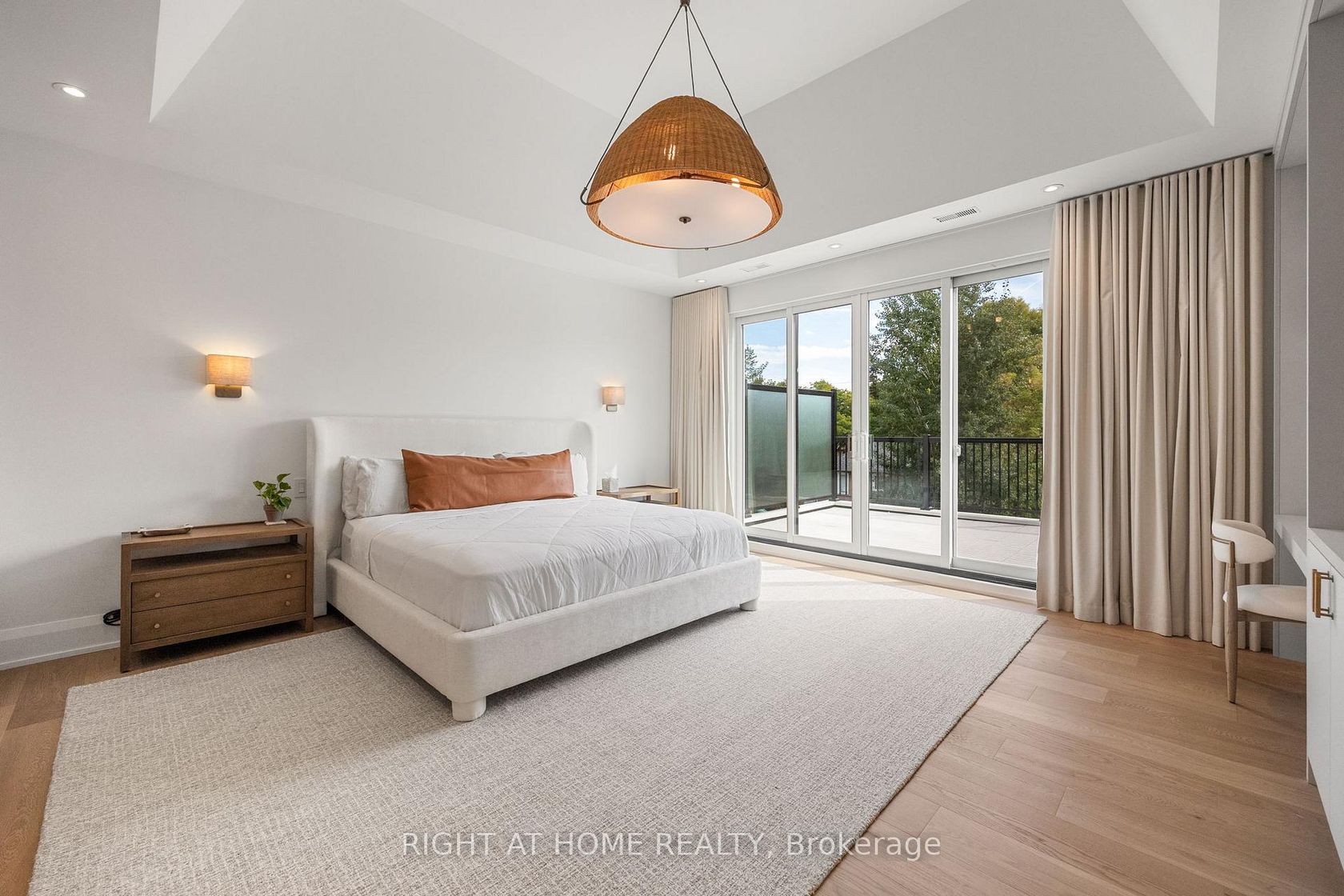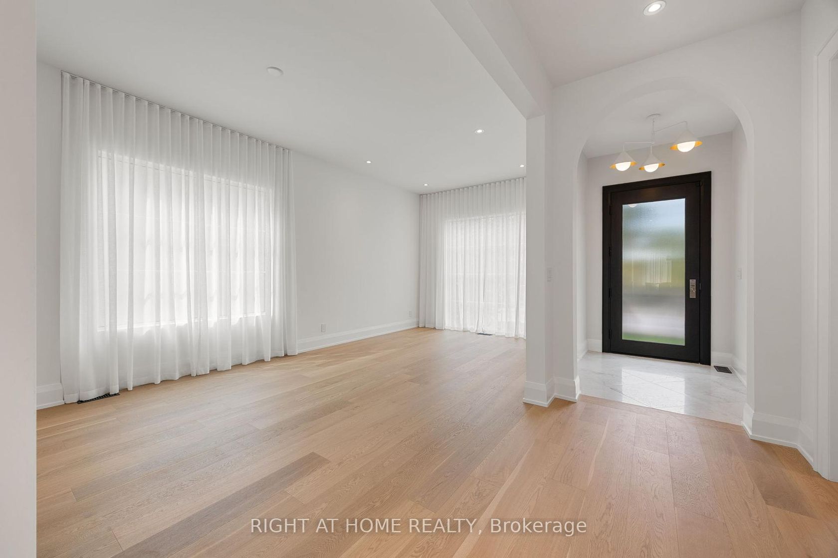 Welcome to this meticulously crafted 5-bedroom custom home, tucked away on a rare and quiet cul-de-sac. With 5,700 SF of refined living space, this residence is set on an ultra-wide, south-facing lot, allowing for a distinctive design and layout rarely found on narrower properties. The architectural detail is unmistakable: the bold inverted front roofline, elegant limestone and brick exterior, Kingshore windows with sleek drywall reveals, cantilevered porch, custom wrought-iron railings create a striking first impression. Beautiful arched doorways elegantly define the interior, leading to the private home office, mudroom w/ custom millwork & built-in bench, and family room w/ gas travertine fireplace set in a stylish built-in. The chefs kitchen has a dramatic rounded custom hood, an oversized Taj Mahal stone island, appliance garage, servery w glass cabinetry and second sink rough-in, and a walk-in pantry. Professional Kitchen Aid appliances, including a 48" gas range & 48" panel-ready fridge, complete the space. Fluted doors frame the bar area, finished with a bevelled white oak floating shelf and micro-cement accent wall. A striking white oak staircase w/ custom wrought-iron railings leads to the impressive 2nd floor foyer, crowned by massive skylights. The second floor offers five spacious bedrooms, each with generous closet space and ensuites. The grand primary suite, accessed through a private hallway, features a sitting room, custom TV built-in/desk, an oversized walk-in closet with vanity and linen closet. Its spa-like marble ensuite offers a double vanity with Taj Mahal countertops and handcrafted wood pulls, heated floors, private water closet & oversized shower with floating bench and travertine surround.The fully finished lower level features a home theatre, large rec area, home gym with rubber flooring, two bedrooms, secondary laundry, and ample storage. Large private yard with covered terrace, glass railings, green wall, and sleek ceiling design.