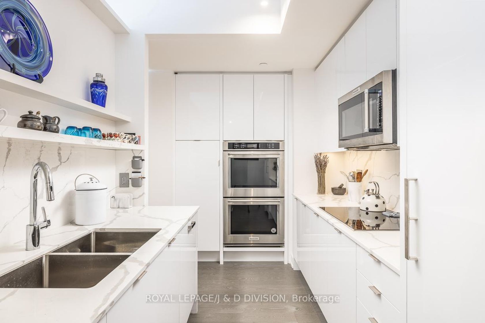 **Incredible value for this square footage, at just over $1000/sqft!** This stunning three bedroom corner suite is over 2000 square feet with distinct living and bedroom areas. Beautifully appointed with hundreds of thousands in upgrades installed by the current owners. Enter through the foyer to the dining room for formal entertaining, with floor to ceiling windows and a walkout to a south-facing balcony. The custom kitchen has high end appliances and finishes, including marble countertops and backsplash (photos included of open concept kitchen from previous owner), as well as a rare walk-in pantry with separate freezer and bar fridge. The expansive living room offers three separate sitting areas with custom designed niches and shelves for displaying art. The primary suite features a walkout to the second balcony, a five-piece ensuite washroom and a spacious walk-in closet with built-ins. The second bedroom offers a walk-in closet with built-ins and a three-piece ensuite. The third bedroom currently is used as an office. Other features of the suite include; 9 ceilings, a generous laundry room with sink and storage, two tandem lockers, and two underground parking spaces. This well managed building has excellent amenities including a 24 hour concierge, gym, lounge, rooftop patio, guest suite, and ample visitor parking. Walk to shops and restaurants in Yorkville. Truly a home in the sky!