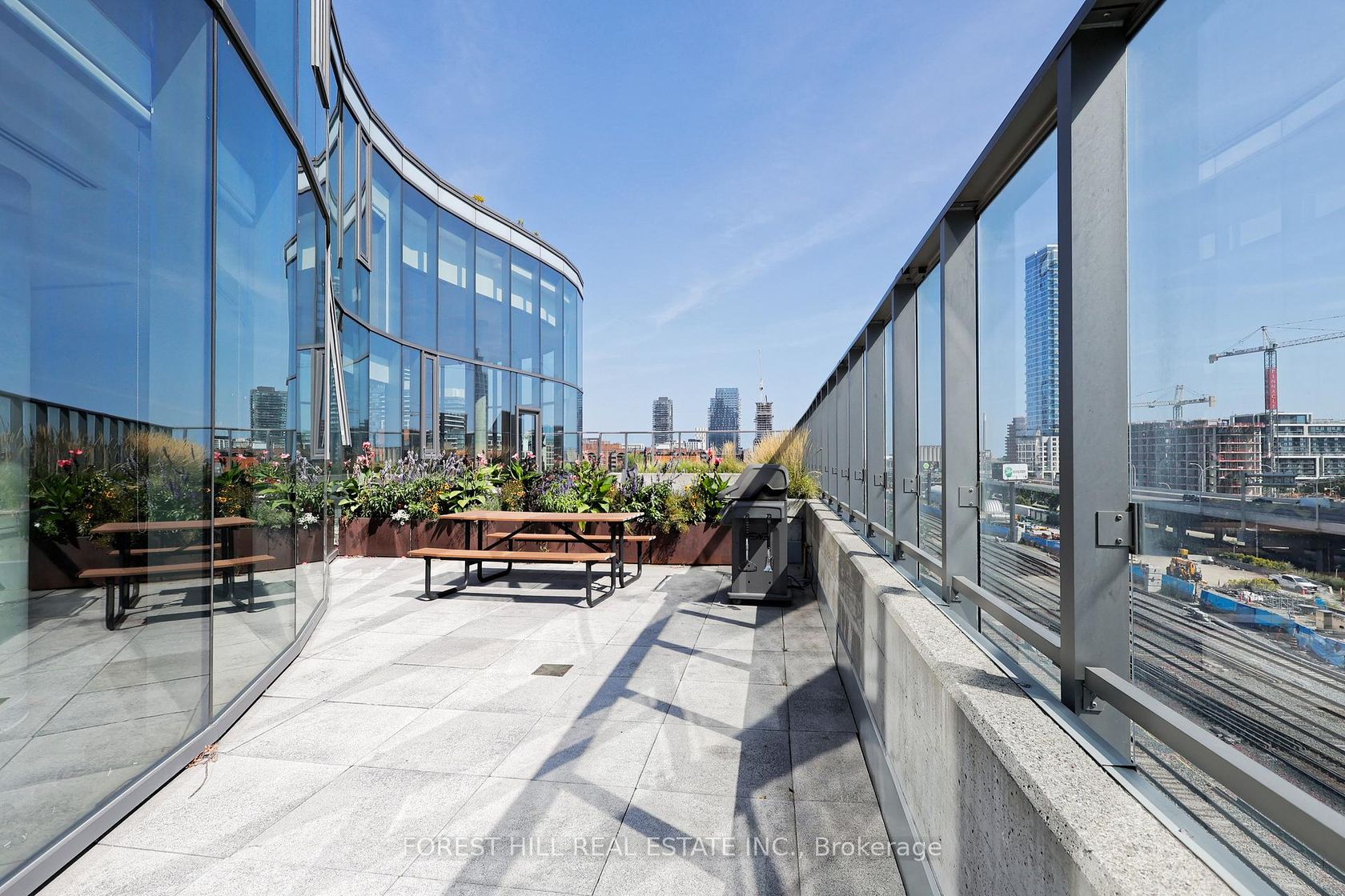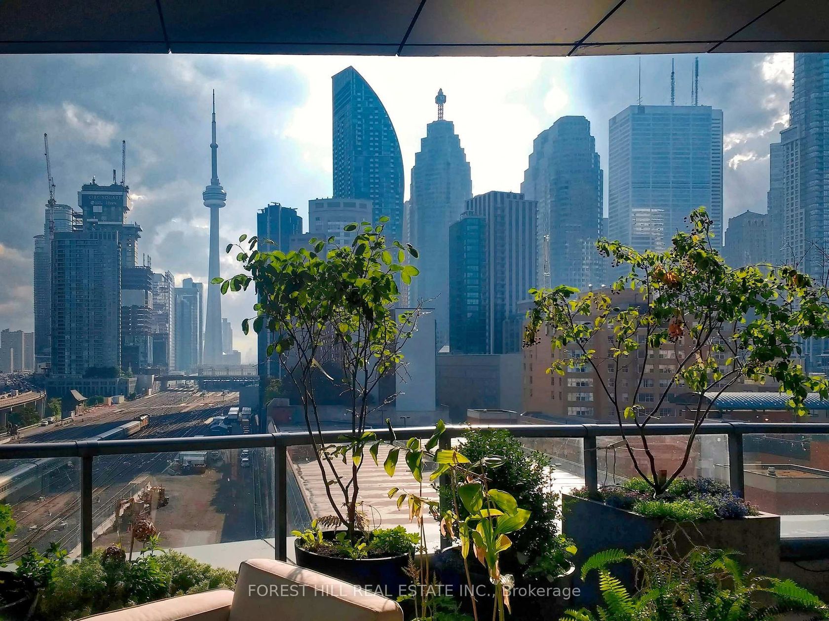 Step into your urban sanctuary at 1 Market Street, in Toronto's coveted St. Lawrence Market neighbourhood. This exceptional 8th-floor combined residence spans 1,084 sq ft of artfully designed living in a U-shaped layout, flowing effortlessly into an 865 sq ft wrap-around terrace with breathtaking west and south-facing skyline views. Inside, large-format porcelain floors create a sleek, contemporary canvas. The chef's kitchen boasts an 11.5 island, 30 NG range with double oven, double sink, and abundant storage. Perfect for culinary mastery.A sunlit dining area with Jotul NG fireplace leads to a chic seating space, while the office alcove connects to the master suite. The suite features a custom walk-in closet and spa-like 5-piece ensuite with soaker tub. The second wing offers a versatile room for a media viewing or as a guest bedroom, complemented by a separate 3-piece bathroom and entry closet. Four sliding doors invite you onto the wraparound terrace, designed for entertaining or quiet reflection, with two water features, irrigated raised planters, 2 water taps, 2 NG connections, and a private storage nook. This residence includes a secure indoor parking spot with a two-bike rack, an extra-large 8 by 10 ft locker, and one additional storage cages. Market Wharf residents enjoy 24-hour security, concierge service, an award-winning gym, steam room, party room, theatre, yoga studio, guest suites. Beyond your door, immerse yourself in Toronto's finest: the historic St. Lawrence Market, boutique shops, acclaimed restaurants, Distillery District, Sugar Beach, waterfront trails, and world-class entertainment at Scotiabank Arena and Rogers Centre. With seamless transit via Union Station and the PATH network, the Financial and Entertainment Districts are always within easy reach.