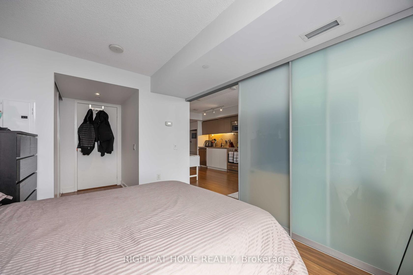 Welcome to the remarkable Spectra Condos, ideally set in the dynamic core of Cityplace! This elegant one-bedroom residence features a smartly crafted layout that optimizes both space and flexibility. With sleek sliding glass panels, you can seamlessly open your living area for gatherings or create a serene, private retreat in the bedroom. Indulge in the convenience of a spacious walk-through bathroom, designed as a semi-ensuite with a separate entry from the bedroom. Step onto the Juliette balcony to embrace fresh breezes and take in sweeping, unobstructed northern views. Expansive wall-to-wall, floor-to-ceiling windows bathe the interiors in natural light, enriching the inviting atmosphere throughout. The modern dual-tone kitchen is a culinary delight, complete with stylish under-cabinet lighting and a striking backsplash that enhances every meal. Residents enjoy world-class amenities, including a three-level private club with an indoor pool, spa, fitness centre, rooftop hot tub, basketball court, yoga studio, board/party room, and more. Adjacent to the 8-acre Canoe Landing Park, youll have direct access to sports fields, a dog park, playground, splash pad, and scenic walking trails. Quick access to the QEW and public transit ensures unmatched convenience.