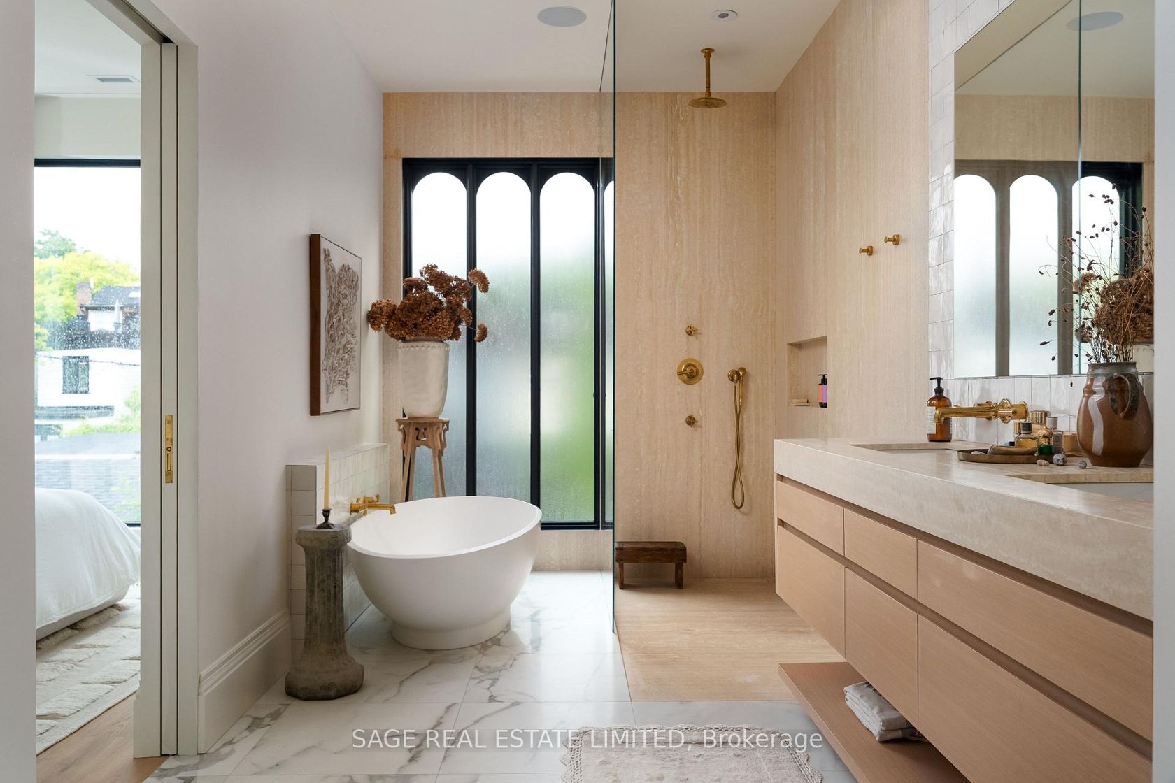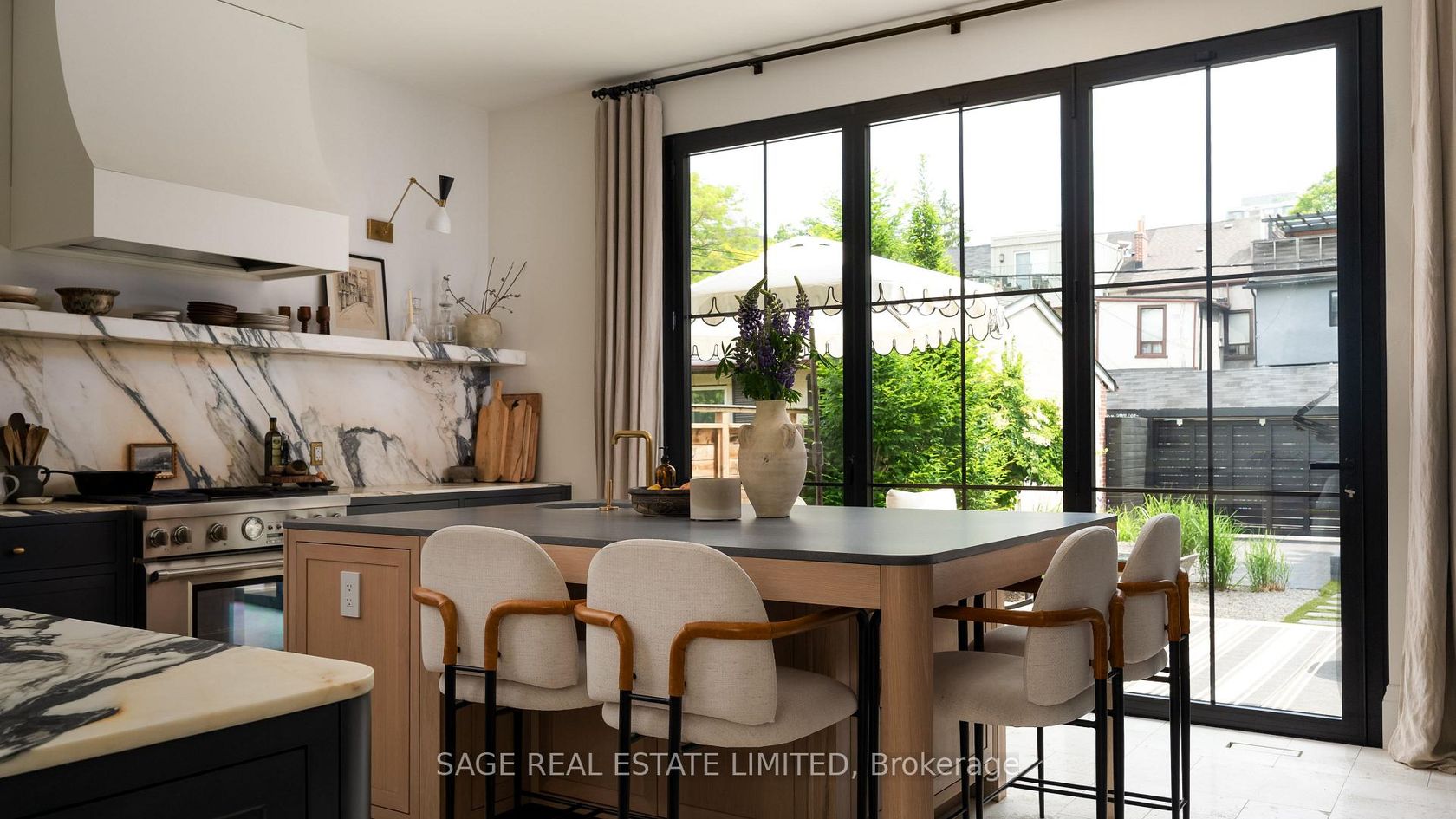 THE BOLD AND THE BORDEN. Absolute heart-stopper in the Annex with every single thing you thought of and things you hadn't even considered needing until this very second (keep reading). Designed by interior designer and homeowner, Lyndsay Jacobs Interior, this home is a gorgeous collision of design, function, soul and craftsmanship. Standout features include: meticulously restored 1878 stained glass windows, Canadian limestone fireplace mantle with gas insert, exposed brick, custom millwork throughout and soft curved walls that gently guide you through the space. Natural light pours in from 10-foot bi-fold kitchen windows/doors highlighting abundant custom cabinetry and a 17-foot floating Nero Borghini marble shelf. Built-in column fridge/freezer set up keeps things sleek, with under-counter refrigeration and prep sink offering daily luxury and professional level functionality. Skylights draw your eyes up through a four storey staircase by Ultrastairs, leading to serene, peaceful bedroom quarters where the outside world disappears and offers you a deep exhale from the chaotic energy of the day. Bathrooms feature unlacquered brass plumbing fixtures from Watermark, Waterworks and Kallista. And then there's the rooftop: a private, treetop-view sanctuary with a saltwater Arctic Spa hot tub, beverage station, natural gas fire pit hookup and pure Toronto magic in all four seasons.The lower level includes a custom media room designed by Bay Bloor Radio, with in-wall Bowers & Wilkins surround sound. Other lower level features include a 400-bottle, climate controlled wine cellar, a dog wash and a fully contained in-law suite. Perilously perfect location sandwiched between the fab restaurant scenes on Harbord and in Yorkville and a quick skip to Ossington. Boldly go to Borden. A winner in every single way.