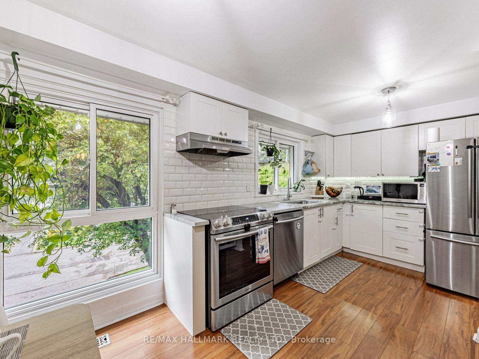 End-unit townhouse in Bayview Village with a stunning living room showcasing soaring high ceilings, oversized windows, and abundant natural light. Functional layout with dining overlooking the living room, three spacious bedrooms, and a private backyard. Roof replaced in 2023. Appliances (stove, fridge, dishwasher, washer/dryer) from 2020. Smart home features include Google thermostat, smart doorbell, smart water shut-off, and smart light switches. ** *Maintenance Fee covers roof, foundation, building insurance, water, Rogers cable TV, Rogers high-speed internet (1.5Gb), snow removal, and lawn care. Conveniently located minutes to Bayview Village Mall, subway/GO, Hwy 401/404/DVP, North York General, parks, and trails.