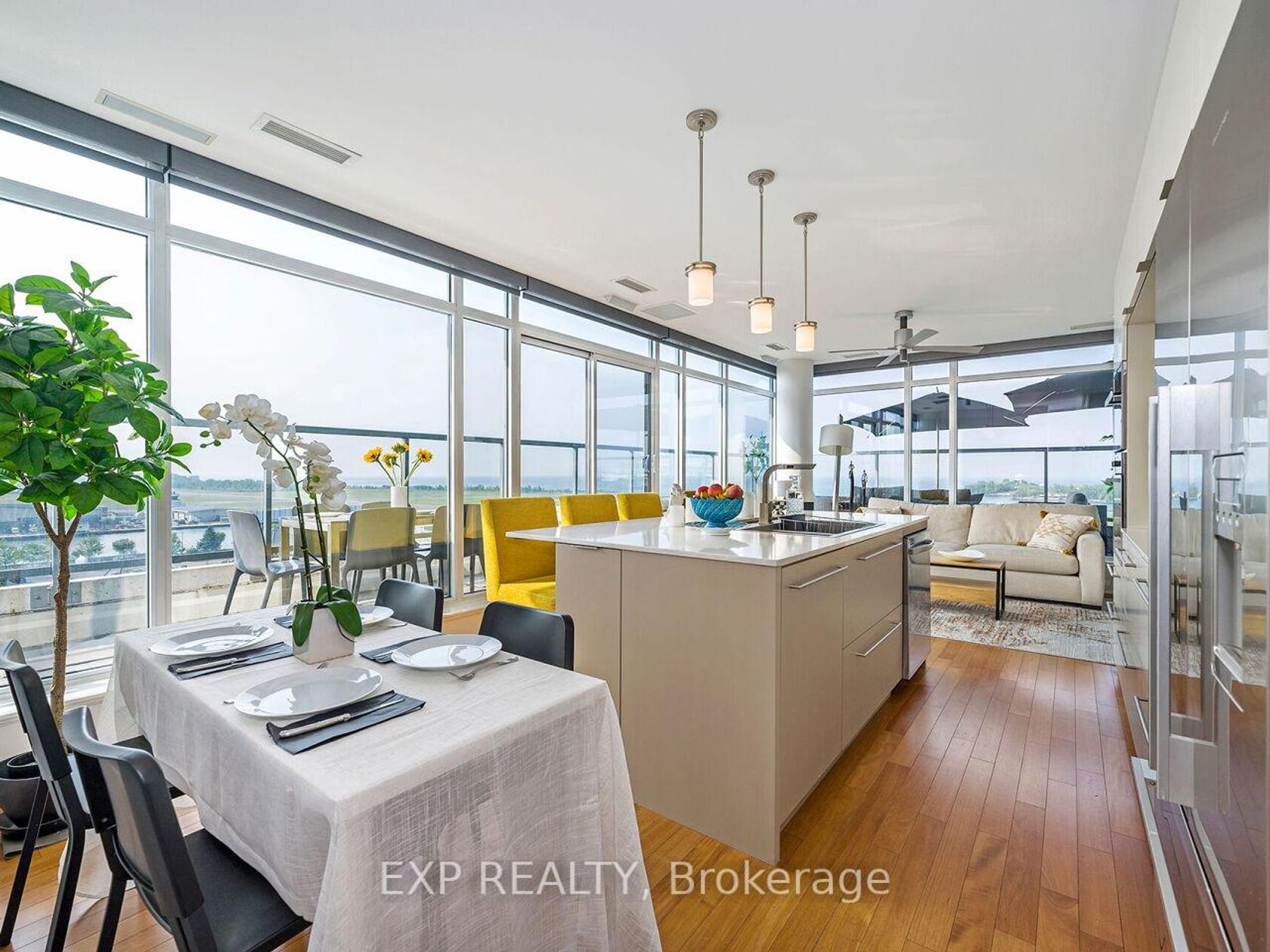 One-of-a-Kind Waterfront Condo Million-Dollar Views. Rare 1,205 sq. ft. 3 Bed, 2 Bath southwest corner suite with wraparound terrace and breathtaking lake & yacht club views. Custom designed by original owner (former VP of the developer). Features: hardwood floors, floor-to-ceiling windows with electronic blinds, unique hotel-style ensuite with oversized shower, two walk-in closets, and an oversized kitchen island perfect for entertaining. Sought-after, well-maintained building with 24 hr. concierge, full fitness centre, sauna, hot tub with shower, men's & women's change rooms, party room w/ caterers kitchen, billiards rooms and 2 furnished guest suites. Excellent Prime waterfront location with a perfect Walk & Bike Score of 100 groceries, LCBO, transit, Harbourfront lifestyle, dining & nightlife all at your doorstep. City living doesn't get better than this.