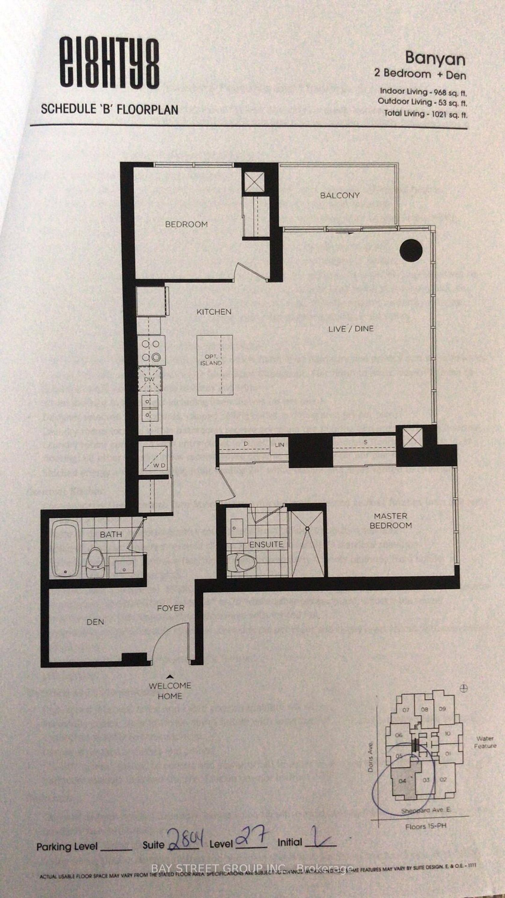 Southwest corner unit at Minto 88, one of North York's most sought-after residences! Unobstructed panoramic views with floor-to-ceiling windows fill the home with natural sunlight all day long. Over 1,020 sq.ft Living Space (Spacious 968 sq. ft. interior + balcony), featuring 2 bedrooms, 2 full baths, and a large den that can serve as a 3rd bedroom or home office. 9-ft ceilings, freshly painted, and a functional split-bedroom layout offer both style and comfort. Built by Minto with LEED Gold Certification, known for quality construction, energy efficiency, and low maintenance fees. Premium amenities include 24-hour concierge, modern Fitness Centre, rooftop garden, and visitor parking. Steps to Sheppard Subway, Hwy 401, shops, dining, parks, and top schools. A bright, open home in one of North York's finest communities!