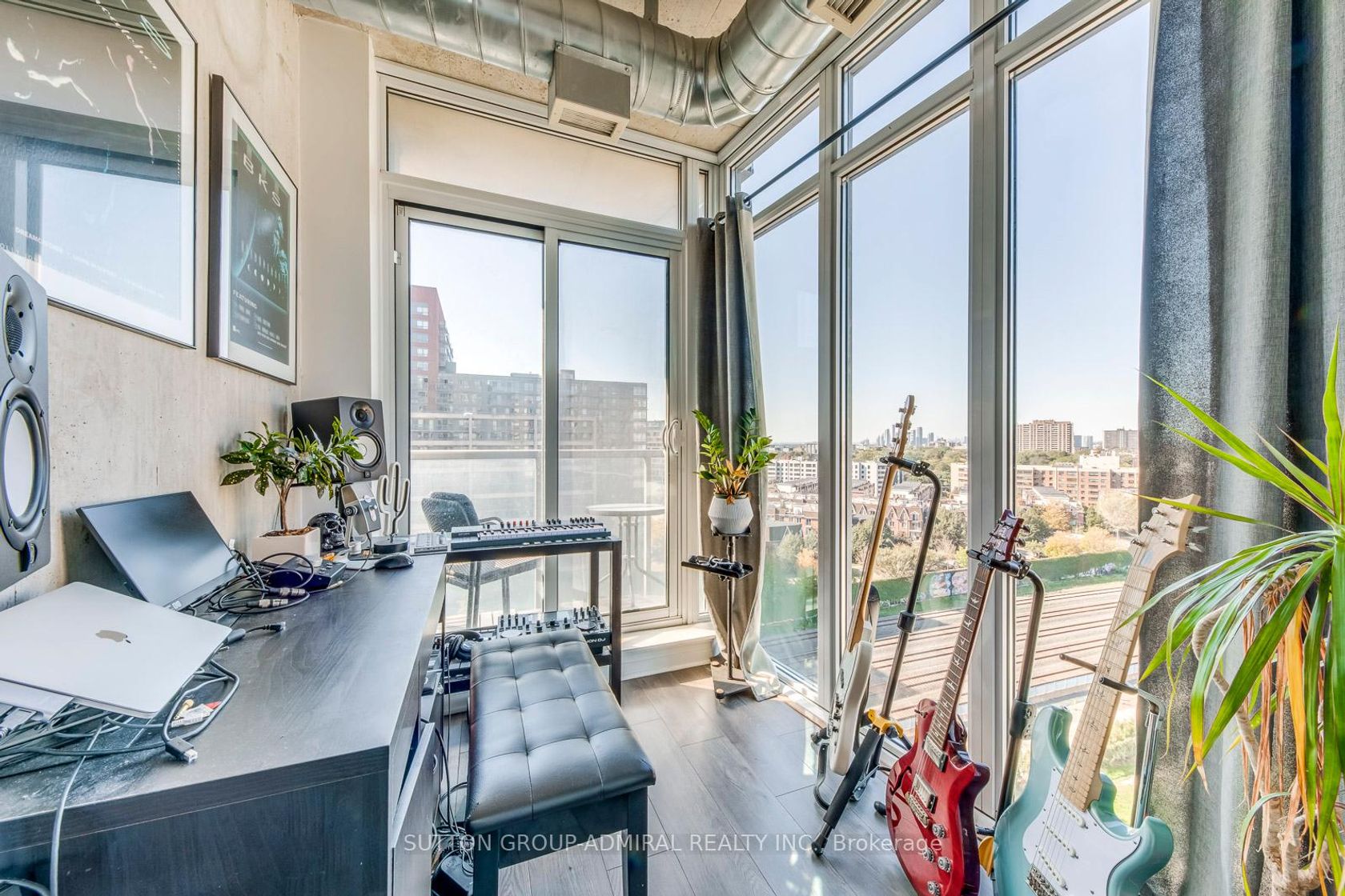 CORNER S/W FACING SUITE at Industrial-chic Westside Gallery Lofts, Modern Loft Style Living set-in the energetic Lifestyle of Queen West! This Modernistic Urban 2 bedroom Suite with 9ft Ceilings & Parking offers stylish Open Concept Living with Bright South & West Facing Floor-to-Ceiling Windows, Exposed ductwork, Wide-Board style Laminate flooring and a mixture of concrete and drywalled finishes create a Loft Character and Vibe. The Eat-in Kitchen features: Cabinets with Smooth Simple lines with Modern Handles, Granite Countertops & Stainless-Steel Appliances, it flows into the Living areas, perfect for relaxing at Home or Entertaining. Enjoy the City and Lake Views. The Primary Bedroom includes a Large Double Closet & a 4-pc Ensuite Bath. The 2nd Bedroom / Den features a Large Windows, a Walk-out to the Balcony, a Closet and Laminate Flooring. Building Amenities include: an Exercise Room, Party Room, Guest Suites & Visitor Parking. There are plans to expand the gym/fitness centre into the current pool area. Set in one of Toronto's most Vibrant neighbourhoods! Enjoy Queen West's top Restaurants, Bars, Cafes, Boutique Shopping and Galleries. Steps to hotspots like The Drake Hotel, Gladstone House, the Ossington Strip, and Trinity Bellwoods Park. Nearby: 24-hour TTC service, GO Station at the Exhibition a short walk away. Easy access to King West, Liberty Village, Parkdale, and the Gardiner Expressway. FLOOR PLAN in attachments. VIRTUAL TOUR - in Link