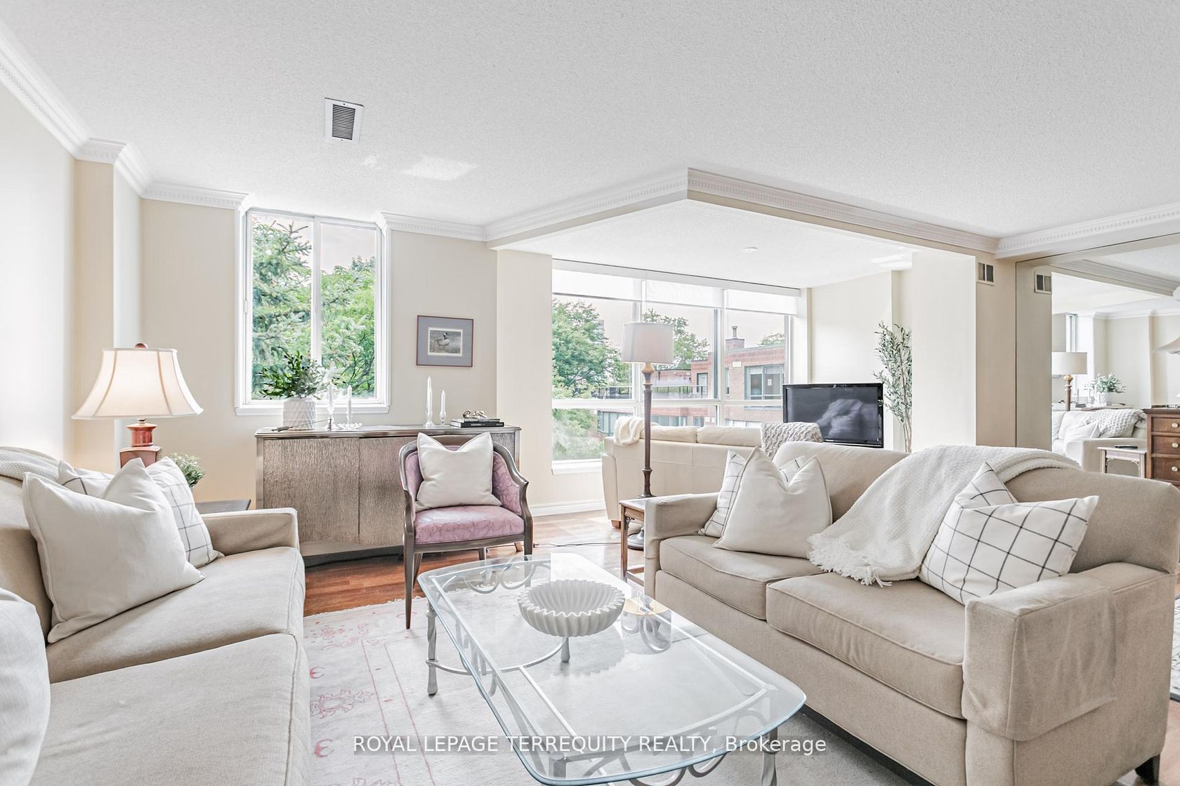 Discover timeless elegance and comfort in this rarely offered 2-bedroom residence located in one of Toronto's most sought-after neighbourhoods Yorkville. Set within a quiet, boutique building, this suite offers the perfect blend of upscale urban living and tranquil retreat, ideal for downsizers, professionals, or anyone seeking the best of downtown living. Step inside to a generous open-concept layout designed with flow and functionality in mind. The renovated kitchen features sleek cabinetry, quality countertops, and stainless-steel appliances perfectly appointed for entertaining or everyday cooking. The primary bedroom is a true sanctuary, complete with two walk-in closets for exceptional storage and organization and an ensuite bathroom. The second bedroom is well-sized and flexible, ideal as a guest room, home office, or den. A standout feature of this suite is the sunroom a bright space, separate from the bedrooms, that makes for a peaceful bonus sitting area to enjoy year-round. Enjoy a premium south-facing view that offers quiet treetop and cityscape vistas, bringing in natural light and a sense of calm throughout the home. Situated in a well-managed, low-rise building with a warm community feel, residents enjoy peace and privacy while being just steps from world-class shopping, fine dining, transit, galleries, U of T, and more. Luxury. Location. Lifestyle. This is downtown living at its best.