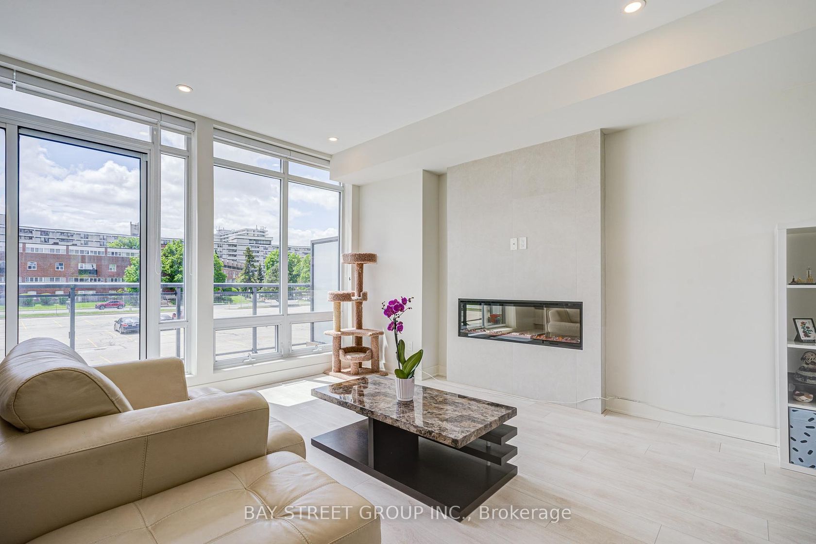 This luxury 3-bedroom townhouse features 9-foot smooth ceilings throughout. Sunlight pours in through floor-to-ceiling windows showcasing park views. The open-concept kitchen impresses with custom cabinetry, stone slab countertops, and an oversized island. The ground-level suite offers heated floors, a kitchenette, private washroom, and separate entrance - ideal for guests or rental income. Enjoy direct garage access from the foyer. Premium condo amenities include a gym, sauna, game rooms, and rooftop barbecue area. The location can't be beat - walkable to the future Crosstown LRT and TTC hub. Surrounded by parks and shops, it's minutes from the DVP, 401, Science Centre, and Museum.