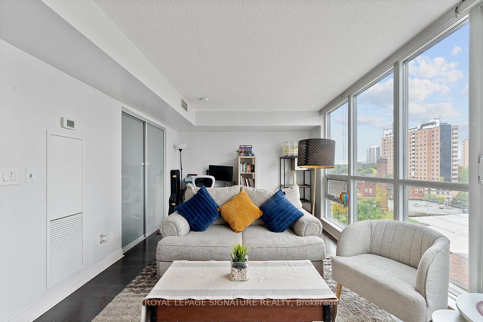 Welcome to Suite 718 at The Modern. Step into a bright and functional 1+den layout featuring a galley kitchen with stainless steel appliances overlooking the open-concept living area. The spacious living room is framed by floor-to-ceiling windows and a Juliette balcony, filling the space with natural light. The bedroom sits just off the living room with sliding glass doors and closet. Enjoy world-class building amenities including a rooftop garden with BBQ area, two plunge pools with cabanas, a party room, bar and billiards, fitness centre, yoga studio, steam room, 24-hour concierge, and visitor parking. Conveniently located with TTC at your doorstep and just a short walk to St. Lawrence Market and the Distillery District.
