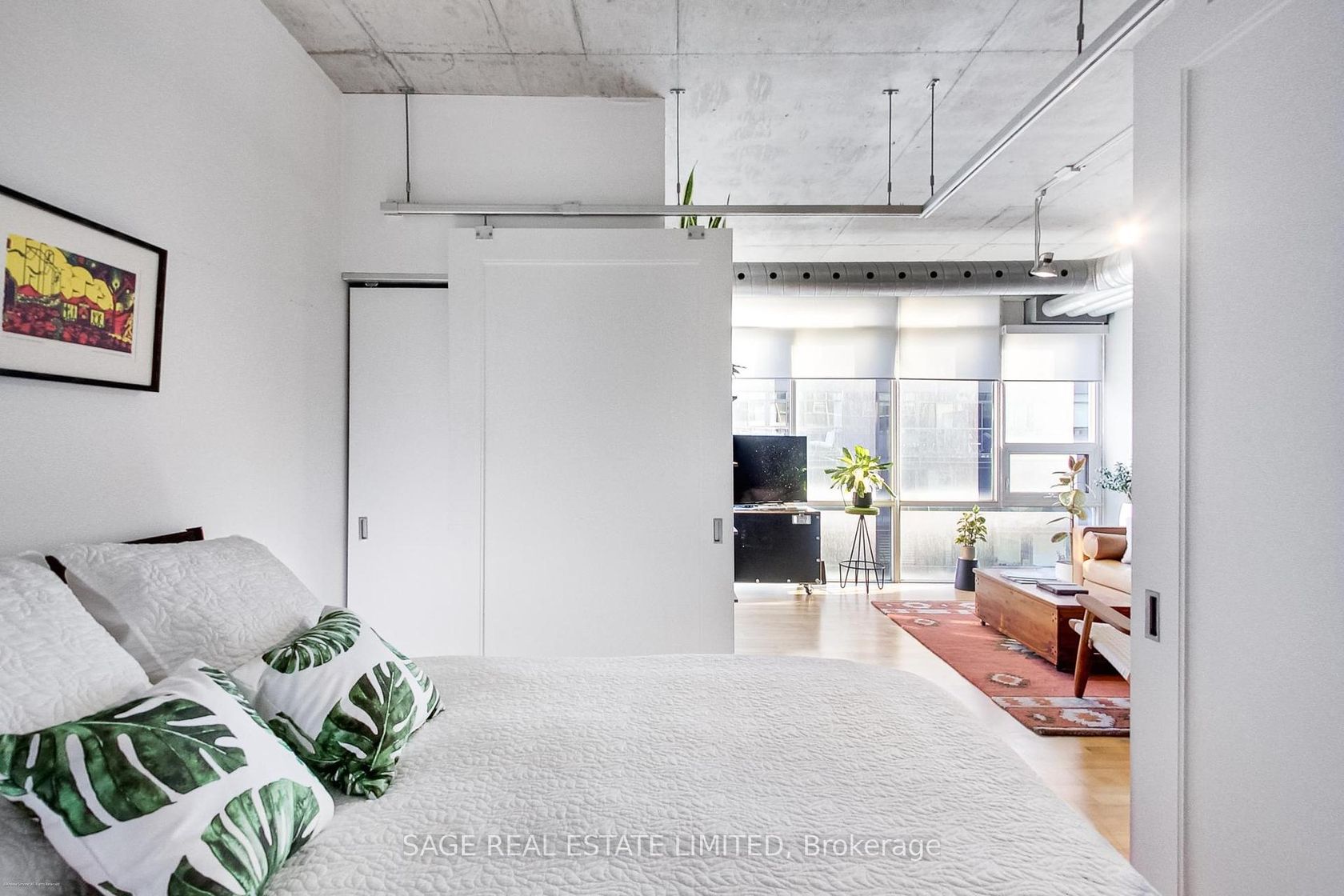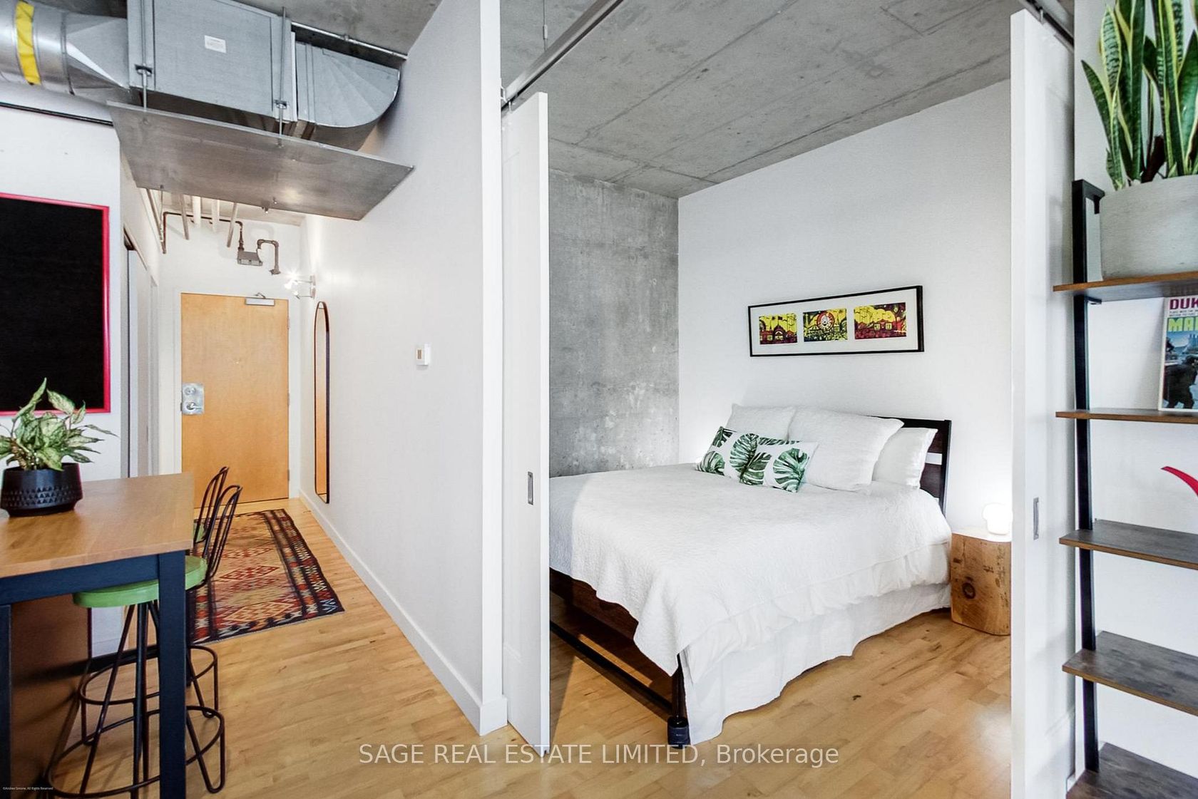 Urban sophistication meets King West cool. Welcome to Stewart Lofts, a boutique gem tucked into the heart of the city. This 1-bedroom, 1-bathroom loft blends industrial edge with warmth and style: soaring concrete ceilings, exposed ductwork, and a striking feature wall set the tone, while south-facing floor-to-ceiling windows pour in natural light and showcase city views. The sleek kitchen offers stainless steel appliances, granite countertops, and ample prep space, a smart blend of form and function. Warm hardwood floors add texture throughout, leading to a thoughtfully designed bedroom with excellent closet space and a modern bathroom complete with a rain shower and an elegant marble vanity. The building welcomes you with a bold, industrial-style lobby finished in concrete and brick. Pet-friendly and full of personality, Stewart Lofts places you steps from The Well, Trinity Bellwoods Park, Queen West, and the TTC, with the core of the city right at your fingertips.
