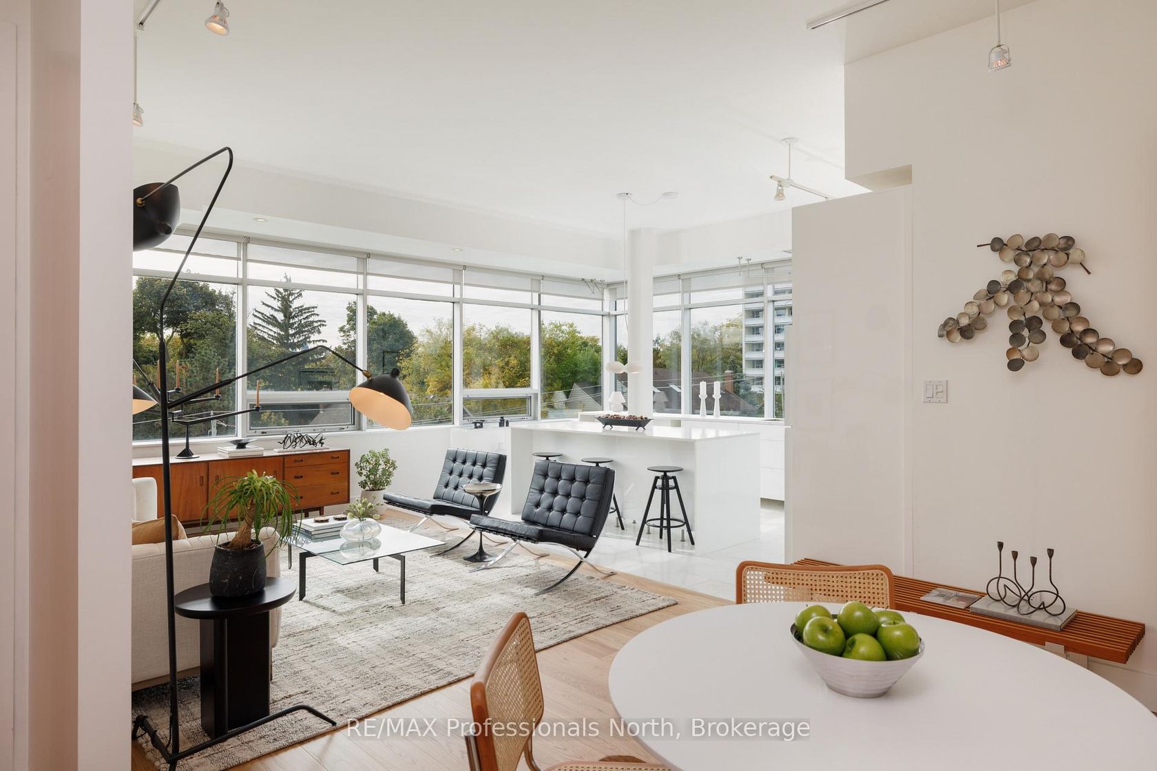 Welcome to The Soho Bayview Lofts. A condo designed for living - open, airy, and effortlessly refined. At almost 1,200sqft with soaring 10ft ceilings, the desirable split bedroom layout offers both volume and warmth in Midtown Toronto's coveted Bayview-Mount Pleasant corridor. This South-West corner suite captures sunlight throughout the day and city views by night, framed through fourteen expansive windows. The open-concept living and dining space is grounded by newly installed engineered oak flooring, seamlessly flowing into a spacious and recently updated custom kitchen, where the surrounding tree canopy and city skyline provides a striking backdrop. A large kitchen island with quartz waterfall counters anchors the space, offering a relaxed alternative for dining with comfortable seating for six. The primary suite is a serene retreat - generous in both scale and privacy, with a large walk-in closet, private ensuite, and additional storage, making everyday living effortless. Both bedrooms can easily accommodate king beds, offering balance and privacy for family, guests, or a quiet work-from-home space. A welcoming foyer, four-piece bathroom, in-suite laundry, and well appointed storage space complete this bright and beautifully proportioned home. Building conveniences include a fitness room, ground floor terrace with BBQ, games room, meeting room & party space. One owned parking spot is included. Enjoy the peace of a quiet boutique building known for its understated elegance - units at the Soho Bayview Lofts are rarely offered for sale. Steps to Bayview and Mount Pleasant; schools, cafés/restaurants, stores, multiple parks, TTC, and the upcoming Eglinton LRT.