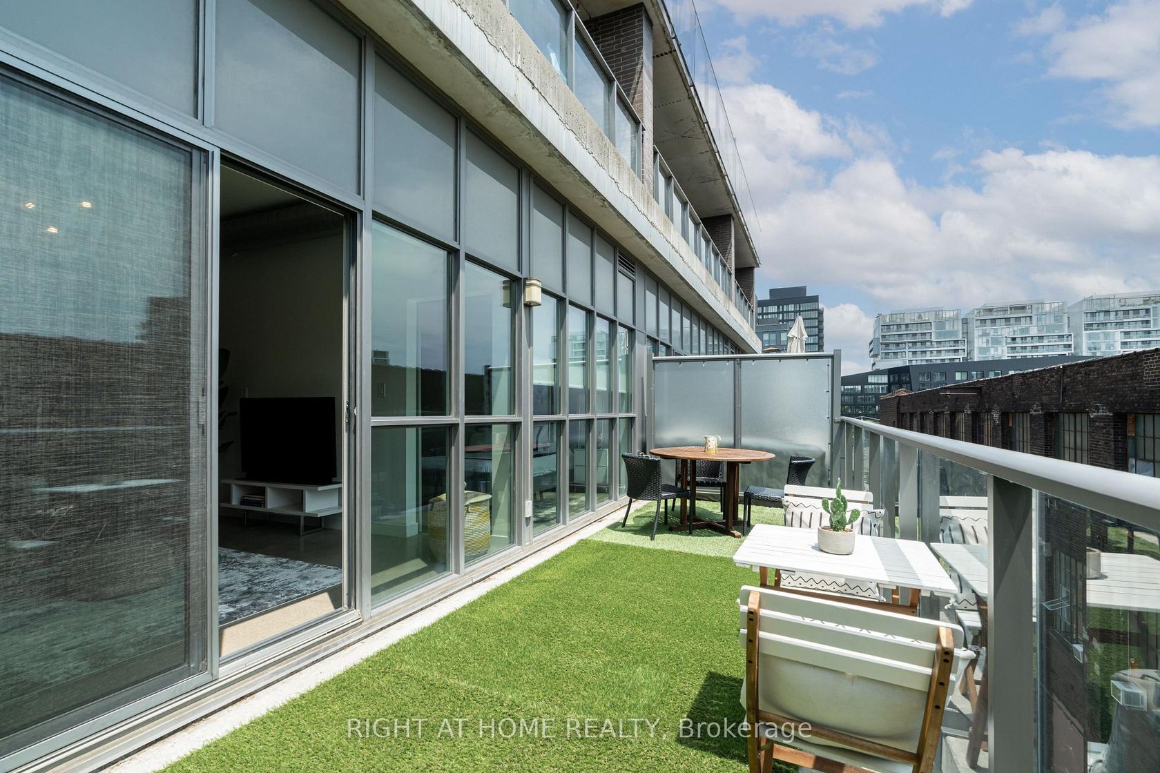 Stylish and Immaculately Kept 1+1 Bedroom Condo in the Heart of Corktown. Discover this bright and beautifully maintained 1+1 bedroom, 1-bathroom condo perfectly positioned in Toronto's lively Corktown community. Nestled within an intimate 6-storey boutique residence at King & Sumach, this spacious suite offers approximately 716 sq. ft. of interior living space plus a 161 sq. ft. south-facing private terrace, ideal for relaxing or entertaining outdoors. Step inside to find 10-foot ceilings, exposed concrete floors, and floor-to-ceiling windows that flood the suite with natural light. The open-concept design seamlessly integrates the modern kitchen with the living and dining areas, creating an inviting flow for both everyday living and hosting guests. The generous den serves as the perfect home office, guest space, or creative nook.The primary bedroom features a walk-in closet and direct access to a stylish 4-piece bathroom. Additional highlights include in-suite laundry, owned parking, and a private locker for added convenience.Located just minutes from downtown-only a few stops to the Financial District-you'll enjoy effortless access to Riverside, Leslieville, the Canary District, the Distillery District. Outdoor lovers and pet owners will appreciate the nearby parks and dog-friendly green spaces.Residents benefit from access to amenities in the neighbouring Corktown II building, including a fitness centre, party room, and visitor parking. This move-in-ready home perfectly blends modern urban living with boutique charm. With the King streetcar at your door and easy access to the DVP, Gardiner Expressway, and Union Station, commuting is simple and convenient.Whether you're a first-time buyer, downsizing, or investor, this condo offers exceptional value, comfort, and lifestyle. Welcome to modern city living at its finest. Measurements to be verified by Buyer and/or Buyer's Agent. (Furniture in Photos may not reflect the current setup of the property)