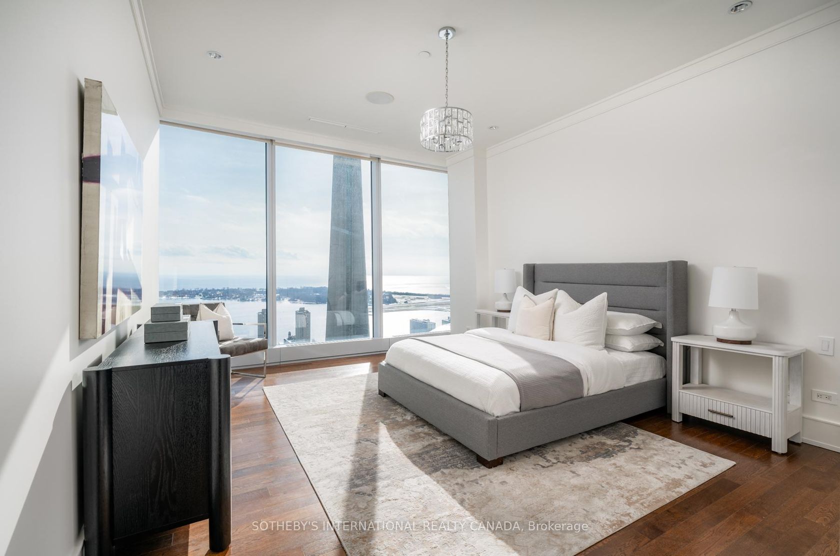 Step into a world of refined elegance at this exclusive 2,500 sq. ft. corner residence in the iconic Ritz-Carlton Toronto. Accessed by your own private elevator, this 2 bedroom, 3 bathroom suite embodies timeless sophistication, with finishes that reflect the heritage and grandeur of one of the worlds most celebrated luxury brands. With breathtaking unobstructed southeast views of Toronto's skyline and Lake Ontario, this suite offers a tranquil retreat high above the city. The living and dining areas feature expansive 10ft floor-to-ceiling windows that bathe the space in natural light, an open-concept design with herringbone engineered hardwood and a bespoke gas fireplace framed by a custom porcelain and limestone mantle. The gourmet kitchen boasts premium stainless steel and paneled appliances, stunning light fixtures, marble flooring, centre island with breakfast bar, granite countertops, tile backsplash, undermount lighting and a spacious breakfast area with spectacular south facing views. The primary bedroom offers engineered oak hardwood, a spacious walk-in closet with custom cabinetry and a lavish 5-piece ensuite that includes heated limestone floors, heated towel rack, and granite countertops. The second bedroom provides stunning south-facing views, his-and-her closets, and a private 4-piece ensuite with marble countertops and limestone floors. Living at The Ritz-Carlton means experiencing unparalleled service and amenities through the buildings state-of-the-art fitness center, rejuvenating spa, indoor saltwater pool, hot tub, steam room, sauna, media rooms, party facilities, rooftop terraces, guest suite, private boardroom, on-site restaurants, 24-hour concierge, valet parking, and private elevator access. Nestled in the heart of Toronto's vibrant Entertainment District, just steps from world-class dining, luxury shopping, cultural landmarks, and seamless connectivity through Union Station and PATH system. Schedule a private tour today.
