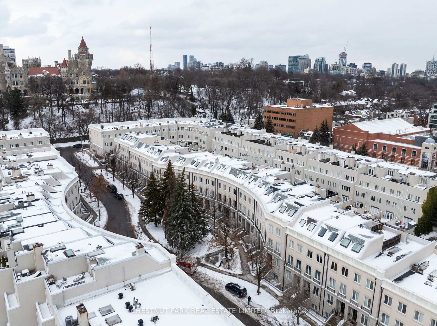 New York-style executive townhome set quietly beside Casa Loma, one of Toronto's most iconic historic landmarks. Clad in limestone and positioned on a calm, tree-lined street, 211 Walmer Road sits within the Castle Hill enclave, surrounded by some of the city's most established and affluent neighbourhoods. Enjoy the best exposure in the complex, elevated sightlines, and city views from the rooftop - a compelling advantage in this landmark setting. The scale here is the headline. Unbeatable square footage of nearly 4,000 sq ft delivers expansive principal rooms, high ceilings throughout, and a layout that feels substantial and well resolved. A sunken living room anchors the main level, centred around a wood-burning fireplace, while the family room walks out to the outdoors - ideal for hosting and relaxed daily living. Bedrooms are generously proportioned, supported by ample closet and storage space. The secluded two-storey primary suite is a true retreat, featuring double-height ceilings, lofted space, and a private terrace set above the tree canopy. A private garage adds convenience, paired with a low-maintenance lifestyle where landscaping and snow removal are fully managed. Quiet and discreet, yet moments to Yonge Street, Yorkville, the Annex, and South Hill. Just a five-minute walk to Dupont Station. A substantial residence where scale, privacy, and location align - elevated living, with a castle next door.