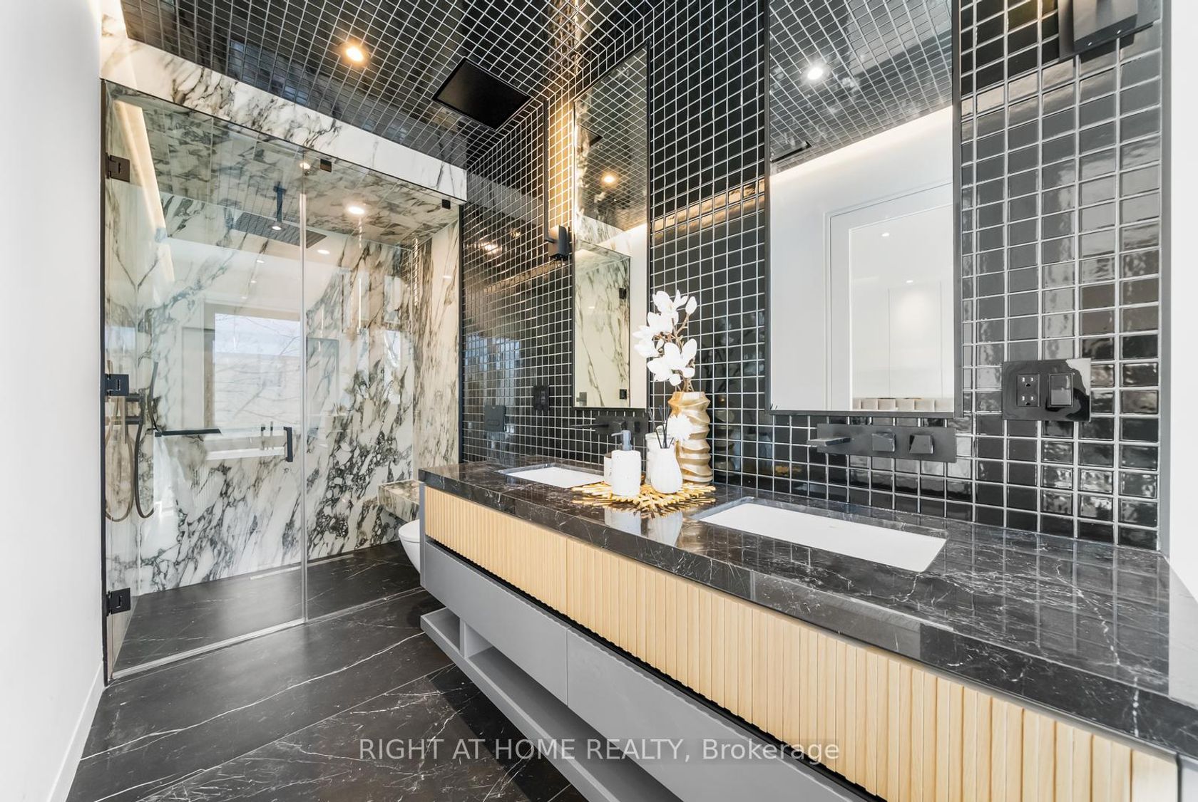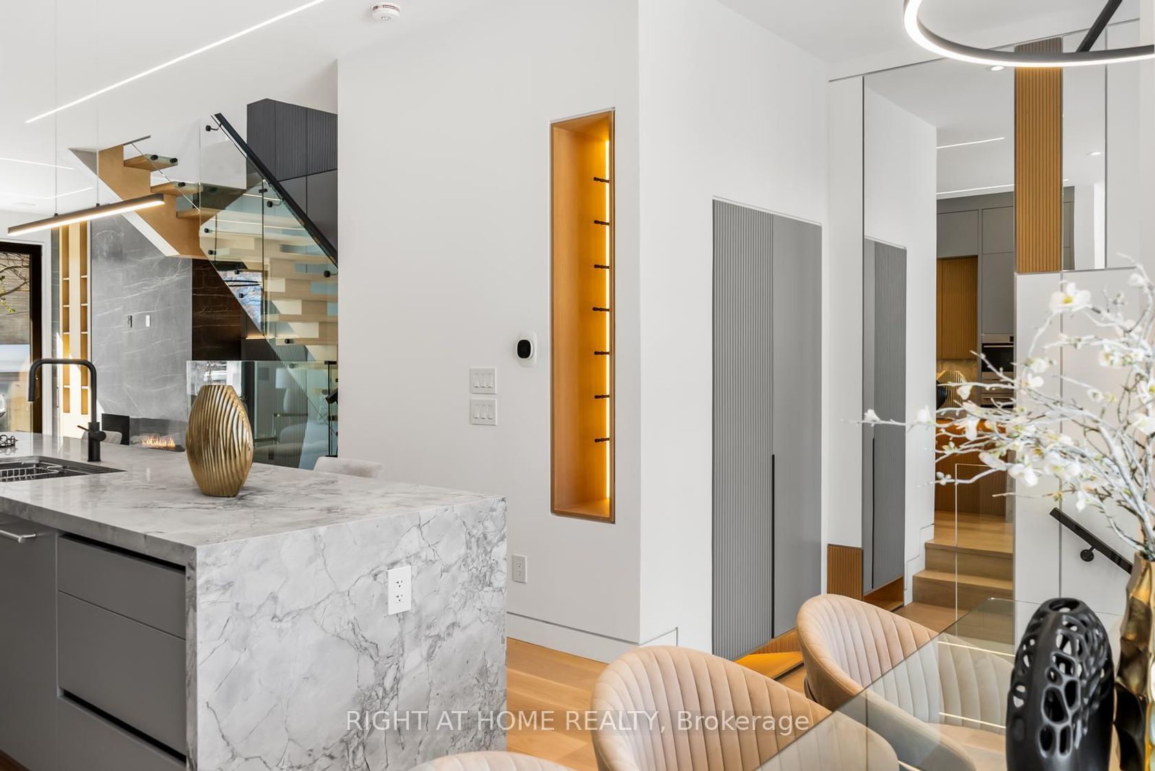 Welcome to 74B Rathnelly Ave - a brand-new, never-lived-in, custom-built luxury home in the prestigious Republic of Rathnelly one of Toronto's most in-demand neighbourhoods, minutes to Yorkville and close to some of the best private and public schools in Canada. A truly rare offering with exceptional design, craftsmanship, and high-end finishes throughout.Featuring German-imported Schüco aluminum windows and doors with triple-glazed glass, wide-plank white oak flooring, and a sleek trimless modern design with drywall-groove detailing. Impeccable interior detailing includes custom wall paneling and millwork, a statement mono-beam staircase, glass railings throughout, and upgraded strip lighting/fixtures.Chef's kitchen with custom-painted cabinetry, premium Sub-Zero & Wolf appliances, and natural stone countertops including Super White. Natural stone carries throughout the home (vanities, basement bar, fireplace), highlighted by a dramatic triple-sided marquee fireplace. Spa-inspired bathrooms feature CariMali Italian fixtures and wall-hung Duravit toilets, plus Italian tile and slab finishes with a strong focus on the Italian-slab basement.Enjoy a two-level, double-height heated basement with large rec room and bar area. Exterior impresses with high-quality linear brick wrapping the sides/rear/walkout, extensive interlock (including interlock driveway), and a standout snow-melt heated driveway, front porch, and rear walkout. Entertain on the composite deck and enjoy a large backyard rarely found in the area. Integrated heated garage (extremely rare in the neighbourhood), two furnaces + two A/C systems, high-efficiency spray-foam insulation, and smart security/speaker system.