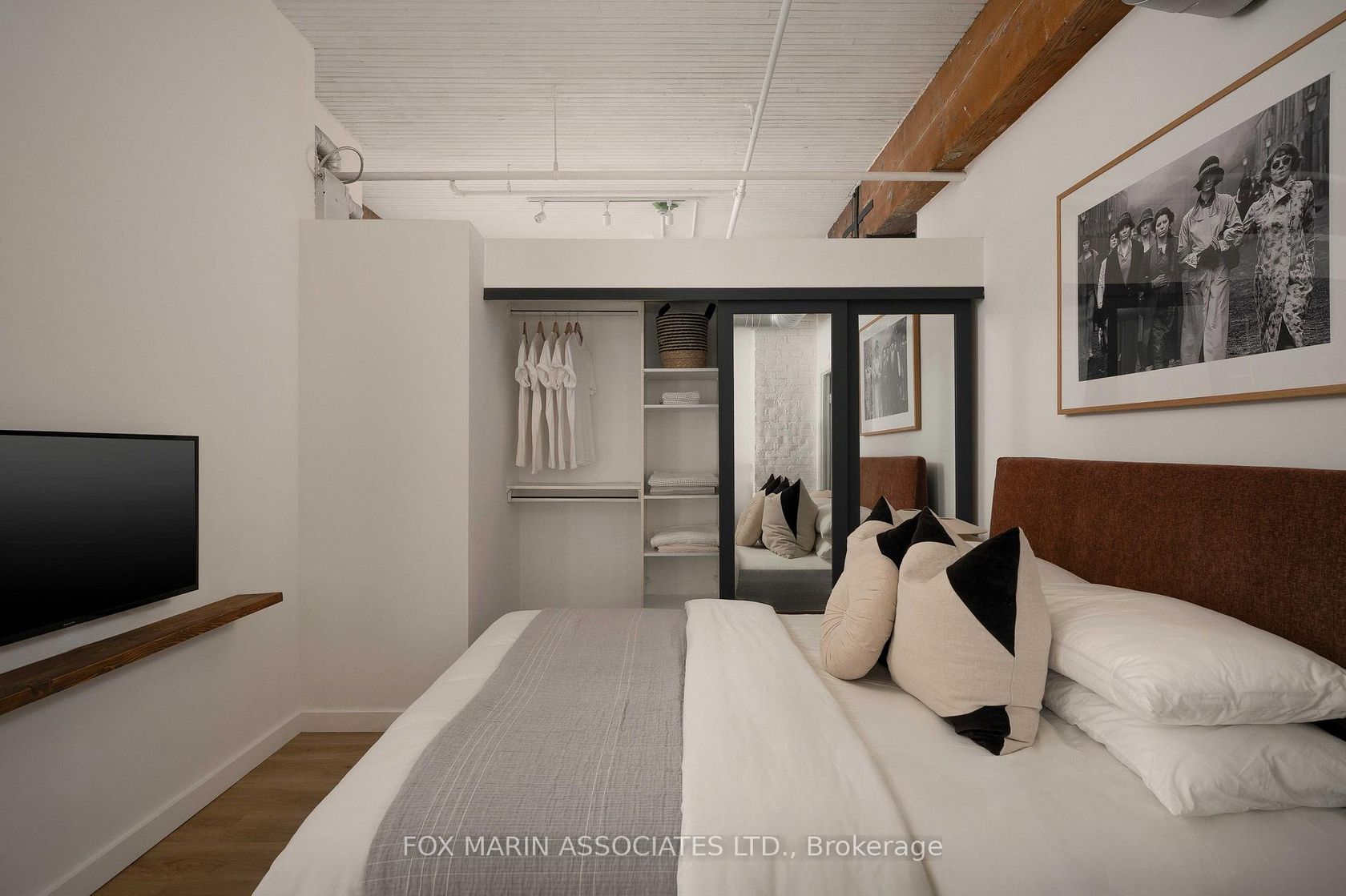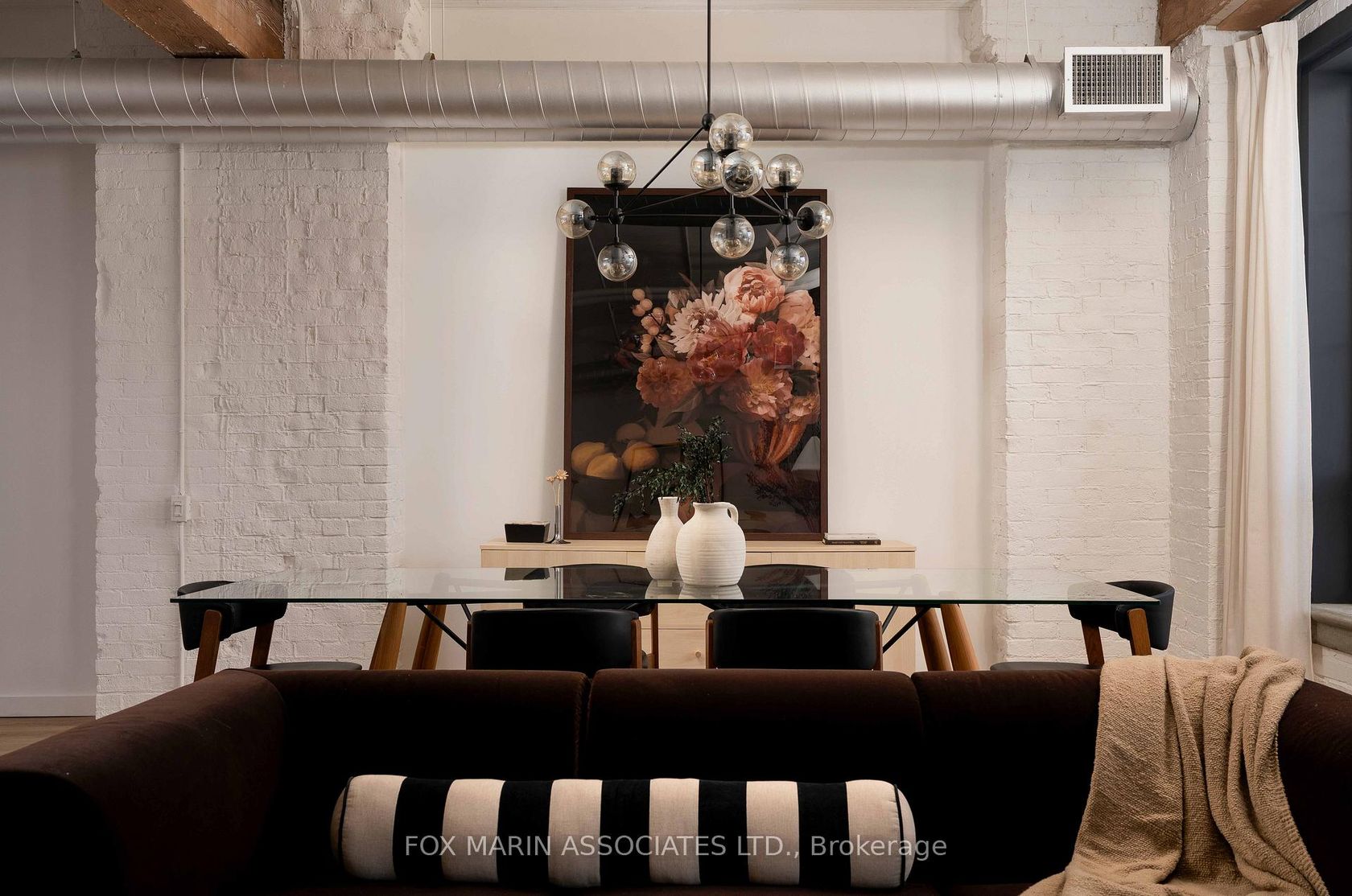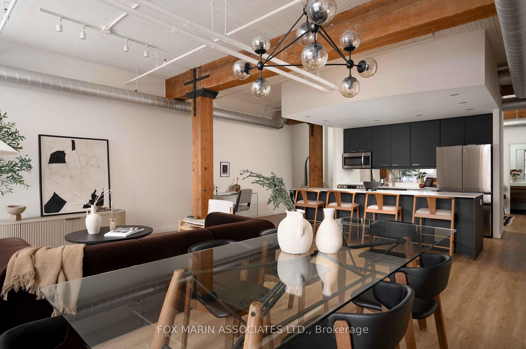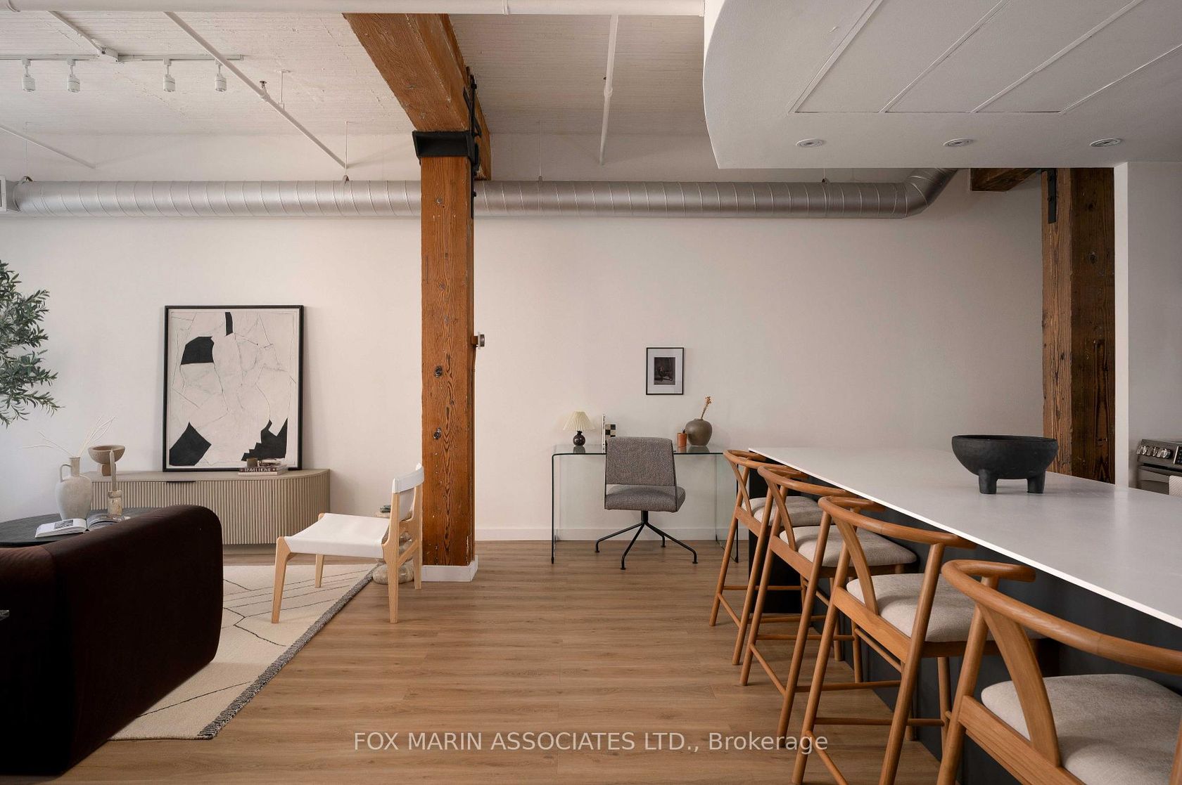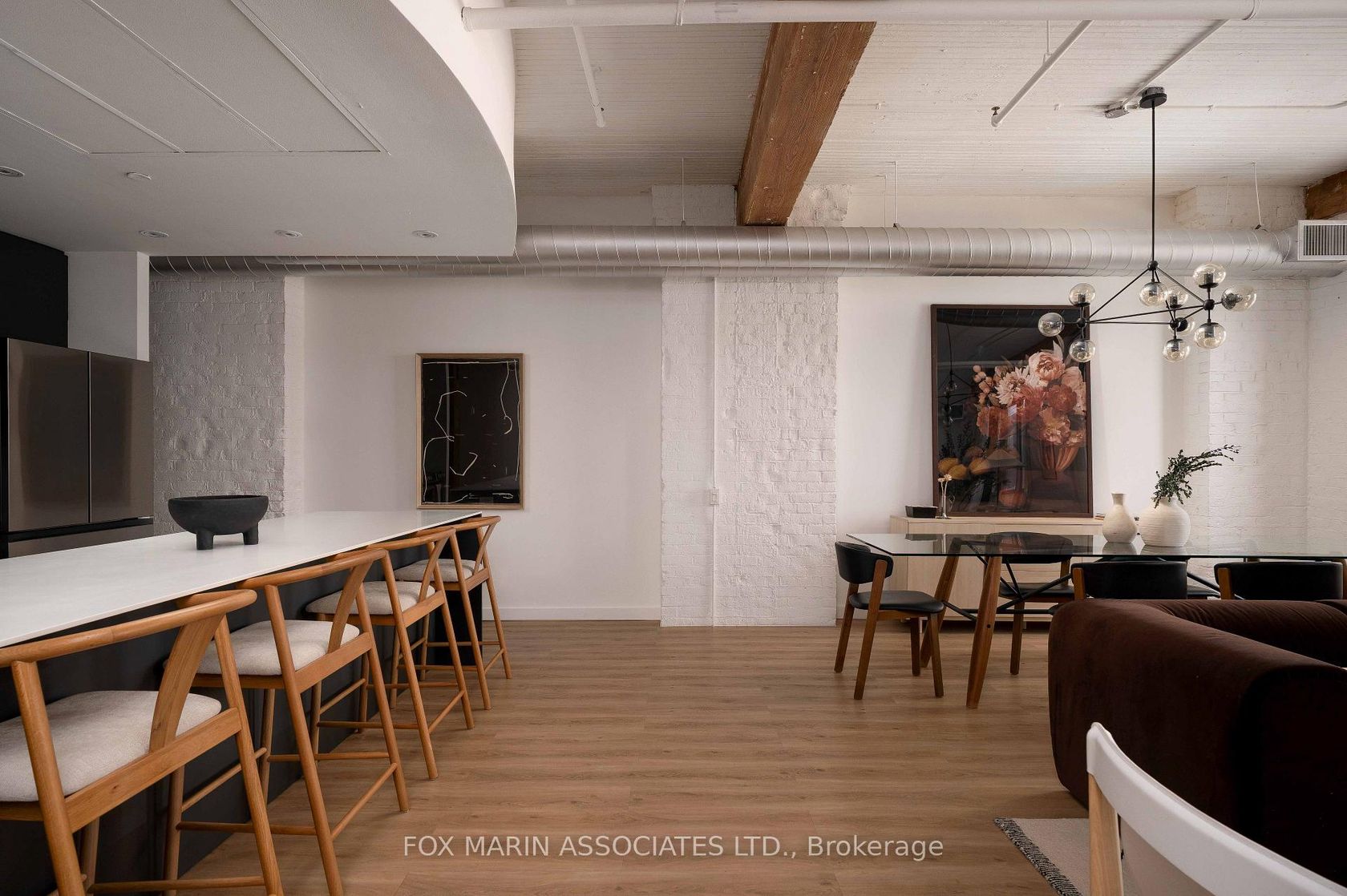A classic original with a moodier modern edge. Built in 1917 and packed full of integrity, the Gotham Vintage Lofts is the kind of building design & architecture enthusiasts simply wait for. Only 54 lofts in total. No two are exactly the same. Real spaces with real bones. And this third-floor lover stretches over 1,050 square feet of air and open volume. Ten-foot ceilings overhead. Exposed brick and beam. Ductwork. And conduit. Long, uninterrupted sight lines from left to right. Wide, balanced, and perfectly proportioned. Industrial in all the right ways with enviable hardwood plank floors, white painted brick and warehouse windows dressed from top to bottom. Original materials left exactly as they should be. Authenticity never goes out of style, my friends. With an easy Northern exposure and steady natural light throughout the day, the space is soft and soulful from morning to night. The kitchen is striking, anchoring the space while making entertaining easy with streamlined cabinetry, smart storage, and bar seating that keeps conversation flowing without interrupting. The bedroom is tucked away at the back, creating separation, with a full ensuite, built-in closets, and the option to choose your television program without chirping (from you-know-who)! Bathrooms follow the same design language: simple, clean, and well considered. Stone counters, neutral tiles, and crisp lines that balance function with a touch of quiet style. Underground parking and storage are included, and a location that does the rest while also being quietly removed from the hustle to the East of Bathurst. Walkable streets, easy transit, and Stanley Park are just moments away. Not manufactured. Not overdone. Just a timeless Toronto loft doing exactly what it was built to do (and lovin' you back just the same & more).