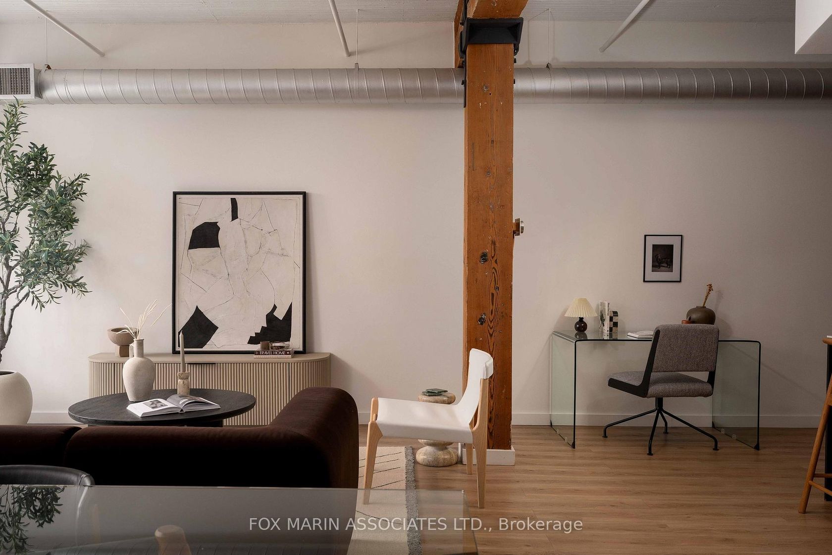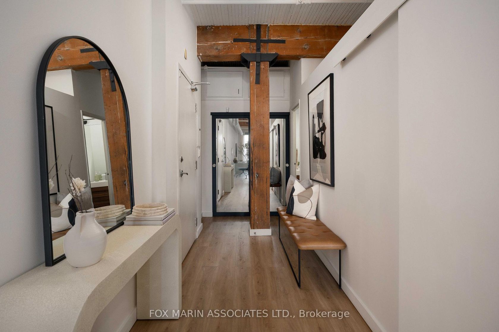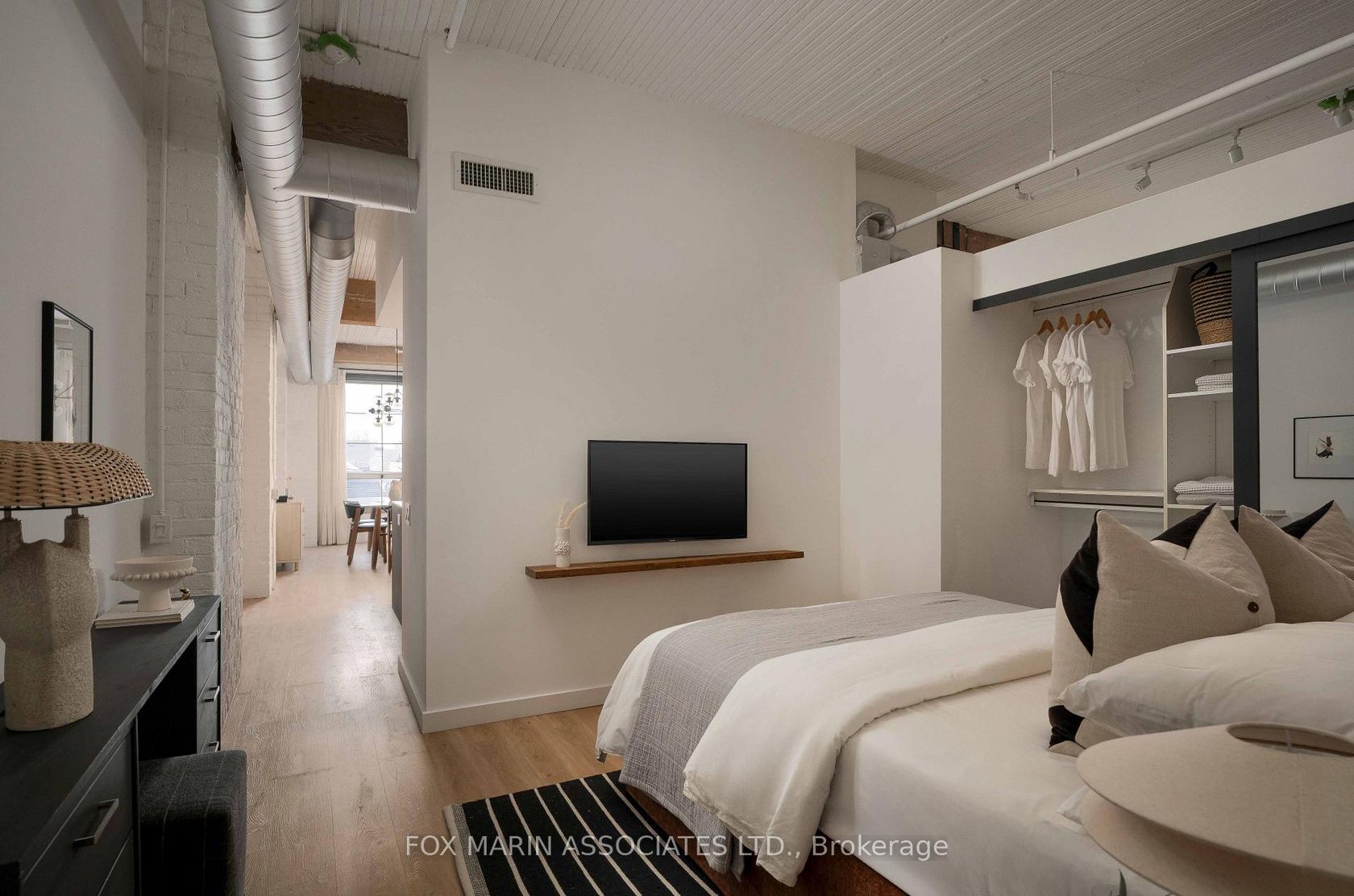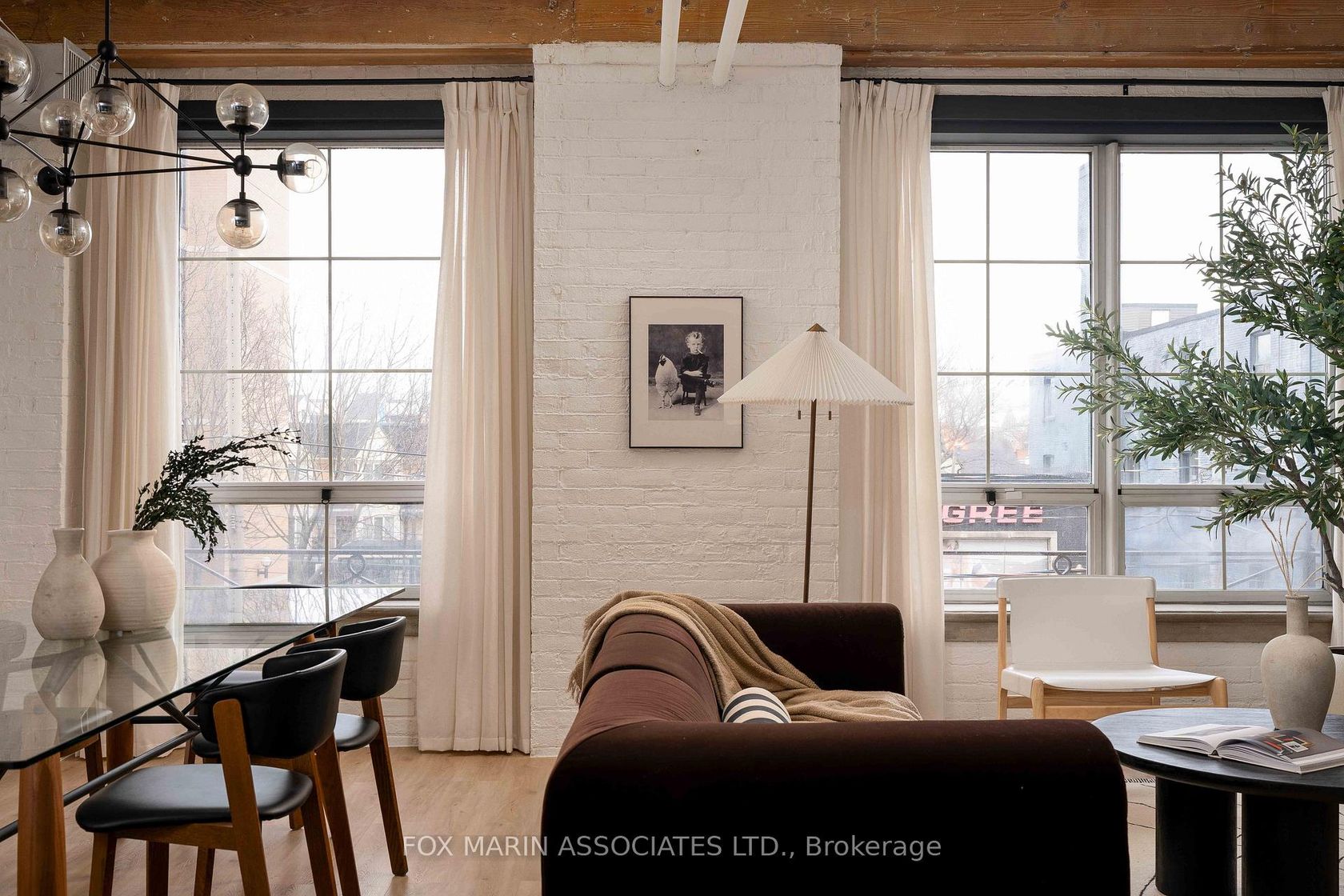 A classic original with a moodier modern edge. Built in 1917 and packed full of integrity, the Gotham Vintage Lofts is the kind of building design & architecture enthusiasts simply wait for. Only 54 lofts in total. No two are exactly the same. Real spaces with real bones. And this third-floor lover stretches over 1,050 square feet of air and open volume. Ten-foot ceilings overhead. Exposed brick and beam. Ductwork. And conduit. Long, uninterrupted sight lines from left to right. Wide, balanced, and perfectly proportioned. Industrial in all the right ways with enviable hardwood plank floors, white painted brick and warehouse windows dressed from top to bottom. Original materials left exactly as they should be. Authenticity never goes out of style, my friends. With an easy Northern exposure and steady natural light throughout the day, the space is soft and soulful from morning to night. The kitchen is striking, anchoring the space while making entertaining easy with streamlined cabinetry, smart storage, and bar seating that keeps conversation flowing without interrupting. The bedroom is tucked away at the back, creating separation, with a full ensuite, built-in closets, and the option to choose your television program without chirping (from you-know-who)! Bathrooms follow the same design language: simple, clean, and well considered. Stone counters, neutral tiles, and crisp lines that balance function with a touch of quiet style. Underground parking and storage are included, and a location that does the rest while also being quietly removed from the hustle to the East of Bathurst. Walkable streets, easy transit, and Stanley Park are just moments away. Not manufactured. Not overdone. Just a timeless Toronto loft doing exactly what it was built to do (and lovin' you back just the same & more).