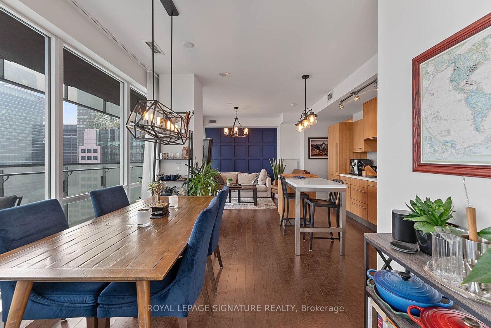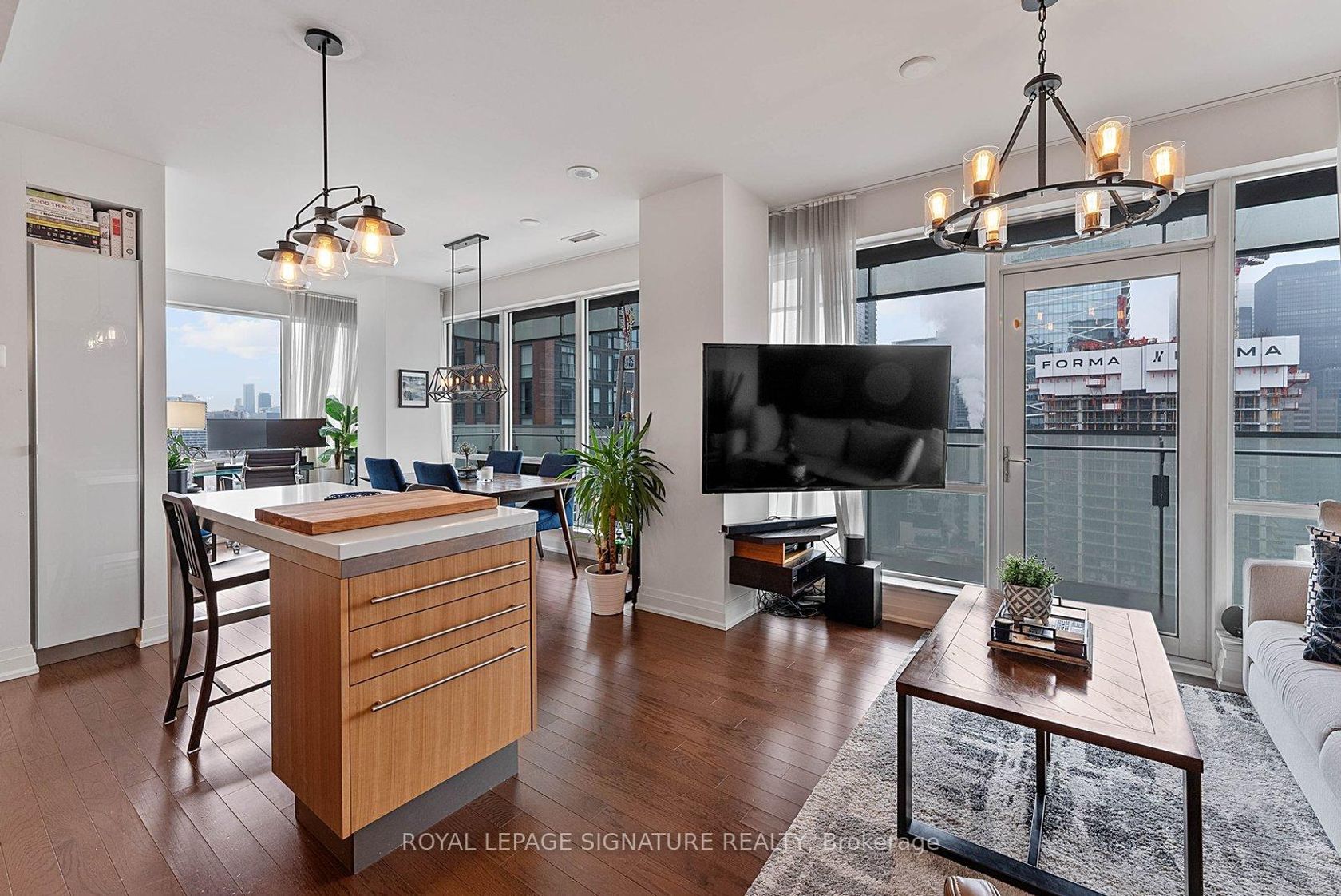 Welcome to Suite 3008 at Festival Tower. A modern corner unit featuring a large terrace with expansive city views. Step into the open kitchen combined with living room and separate dinning space. Floor to ceiling windows allow for an abundance of natural light throughout. The kitchen includes built-in appliances, ample storage and a breakfast island for everyday convenience. The primary bedroom features a double closet and semi-private ensuite. Pride of ownership is evident throughout with thoughtful details and finishes. Experience downtown living with every amenity at your doorstep. Walking distance to Rogers Centre, CN Tower, waterfront, restaurants, cafes, shops, and convenient transit options.