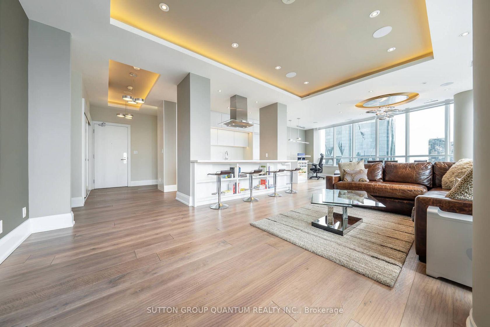 Welcome To The Residences Of Maple Leaf Square Located In The Heart Of Toronto's Harbourfront, Financial & Entertainment Districts. This Prestigious Sub-Penthouse 2 Bedroom + Den Corner Suite Features Approximately 1424 Interior Square Feet. Meticulously Re-Designed Throughout With Top Of The Line Appliances, Automated Built-In Kitchen Cabinetry, Stone Countertops, An Undermount Sink & A Breakfast Bar. Bright Soaring 10-Foot Floor To Ceiling Wrap Around Windows With Dropped Ceilings, Pot Lighting & Integrated Ambient Led Lighting. Control4 Smart Home Automation With Dual-Layer Blinds, Audio, Lighting & Climate Control Systems. Luxurious Lighting Fixtures, Natural Stone Window Sills & Hardwood Flooring Throughout Facing Stunning South East Sweeping City & Lake Views. The Soundproofed Grand Bedroom Retreat Includes A 5-Piece Ensuite With Kohler Numi Intelligent Toilet, Heated Floor, Heated Towel Racks, Mirror Integrated Defogging, Undermount Double Sinks, A Separate Glass Enclosed Spa Steam Shower With Heated Bench & A Relaxing Deep Neptune Therapy Whirlpool Tub. A Spacious Sized Split 2nd Bedroom With A 3-Piece Ensuite With Spa Shower, Heated Floor, Heated Towel Rack, Large Closet & A Walk-Out To The Balcony. An Open Concept Den Area Perfect For A Home Office. Connected Directly To M.L.S. Mall, Longo's, Starbucks, Pharmacy, Restaurants, Underground P.AT.H., Scotiabank Arena & Union Station. Steps To Toronto's Harbourfront, C.N. Tower, Rogers Centre, Ripley's Aquarium, The Financial & Entertainment Districts. 1-Premium Parking Space & 1-Premium Locker Is Included Both Located On The P2 Level. Click On The Video Tour!