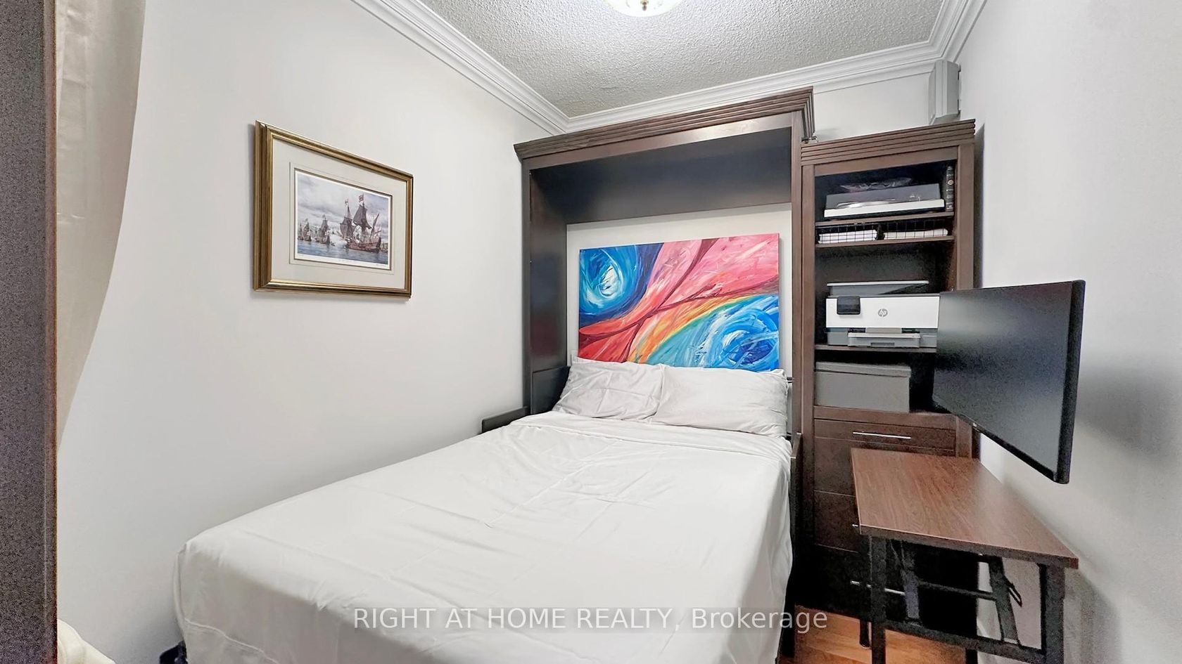 Rarely available sun-drenched southeast corner "02" suite at the prestigious Harbour View Estates, offering 1,268 sq ft of refined living with breathtaking floor-to-ceiling views of Lake Ontario, the iconic CN Tower, & the vibrant Toronto skyline. This expansive layout features 2 bedrooms, 2 full bathrooms, & a large enclosed den thoughtfully designed with built-in Murphy bed & desk ideal as a third bedroom or private home office. The intelligently separated bedroom layout ensures maximum privacy for families. Elegant upgrades throughout include rich Jatoba hardwood flooring, Hunter Douglas blinds, custom Elfa closet systems, built-in wired sound system, pot lights, & newly updated bathroom vanities. The chef-inspired kitchen is equipped w/brand new premium Café SS appliances, including a dual-fuel, dual-oven range, refrigerator with ice & water, and convection microwave. Additional features include Miele dishwasher, wine fridge, & stacked washer/dryer. Enjoy the convenience of included parking & locker, plus ample visitor parking, car wash station, & 4 rentable guest suites. All-inclusive maintenance fees cover utilities & provide access to the renowned 30,000 sq ft, three-level SuperClub featuring a 25m indoor pool, full gymnasium, state-of-the-art fitness centre, tennis & squash courts, spin studio, theatre, bowling lanes, sauna, jacuzzi, BBQ area, children's play spaces, dog park, & rooftop party room. Unbeatable waterfront location just steps to water taxis to the Toronto Islands, Rogers Centre, Scotiabank Arena, Ripley's Aquarium of Canada, & the vibrant King West district. Walk to Union Station, the Financial District, & enjoy seamless access to transit including the Spadina streetcar, UP Express, GO Transit, & VIA Rail. Minutes to Billy Bishop Toronto City Airport and connected pathways including The PATH and waterfront bike trails. With an exceptional Walk Score of 96, this residence offers unmatched urban convenience alongside luxury waterfront living.