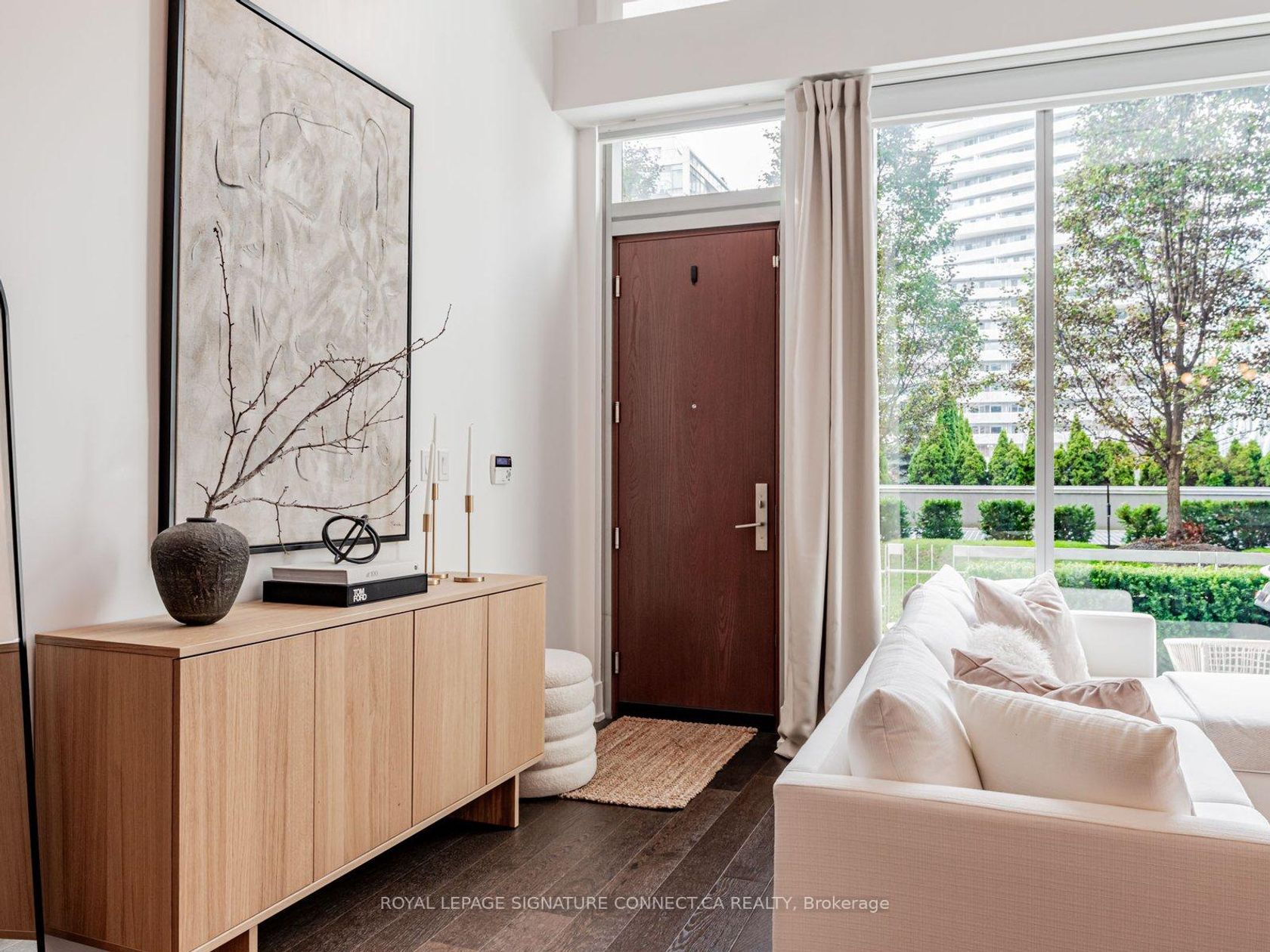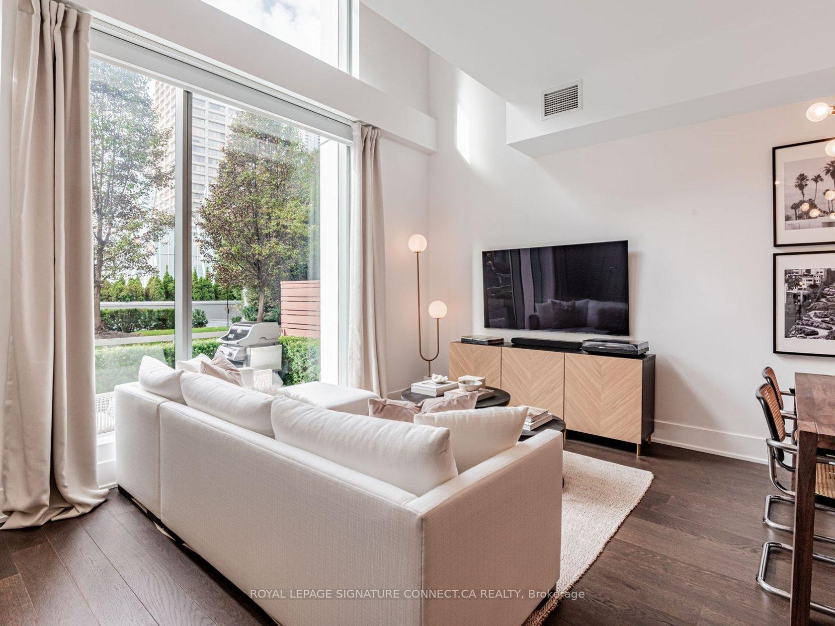 Looking to live at Toronto's most coveted waterfront residence? Look no further than TH132 at Pier 27! This 1+Den, two bathroom townhouse features a thoughtful layout with a den that can effortlessly be used as a second bedroom, providing a flexible space that adapts to your needs. Love to host? This main floor is built for it. The expansive kitchen flows into a bright, open living area, creating the perfect setting for dinner parties or cozy, quiet nights in. The kitchen features premium Miele appliances and a Sub Zero fridge, paired with a large, custom built, white marble island that makes cooking a dream. In the warmer months, enjoy grilling on your private terrace that is equipped with a dedicated gas line. Two storeys of floor to ceiling windows overlooking green space in this quaint, private courtyard, provides a sense of tranquility and balance to the bustle of the city that awaits. There have been over $40,000 of recent upgrades done including lighting with pot lights throughout, custom built in closet units in both the primary bedroom and den, and automatic dual roller window coverings to name a few. See attached feature sheet for full list! Enter directly from street level into soaring 20 ft. ceilings that span the full height of the unit and enjoy 10ft ceilings in both the living room and the primary suite on the second floor. Step outside your unit, and into the best of luxury amenities. 39 Queens Quay boasts both an indoor and outdoor pool, fitness room with sauna and steam room, theatre room, lounge & party rooms, visitor parking, and guest suites. The location delivers unbeatable convenience. You are just minutes from Union Station and the Financial District. Never walk far for your groceries again with Loblaws, Farm Boy, and the flagship LCBO right across the street. Go for dinner at Simona along the waterfront or grab your morning coffee from Dark Horse Espresso Bar, both a short walk away. Experience waterfront living at it's finest.