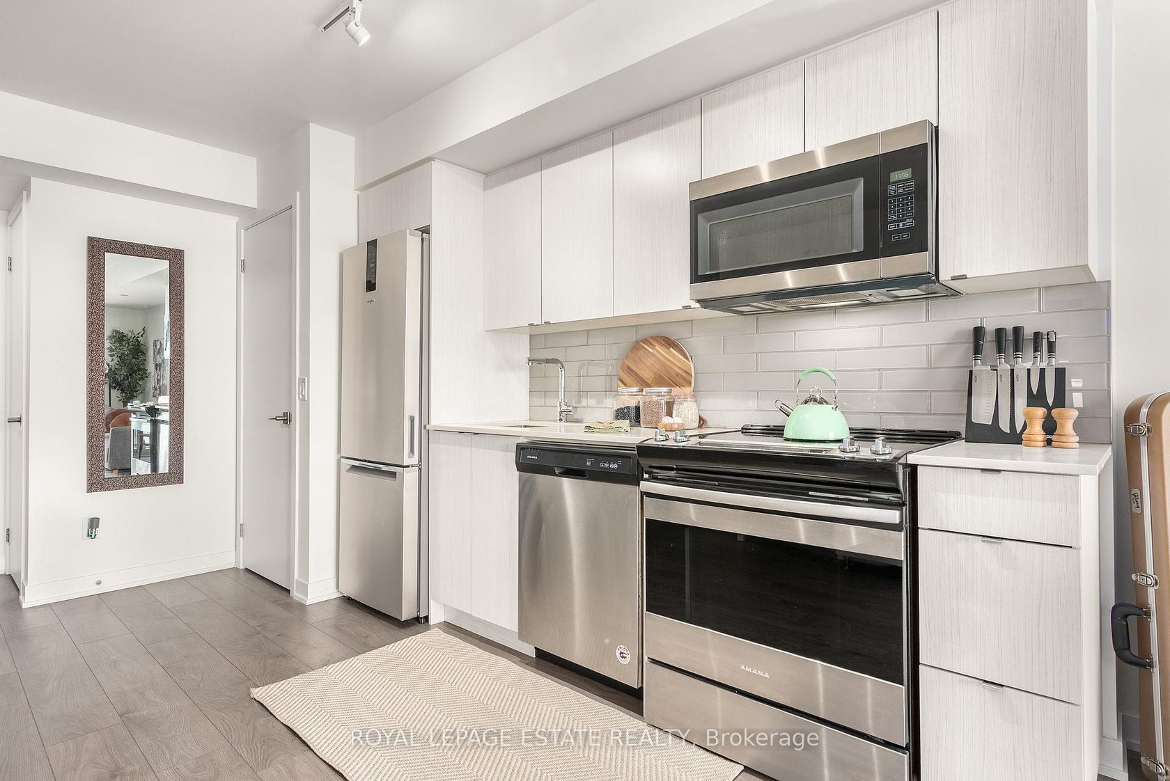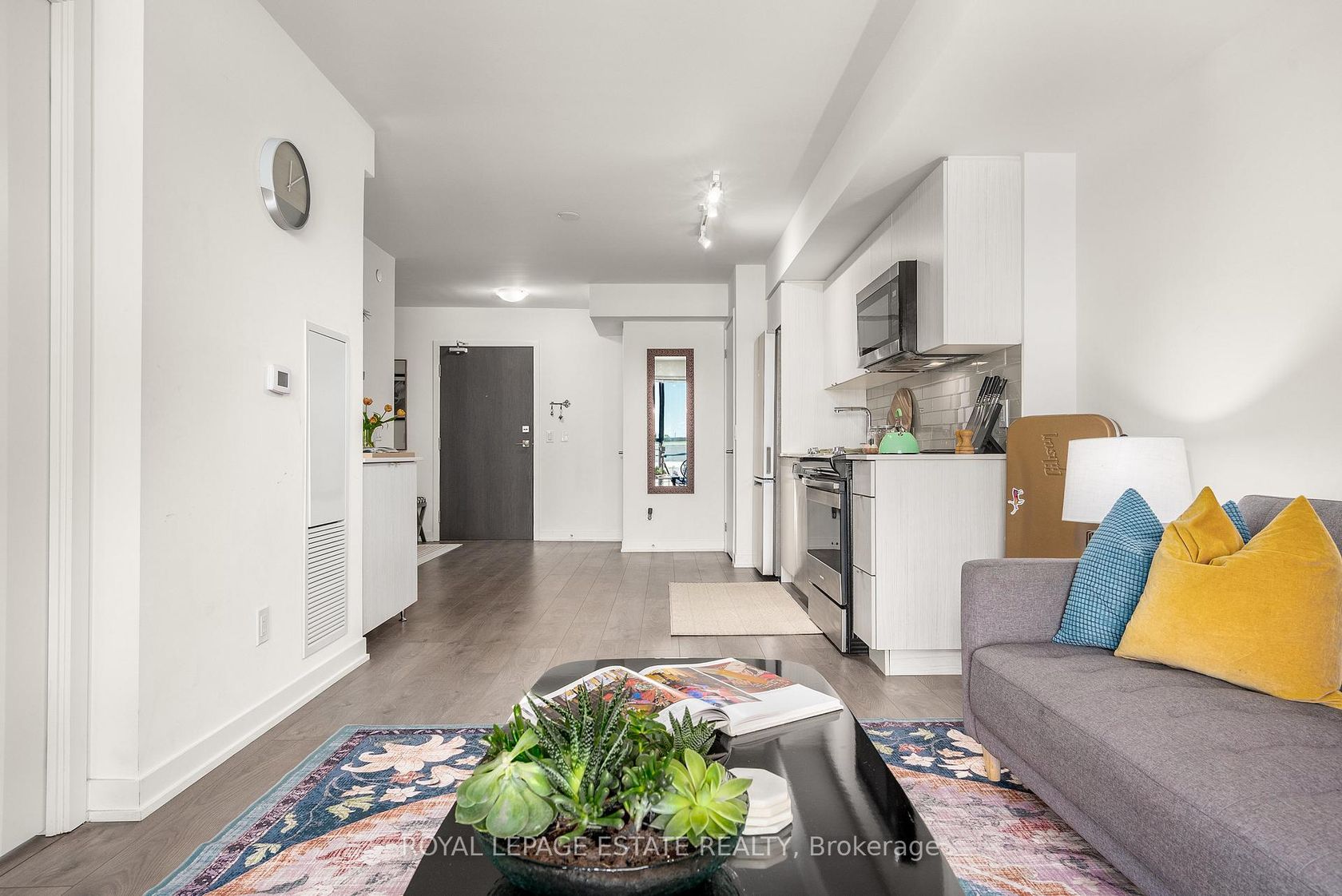 Discover contemporary comfort in this bright and spacious 1-bedroom + den, 2-bath condo in *The Lanes*, a stylish, well-managed building located in the highly sought-after Topham neighbourhood, one of East York's most connected and community-driven pockets. Designed with today's lifestyle in mind, this home offers a seamless blend of functionality and flair that's perfect for young professionals, creatives, or first-time buyers looking for a vibrant place to call their own. Inside, the open-concept layout is bathed in natural light thanks to expansive west-facing windows, offering stunning sunset views and a dynamic cityscape. The kitchen is sleek and modern, complete with quartz countertops, stainless steel appliances, and finishes that balance simplicity with sophistication. The spacious primary bedroom features a large closet and a luxe 4-piece ensuite, complete with a glass wall shower and backlit heated mirrors for that extra touch of comfort. The versatile den makes an ideal home office, creative space, or guest nook, adding flexibility to your everyday living. Life at The Lanes comes with elevated amenities including concierge service, the stylish Strike Club for social gatherings, the Sky Deck Rooftop Lounge with panoramic views, and the Skyview Fitness Centre, all designed to keep your lifestyle both active and connected. Step outside and you're surrounded by a neighbourhood that has it all: cozy cafes, great local eats, shops, and green escapes like Topham, Warner, and Edge Parks. Whether you're strolling through ravines, heading to the Beach for a quick weekend recharge, or commuting downtown in under 30 minutes, this location makes everything easy. The building offers a quiet, community-focused atmosphere in a diverse, walkable area that's full of life and charm. If you're ready for a home that matches your energy and ambition, this condo at The Lanes is the one. Move in and make it yours.