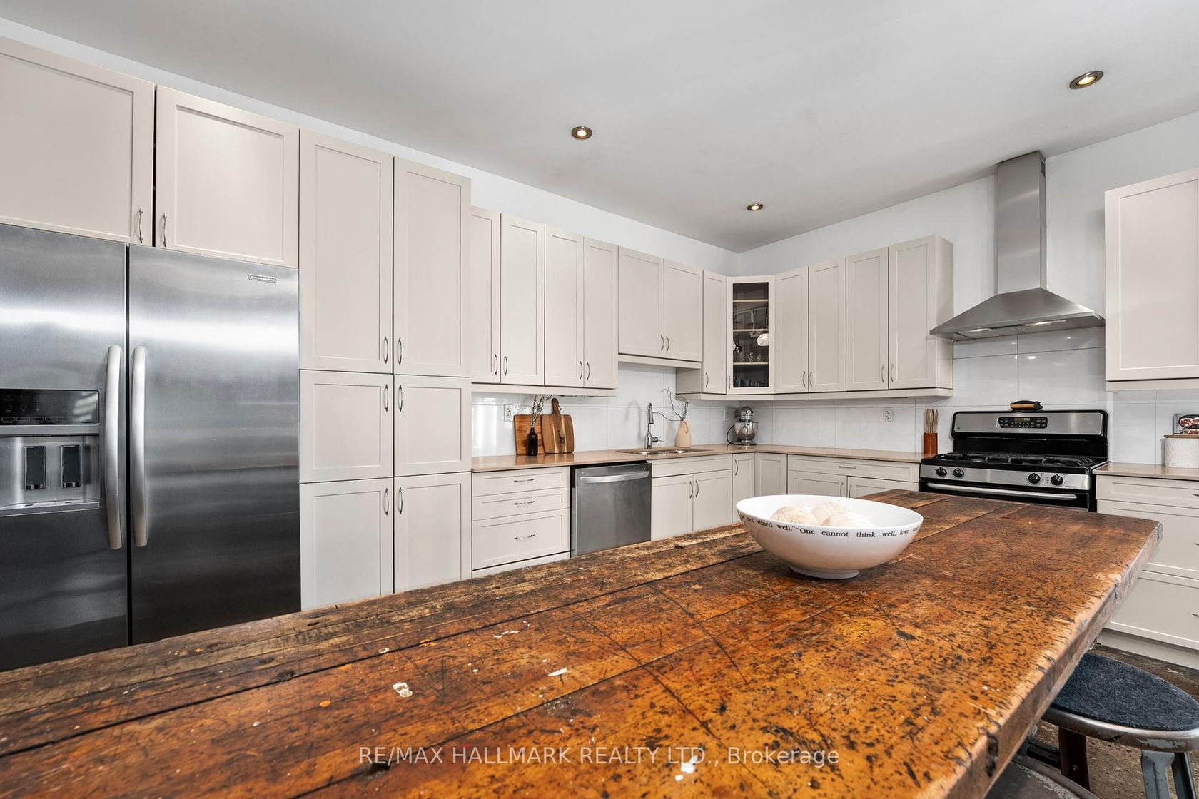 One of Leslieville's largest and most distinctive 4 bedroom, 2 private office loft in the coveted Bakery Lofts of Leslieville. This loft is truly one of a kind and super rare! Expansive 2,356 sq ft builders suite (not including the terrace or the 2 parking spots). Private single-car garage with direct access to the loft, as well as a second surface parking spot in front of your unit with private terrace access. Very large storage locker located in the lower level. Located just south of Queen Street and east of Jones, an authentic, open-concept living experience with plenty of original design features that give it a truly unique character. Soaring 10 foot ceilings, polished concrete floors, and vintage light fixtures that pay homage to the building's history. Massive chef's kitchen with abundant cabinetry, stainless steel appliances & a built-in wine fridge. Spacious living and dining areas. Convenient coat closet. Large primary bedroom with luxurious ensuite bathroom with four bedrooms in total, this loft provides plenty of space for family, guests, and two dedicated home offices, one of which is currently set up as a gym. Whether you're looking for a chic, modern space in the heart of Leslieville or a quiet retreat with tons of character, this stunning loft offers the best of both worlds. If this is up your alley, book your showing quickly because you won't find a space like this again.