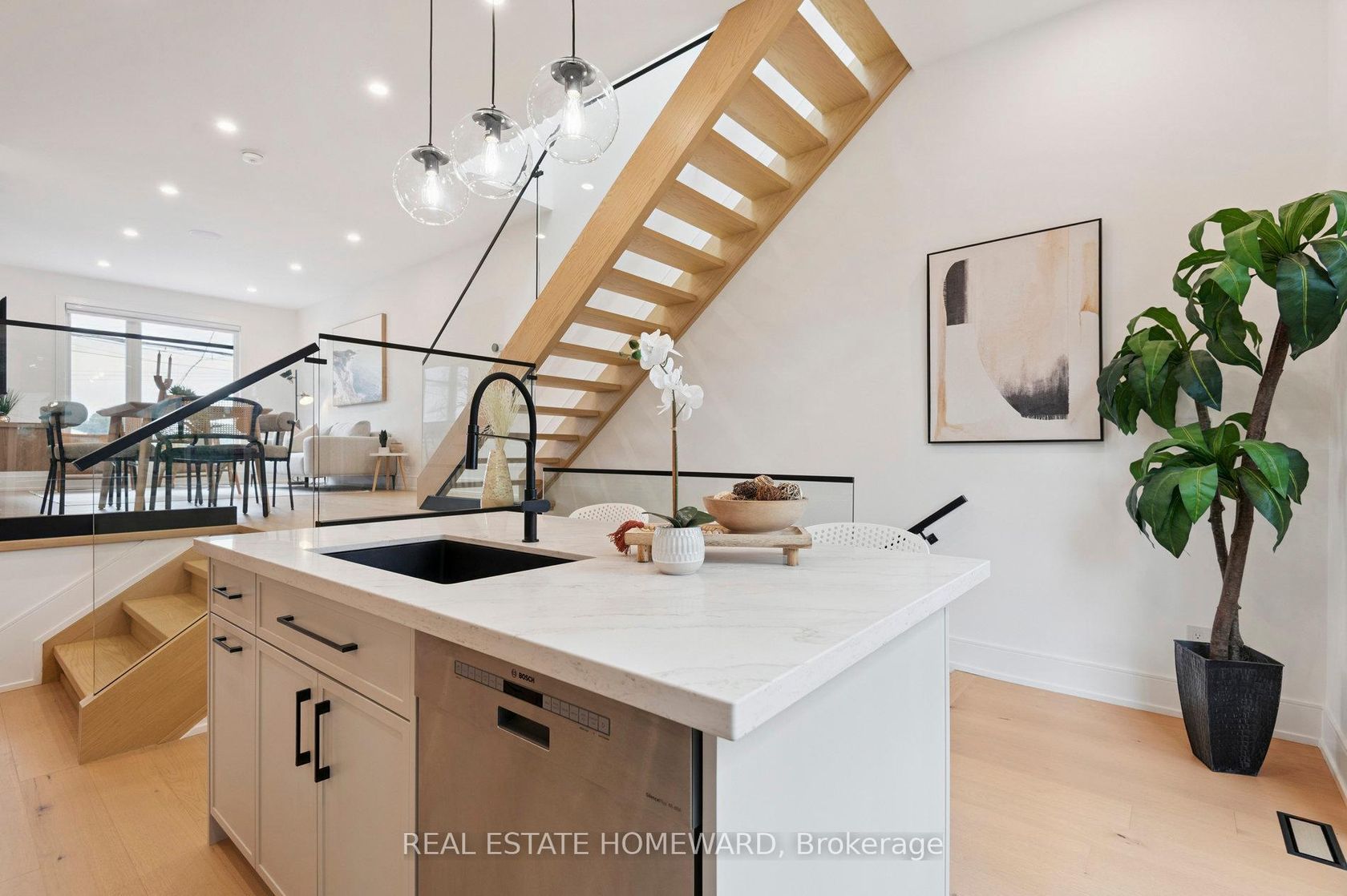 Welcome to this stunning home located in the heart of East York. This 3-bedroom, 3-bathroom detached home offers modern elegance, functionality, and comfort across two thoughtfully designed stories. Step inside to find an open-concept layout filled with natural light, soaring ceilings, and stylish finishes. The gourmet kitchen features sleek cabinetry, quartz countertops, stainless steel appliances, and a spacious island perfect for both cooking and entertaining. The living and dining areas flow seamlessly, creating an inviting atmosphere for gatherings. Upstairs, you'll find the three bedrooms, including a serene primary suite with ample closet space and a beautifully appointed ensuite. Each bathroom features modish details and clean, modern designs. Enjoy the convenience of a built-in garage and private driveway offering parking for two vehicles. Outside, the contemporary exterior pairs beautifully with the landscaped front yard, creating a true curb appeal statement. This home is ideally situated just minutes from the Don Valley Parkway, making commuting a breeze. You're also steps away from scenic ravine trails, neighborhood parks, great schools and a variety of local shops, cafes, and amenities.