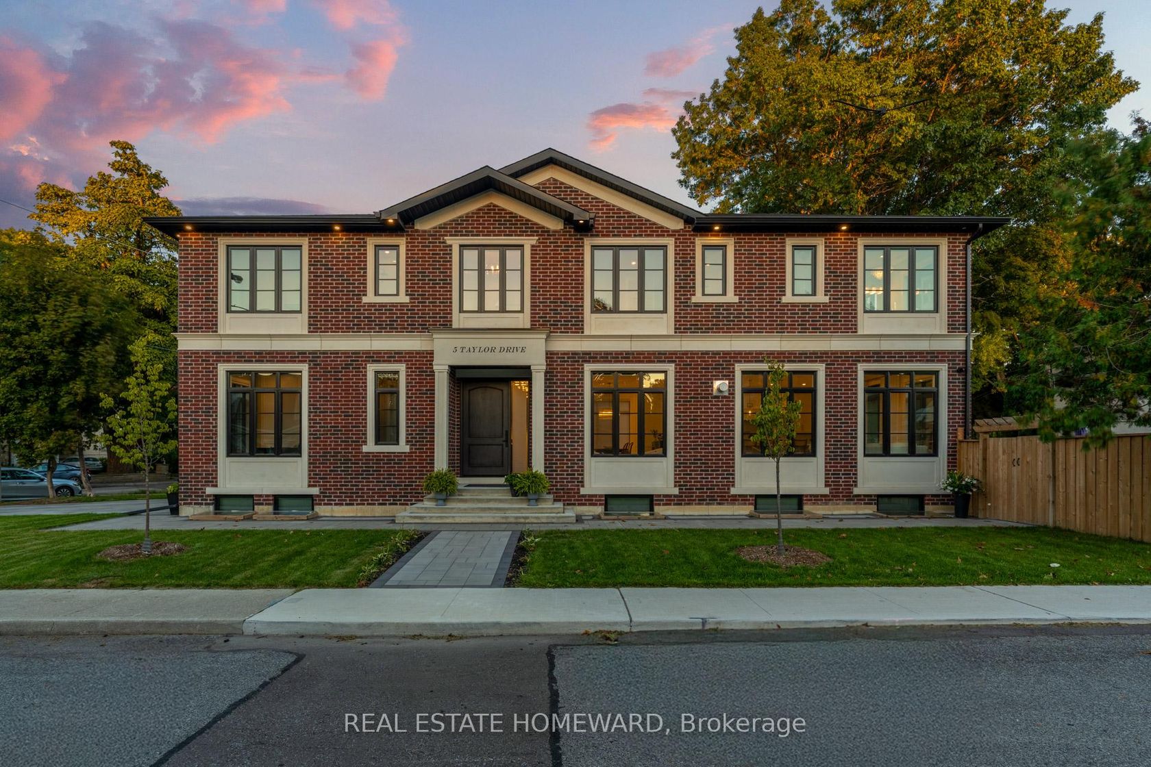 Welcome to 5 Taylor Drive, an architectural masterpiece redefining luxury living in East York. This custom-built home (2023) offers nearly 5,000 sqft of finished space with 5+1 bedrooms and 7 bathrooms. Located in one of East York's most desirable pockets, it sits on a quiet, family-friendly street steps from parks, trails, great schools, and just 15 minutes to downtown or Yorkville. Inside, you're welcomed by 10-foot ceilings, seamless finishes, and natural light that carries through the open layout. The main floor features a double-sided porcelain gas fireplace connecting the living and family rooms, and a chefs kitchen with top of the line JennAir appliances (42" integrated refrigerator, 36" Wi-Fi dual-fuel range, wall and speed ovens), and custom cabinetry surrounding a gorgeous island making hosting a breeze! A private sunlit office with park views, a tucked-away powder room, and a walkout to the landscaped backyard and deck complete the main level. Upstairs, the primary suite includes a spa-inspired ensuite, walk-in closet, and blackout blinds. The ensuite offers a freestanding soaker tub, steam shower, double vanity, and private water closet. Each additional bedroom has its own ensuite, while the third-floor bedroom features cathedral ceilings and treetop views of the ravine.The walk-out lower level is built for comfort and entertaining with radiant heated floors, a temperature-controlled wine cellar, wet bar, lounge with fireplace and built-ins, a sixth bedroom, bathroom, and generous storage. Outside, the landscaped yard, deck, and private corner lot extend the living space beautifully. Every detail has been considered, including dual Armstrong Pro Series HVAC systems with VanEE HRV, motorized blinds, in-ceiling speakers, CAT6 wiring, central vacuum, RainX-coated windows, and parking for five cars between the garage and private drive. 5 Taylor Drive isn't just where you live it's where your life unfolds beautifully. From surreal to so real, this is the one.