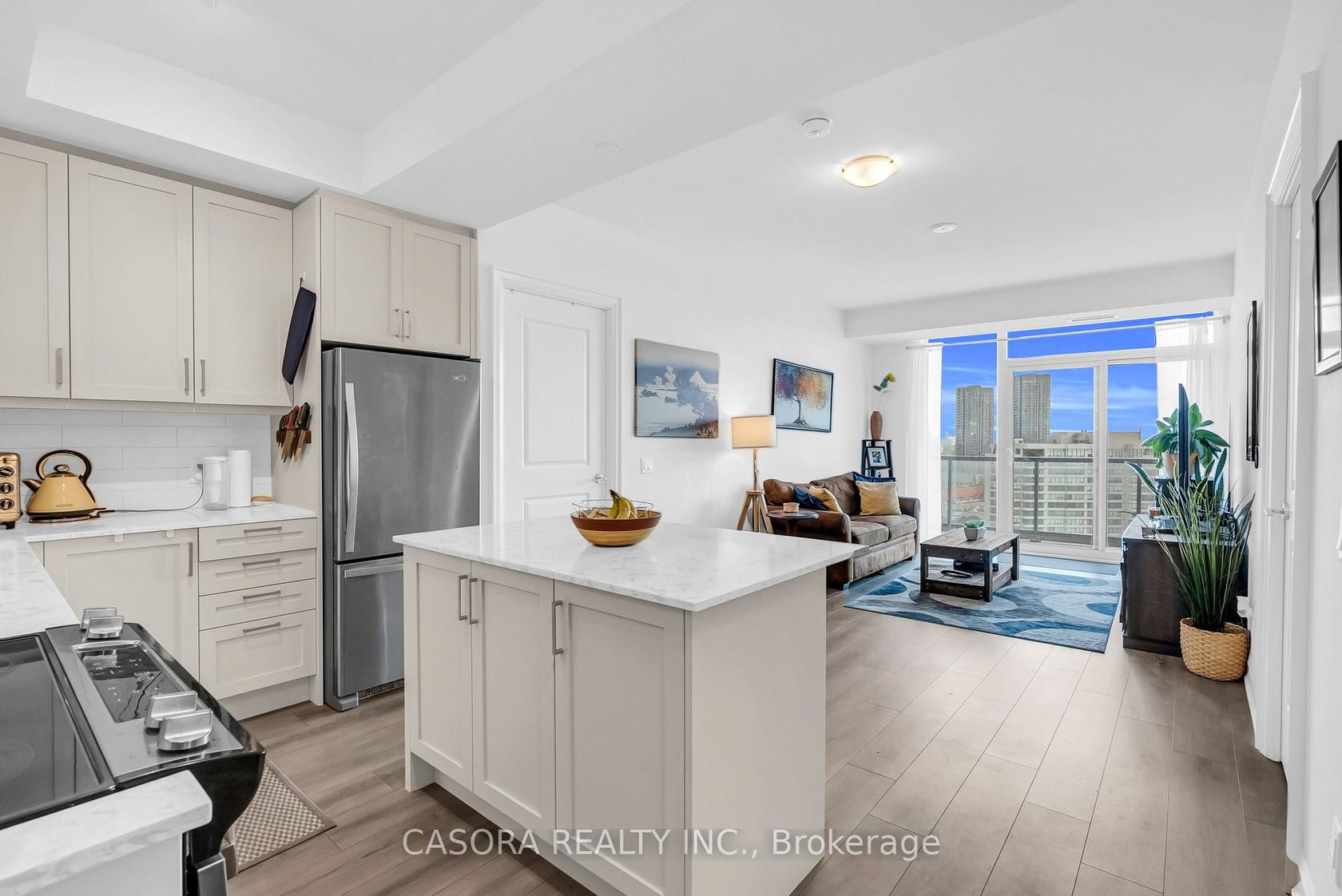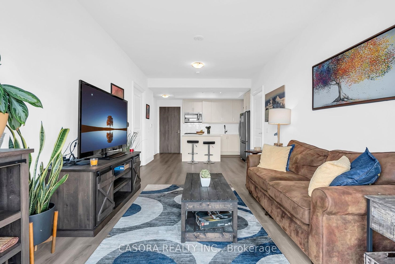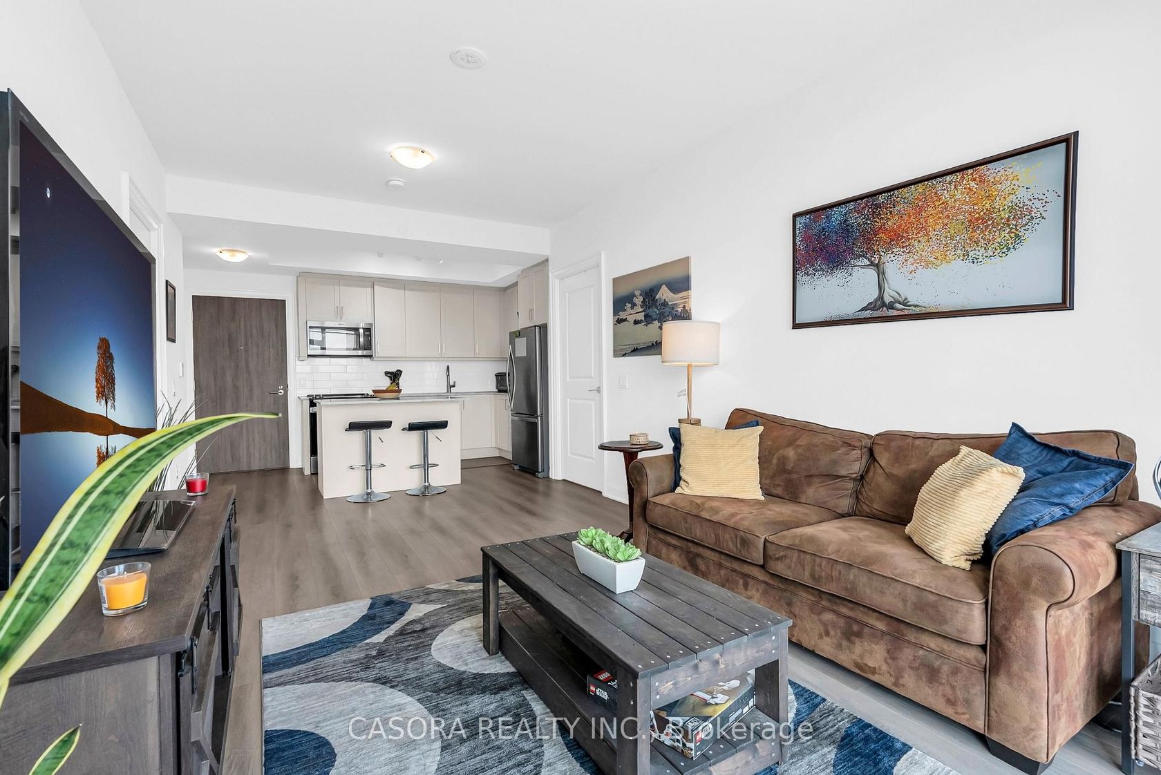 Welcome to modern luxury living in the heart of Thornhill! This stunning 2 bedroom 2 bathroom suite offers the perfect combination of style comfort and convenience in one of the most desirable condo communities. From the moment you walk in you will appreciate the open concept layout that seamlessly connects the living dining and kitchen areas. Soaring 9 ft ceilings and floor to ceiling windows flood the unit with natural light creating a bright airy and inviting atmosphere. The modern kitchen is equipped with full size stainless steel appliances sleek cabinetry ample counter space and a functional island making it the perfect spot for cooking and entertaining. Each bedroom is generously sized and filled with natural light. The primary suite boasts its own elegant ensuite bathroom and a spacious closet while a second full bathroom with modern finishes adds to the units functionality. Step outside onto the covered balcony ideally positioned at the quieter back side of the building which offers a peaceful spot to enjoy morning coffee or unwind in the evening. This unit also includes one underground parking space and a storage locker providing both convenience and security. Residents enjoy access to state of the art amenities including a fitness centre yoga studio indoor pool sauna steam room party lounge business centre and the reassurance of a 24 hour concierge and security service. The location is unbeatable just steps to transit top rated schools parks shopping centres groceries and dining and only minutes from Promenade Mall Winners HomeSense T&T Walmart and SmartCentres. Quick access to Highways 7 and 407 makes commuting simple and efficient whether you are heading downtown Toronto or exploring York Region. This residence offers the best of both worlds modern luxury living within a vibrant connected community. Elegant yet cozy bright yet serene this unit is ready to welcome its next homeowner.