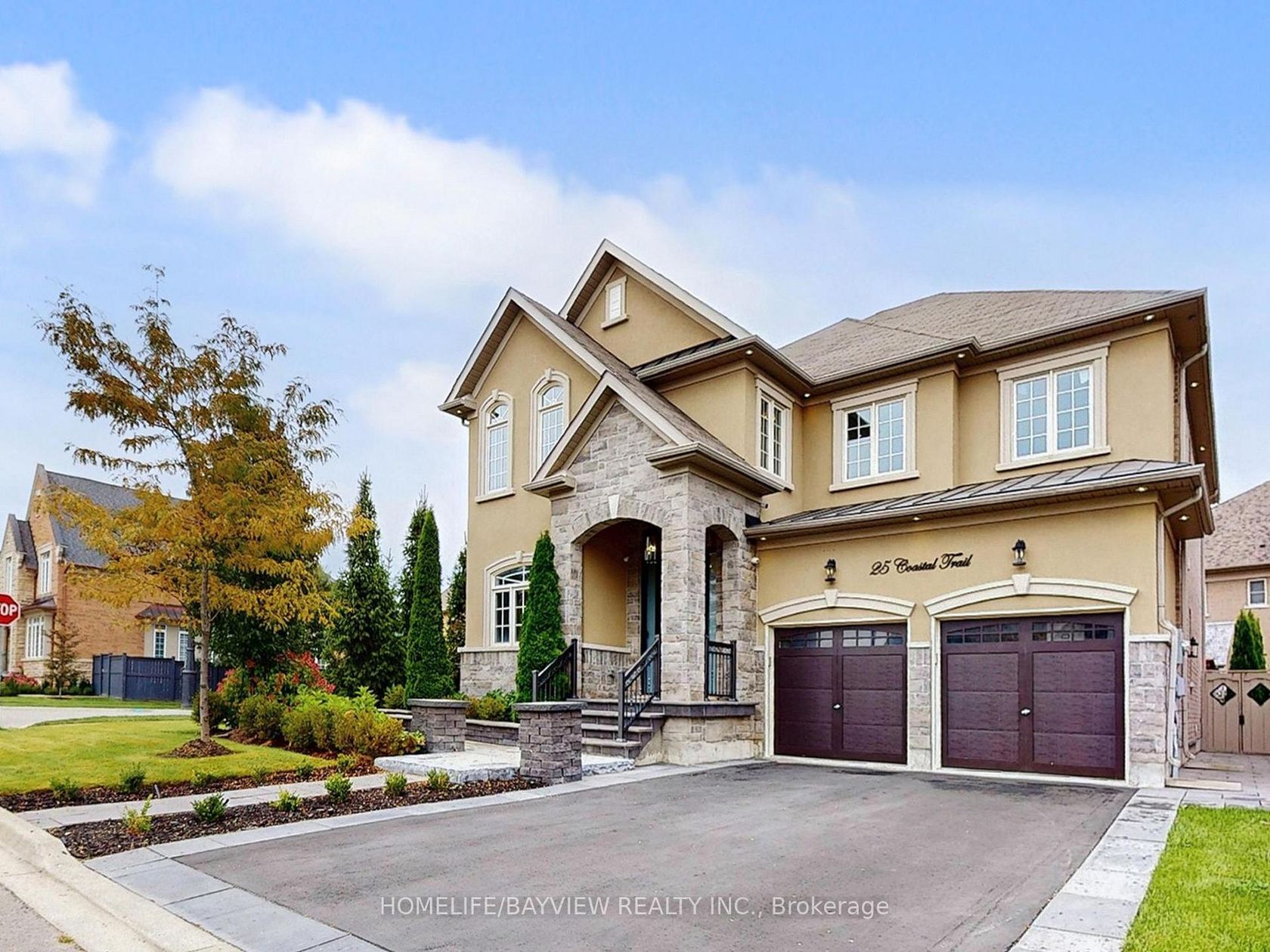 Welcome To 25 Coastal Trail Located In Nobletons Most Prestigious Area, Surrounded By Elite Estates. This Home Features 3700 Sq.Ft.4+1 Bedrooms And 4 Bathrooms, Sitting On A Premium South Facing Corner Lot. Great Layout With Tons Of Windows Bringing In Natural Light Throughout! 9ft. Ceilings On The Main Floor. Exceptional Craftsmanship, And Immaculate Detailing Define This Luxury Property. Features Include: Coffered Ceilings, Crown Mouldings, Hardwood Floor thru-out main Level, Rich Solid-Core Doors, Main floor and Hallway Millwork, And A Grand Family Rm With 19 Ft Ceilings. The Chefs Kitchen Showcases presents an Upgraded Designer Kitchen w/Ss Refrigeration,6 Burners Gas Stove, Double Wall Ovens, B/I Dishwasher, Pantry Cabinet, Granite Countertops, Marble Backsplash and Island. A Spacious and Open Concept Breakfast Area Overlooks The Private Backyard Oasis. The Main Floor Offers Formal Living And Dining Rooms w/a Designer B/I Wall unit and a Custom Wine Cooler. A Private Office With all Paneled walls. Convenient Main floor Laundry w/Mud Room Area and B/I Shelves. The Primary Suite Features a Juliet Balcony, Spa-Like Ensuite, All Designer wallpaper walls And A Walk-In Closet w/Custom Organizer. Three Additional Bedrooms Each Offer Ensuites. An Open Concept Basement area to be finished by your Preference. 200 Amp Electrical Panel, Security System, Outdoor Speakers, Outdoor Conduits, Upgraded Baseboard And Sprinkler System! Exceptional Exterior With Beautiful Hard And Soft Landscaping Enjoy An Entertainers Backyard With fully Interlocked Patio, Gazebo, Bbq gas Hook up. A Property That Redefines Luxury, Privacy, And Prestige.