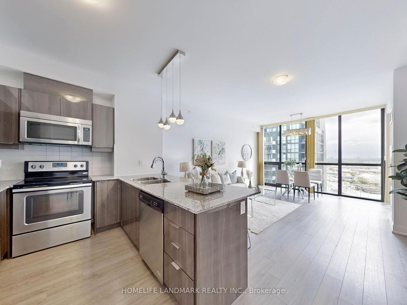 Welcome to This Bright and Beautifully updated condo, Ideally situated facing southeast Corner, Allowing for Plenty of Natural Light Throughout the Day. This Spacious Unit Features 1 Bedroom Plus a Den, Making it Perfect for a Home Office or Guest Room.Enjoy the Convenience of Two Modern Washrooms, Ideal for Both Comfort & Privacy. Located on Highway 7/Jane, Walking from the Subway Station, Close to Hwy 407/400, Providing Easy Access to the City & York University. For those who love shopping, Only a Few Minutes' Drive to Costco and A Vibrant Shopping Centre. New Painting, New Smart Washing Machine & Dryer with Steam Sterilization for your Laundry Needs. The Prime Bedroom Features a Stylish New shower, Toilet & Faucet, Ensuring a Luxurious Experience.Additional Highlights include Elegant New Crystal Lighting, High Ceilings that Enhance the Spacious Feel of the unit, Centre island with Beautiful Quartz Stone, Perfect for Cooking and Entertaining. New Water Purifier adds to the Convenience and Comfort of Your New Home. State Of Art Amenities Includes:Theatre, Party Room. Guest Room, Swimming Pool, Sauna, And 24 Hour Conc. Don't Miss this Opportunity to Own a Home that Perfectly Blends Style, Comfort, and Location!