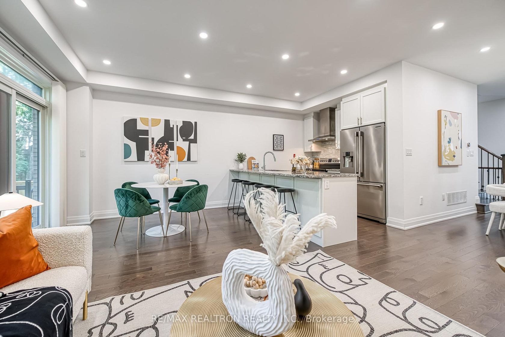 Nestled in the prestigious and tranquil community of Bayview Gardens, this exquisite 2-storey townhome seamlessly blends luxury, comfort, and convenience. Situated on a quiet cul-de-sac with minimal traffic, its the perfect retreat for families or anyone seeking a peaceful lifestyle. Step inside to discover 9-ft smooth ceilings and hardwood flooring throughout both levels, complemented by a staircase with elegant wood railings and wrought-iron spindles. The open-concept main floor is designed for modern living, enhanced with brand-new pot lights that create a bright and inviting ambiance. The gourmet European-style kitchen features an oversized quartz island ideal as a breakfast bar along with direct garage access, a sidewalk-free driveway, and a walk-out from the breakfast area to a private backyard deck. The primary suite offers a luxurious escape, complete with a 5-piece ensuite, spacious walk-in closet, and charming bay windows that fill the room with natural light. The 2nd and 3rd bedrooms impress with soaring 11-ft raised ceilings, creating an enhanced sense of openness. All bathrooms throughout the home are tastefully upgraded with quartz countertops. The finished basement, completed by the builder, adds remarkable versatility with laminate flooring, a 3-piece bathroom, cold room, and abundant storage ideal for a home gym, playroom, or guest suite. This homes prime location is unmatched within walking distance to RBC, Tim Hortons, and Shoppers Drug Mart, and just minutes to Hwy 404, GO Station, Lake Wilcox, Richmond Green Park, Costco, and Oak Ridges Community Centre. This is more than just a home its a lifestyle. Don't miss the opportunity to make this your dream home!
