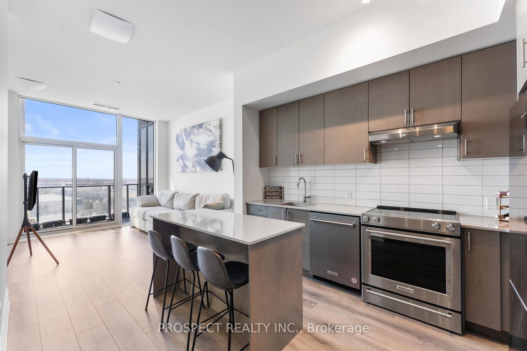 Charisma Tower on Jane is, without a doubt, the premier building to live in within the VMC and surrounding areas. This stunning unit is bathed in natural light, thanks to its soaring 10-ft ceilings and floor-to-ceiling windows, creating an airy, cathedral-like ambiance. Offering 1 bedroom plus a versatile media den, this condo is perfect for anyone seeking stylish and functional urban living. With two bathrooms, you'll enjoy added comfort and convenience, whether hosting guests or enjoying your own space. Built just over a year ago, this 650 sq. ft. unit is designed to impress. The European-style kitchen adds a touch of elegance, blending modern aesthetics with practical functionality. Located just steps from top-tier amenities, Unit 708 is a short 10-metre walk to the fully equipped gym, outdoor summer pool, party room, wellness courtyard, and serenity lounge perfect for unwinding in peace. The building also boasts a spectacular rooftop party room with 360 views of Vaughan, a bocce court, a theatre, a games room, and multiple lounge areas. Living at Charisma means exceptional value, with maintenance fees that provide access to unparalleled facilities. Plus, its prime location puts you just moments from Vaughan Mills Mall, offering endless shopping, dining, and entertainment options. Highway 400 is a quick 5-minute drive, and the TTC subway is equally close, ensuring seamless connectivity. For anyone considering the VMC area, this is a rare opportunity to own a condo that offers both luxury and convenience one that will leave you truly content with your purchase.