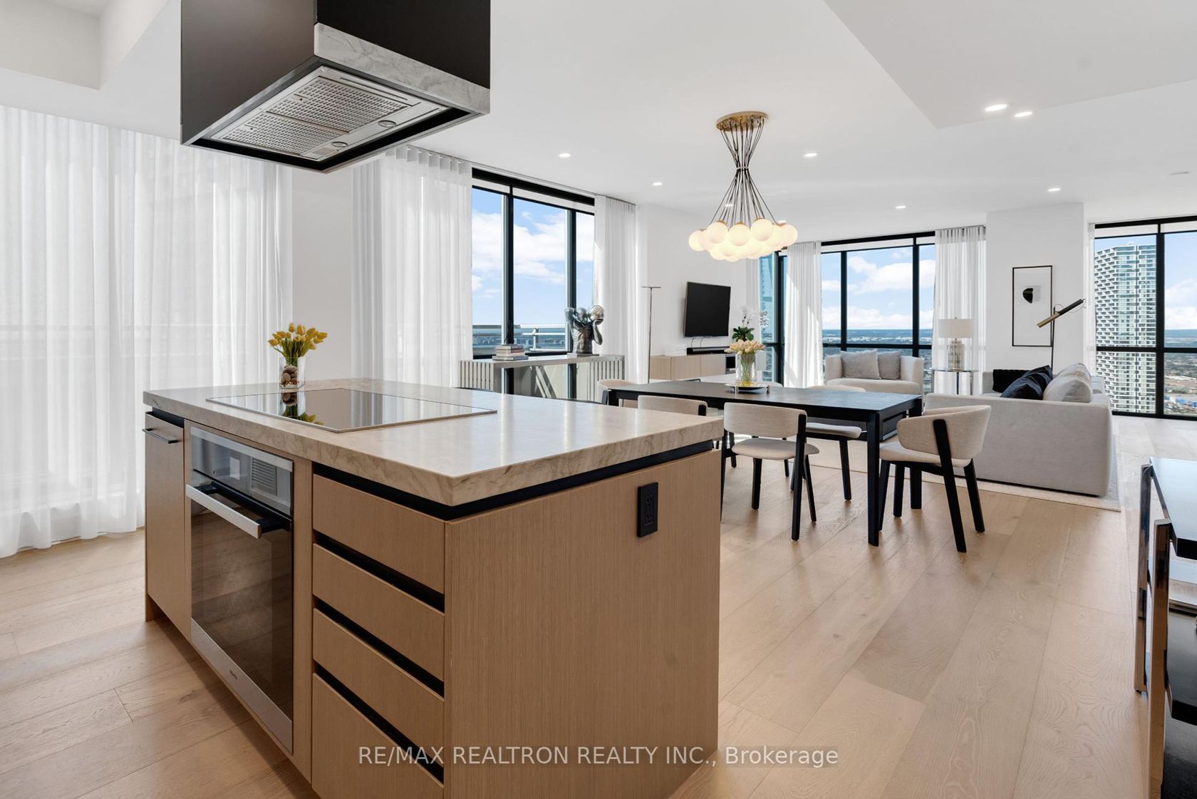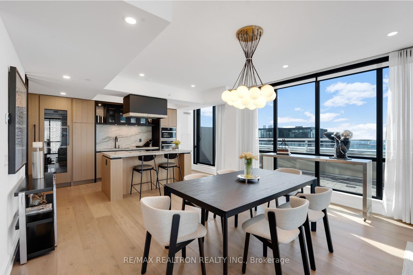 Welcome to the Epitome of Designer Living. This rare, * Fully Furnished * Two-Storey Penthouse in the prestigious Cortel Collection at Nord Condos offers a Turnkey lifestyle of elegance. Spanning 2,220 Sq. Ft., it features a Private Elevator, Three Bedrooms, and Four Elegant Baths. Enjoy a South-Facing Terrace with a BBQ Gas Connection and breathtaking views of the Toronto Skyline. Inside, you'll find Floor-to-Ceiling Windows, Custom Wood Paneling, a Built-In Bar with a Miele Wine Fridge, and a Larissa Quartzite Waterfall Island. The Kitchen boasts Top-of-the-Line Miele Appliances, including a Speed Oven, Steam Oven, and Induction Cooktop, Full Height Fridge + Freezer Tower Units, all integrated with Wood Panel Fronts. Built in Cabinets ln Home Office Area. Grand Primary Suite offers Dual Mirrored Closets and a Spa-Like Ensuite with a Rain Head Shower. Additional Bedrooms also feature Elegant Ensuites and Mirrored Storage. The home is appointed with Designer Fixtures from Kohler and Rubinet, Motorized Blackout Blinds, and Smart Thermostats. Residents enjoy World-Class Amenities like a 24-Hour Concierge, Indoor Pool, Fitness and Yoga Studio, and a Children's Playground with a Splash Pad at Cortellucci Park. Steps from the TTC Subway and close to 407 + 400 Highways, this is a rare offering of Bespoke Finishes and Modern Convenience. Schedule your Private Tour today