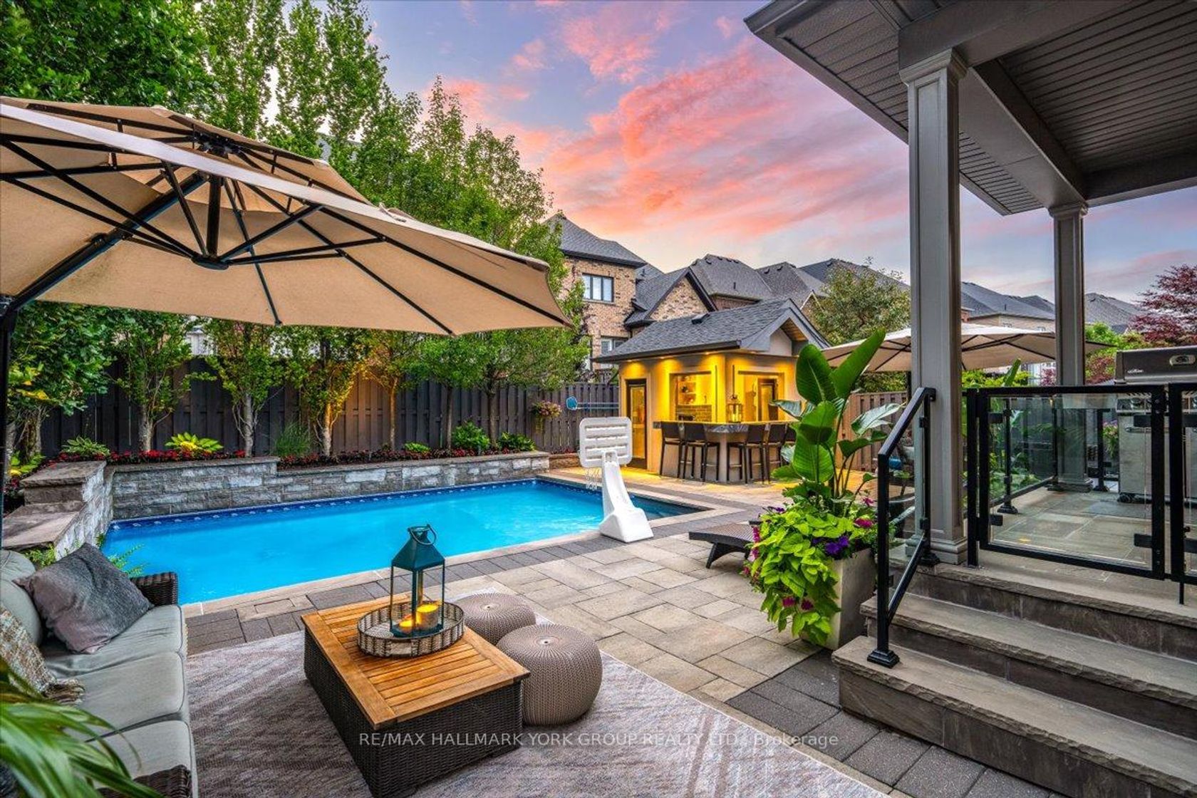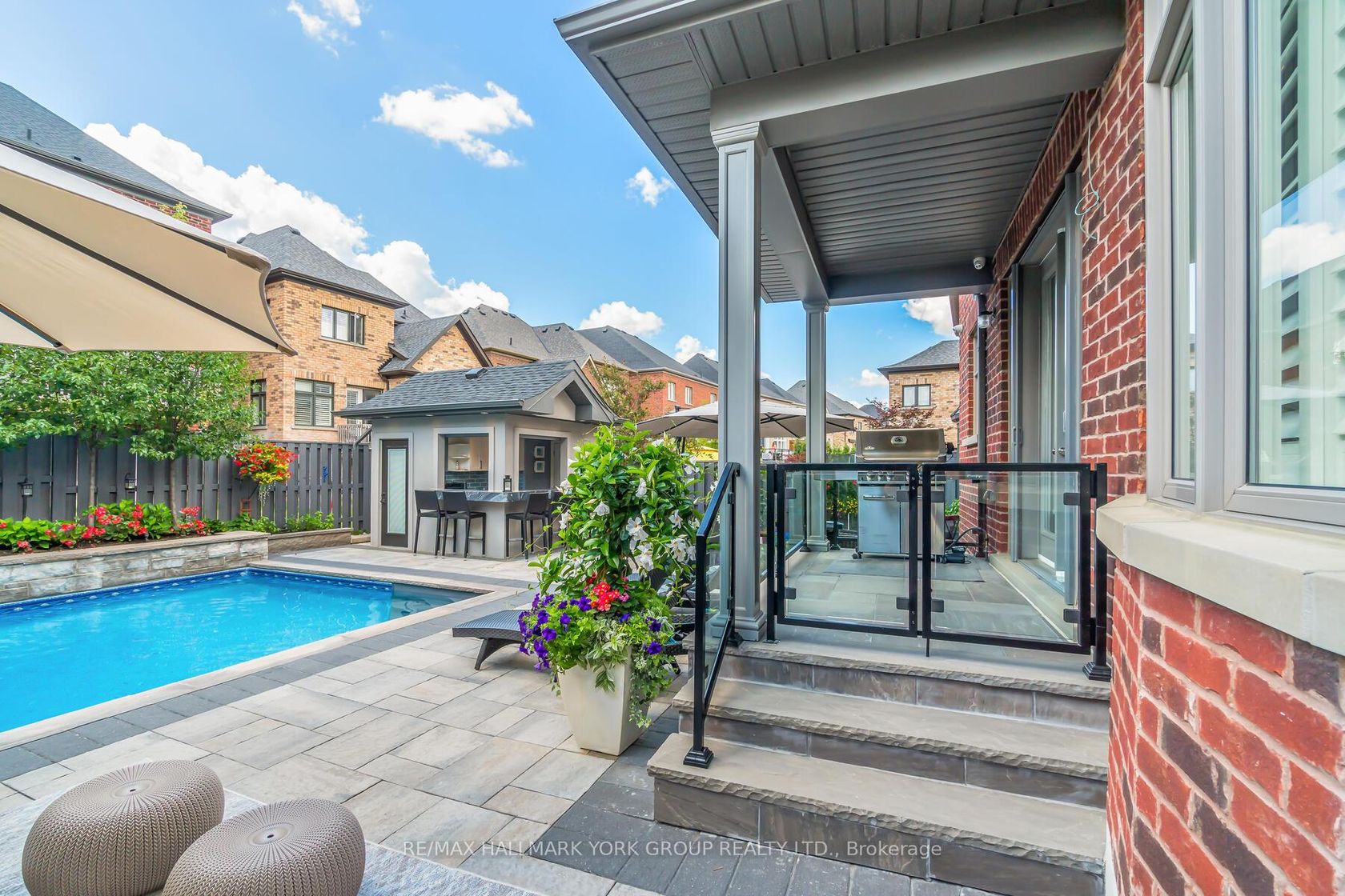 LUXURIOUSLY UPGRADED PROPERTY IN THE HEART OF KING CITY WITH A BACKYARD OASIS! Welcome to this stunning Zancor-built residence, one of the most exquisite and feature-rich homes in the area. This exceptional property is designed to impress, offering a perfect blend of sophistication and comfort. As you enter the main floor, you are greeted by soaring 10-foot ceilings adorned with elegant crown molding, creating an inviting ambiance throughout. The thoughtfully designed layout includes a spacious dining room, ideal for hosting large gatherings, and a gourmet kitchen that will delight any chef. Featuring ample cabinetry, stunning countertops, and top-of-the-line stainless steel appliances, this kitchen also boasts a generous island that enhances your preparation space. The French door walkout leads to a covered loggia, seamlessly connecting indoor and outdoor living, while gorgeous glass railings provide a stunning view of the sparkling pool. The upper level is home to a bright and airy primary suite, complete with a luxurious tray ceiling, an expansive walk-in closet, and 5-piece ensuite bathroom. This level also features a convenient double built-in desk with cabinets, perfect for a home office or study area. The fully finished basement extends your living space and is designed for multigenerational living, featuring a second kitchen, a fully equipped gym, or the option for a fifth bedroom, along with another elegant 4-piece bathroom. Additionally, a second laundry area in the basement adds to the convenience and functionality of this space. Step outside to discover your own private oasis, complete with a beautifully designed cabana The outdoor space is enhanced with professional landscaping, providing tranquility and picturesque views that will leave you enchanted. Located near shopping and parks, walk to Go Train, this property offers the perfect blend of convenience and luxury. Don't miss your chance to own one of the most exceptional homes in all of King City!