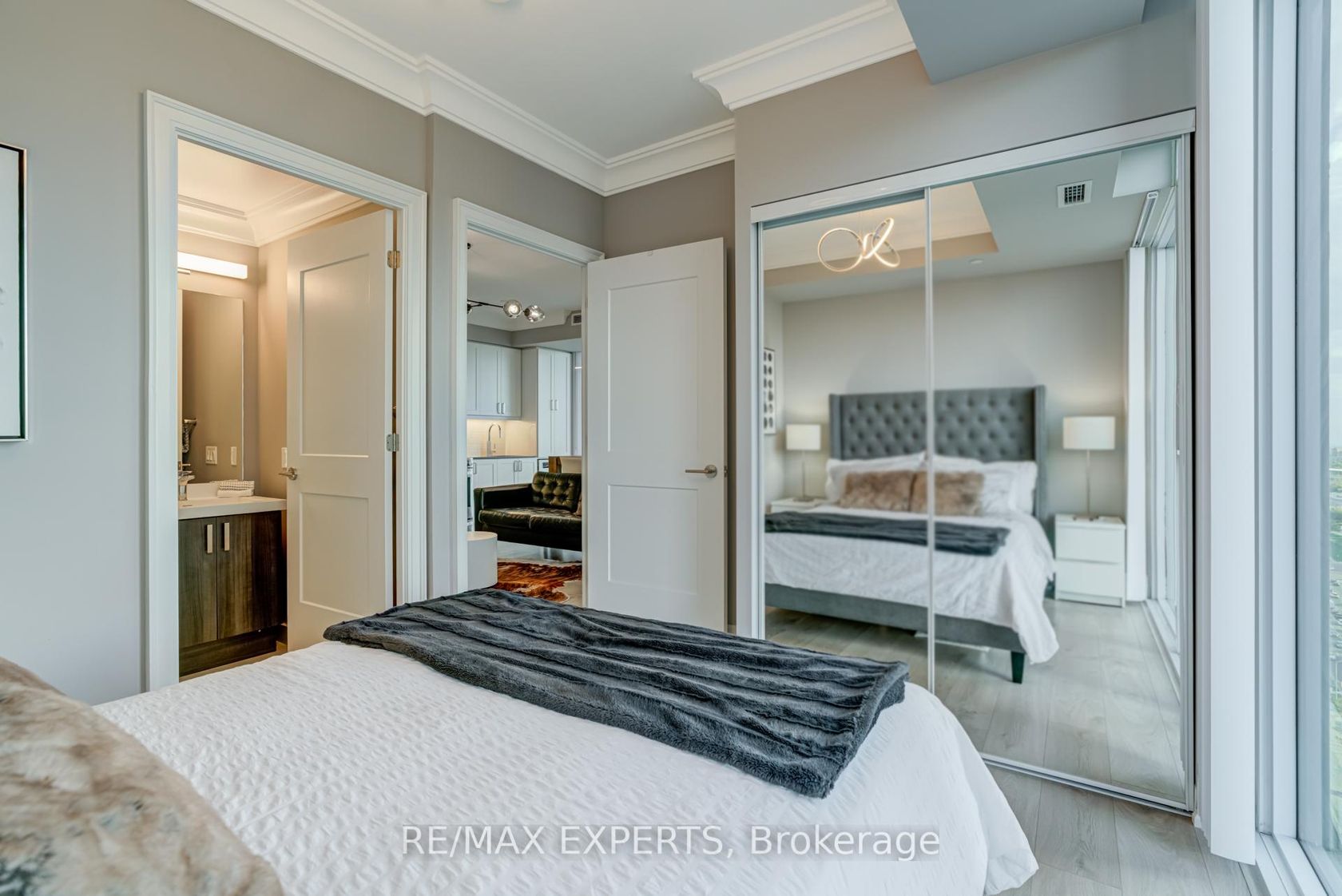 Welcome to The Met, where luxury meets unparalleled convenience! This immaculate Corner Unit offers a sophisticated living experience with 9" Ceilings,, 2 Bedrooms and 2 Full Bathrooms. Step inside to find a host of premium upgrades that set this unit apart: smooth ceilings with exquisite plaster crown moulding, modern baseboard upgrades, and custom oversized door casings. The open-concept layout features a gourmet kitchen with a custom backsplash and upgraded appliances including a KitchenAid fridge with water/ice, a whisper-quiet dishwasher and an LG Studio Range. Storage is maximized with custom closet organizers in both bedrooms and the entrance, and the primary ensuite features an upgraded glass shower enclosure. A central vacuum system, extra pot lights, and new fixtures complete this stunning home. Enjoy your private, large balcony. The unit comes complete with 1Parking space and 1 Locker. The Met offers a true urban oasis with a 24-hour concierge and premium amenities, including a Gym, Party Room, Games Room, Theatre Room, and Outdoor BBQ & Lounge. You are literally steps to the VMC subway station, offering a stress-free connection to York University and Union Station. Quick access to Highways 400 and 407 makes commuting a breeze. Don't miss this one!
