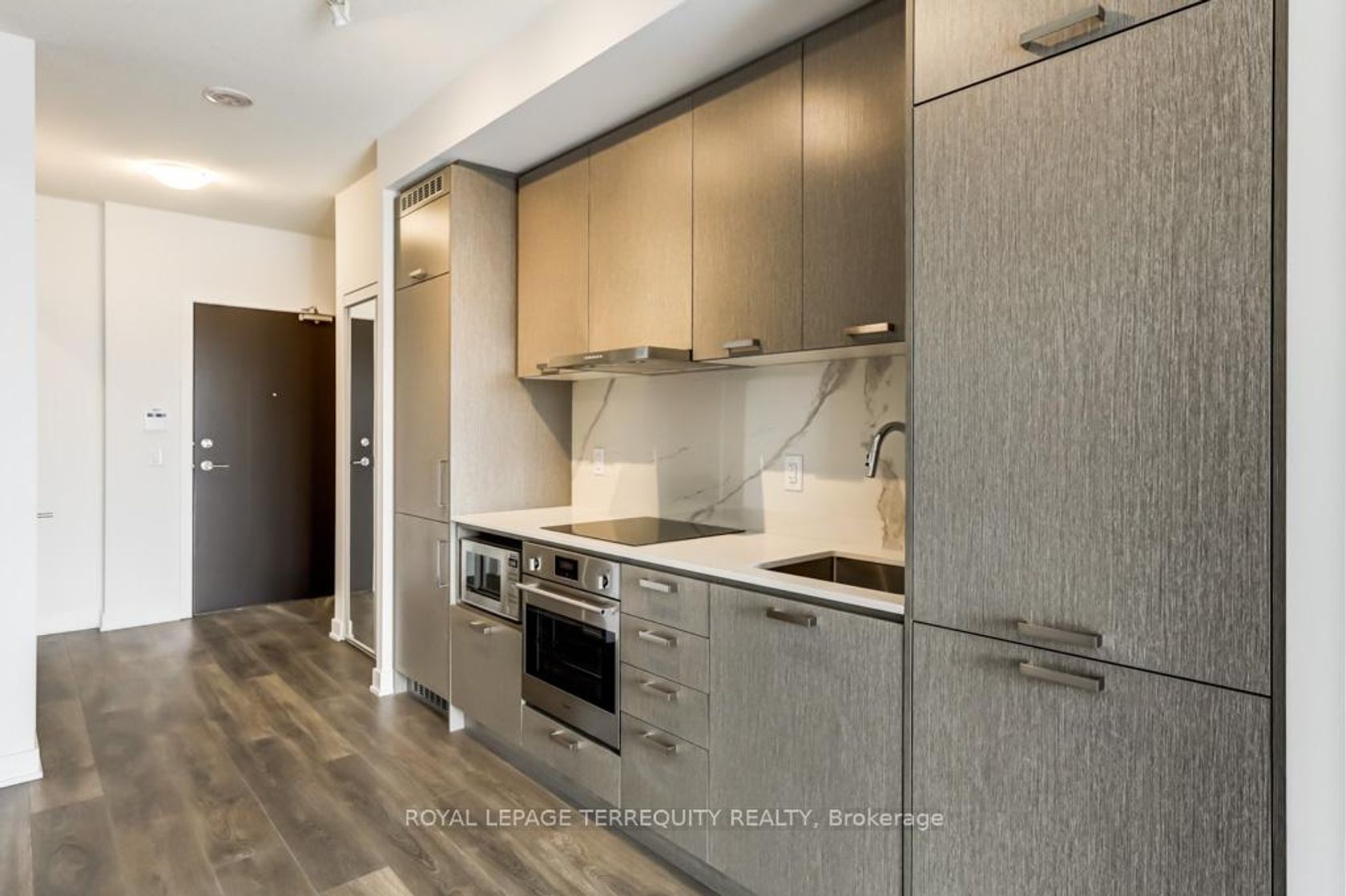 Welcome to refined, state-of-the-art living in the heart of Vaughan. Completed in 2023, the prestigious Mobilia East Tower by Menkes offers an exceptional One Bedroom + Den residence designed for modern luxury and effortless living. This bright and beautifully appointed suite features floor-to-ceiling windows with unobstructed south views, filling the space with natural light. The stunning contemporary kitchen is finished with integrated appliances, premium cabinetry, and a sleek marble backsplash - creating a seamless, upscale aesthetic ideal for both everyday living and entertaining. The separate den offers outstanding versatility and can be comfortably used as a second bedroom or a private home office. Residents enjoy access to an impressive collection of state-of-art amenities, including a fully equipped fitness centre, kids playroom and outdoor play area, party room, TV and games lounge, theatre room, private dining alcoves, guest suites, bike storage, BBQ's and 24-hour Concierge service, all complemented by advanced security with facial recognition entry. Ideally situated steps from premier shopping, dining, and entertainment, Costco, IKEA, movie theatre, and Vaughan Mills Mall - with easy access to public transit and highways 401, 407 and Hwy 7. An exceptional opportunity to experience elevated condo living in one of Vaughan's most desirable new communities.