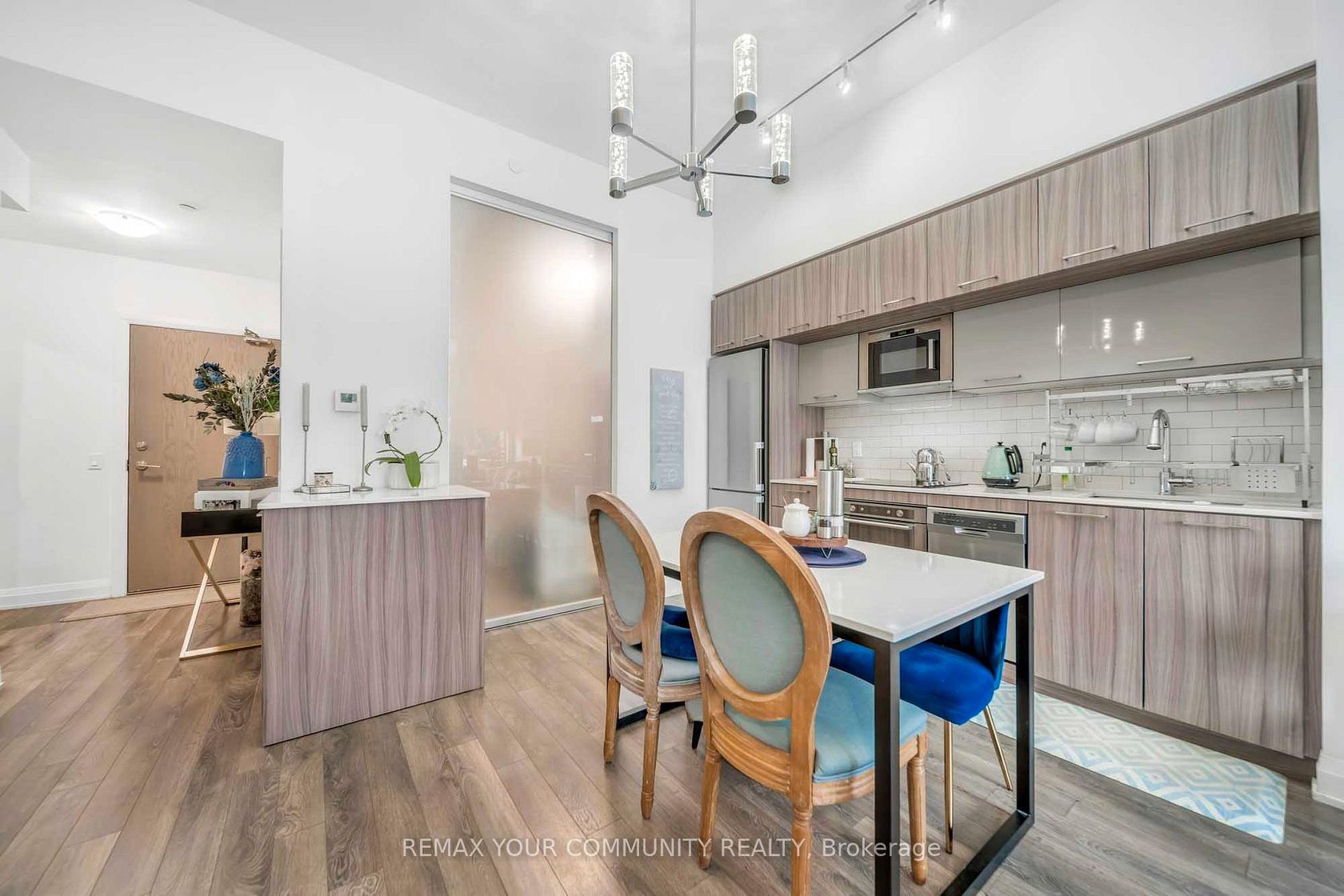 Welcome to Luxury Living at this Beautiful Ground Level 2 Bedroom Condo that feels like a Townhouse at the Prestigious Avenue on 7 Condos in Vaughan. With Soaring 10ft Ceilings and a Unique Over sized Interlocked Terrace with BBQ Gas Line that's Perfect for Entertaining or Enjoying a Relaxing Cup of Coffee in the Morning Watching the Sunrise. Enjoy Condo Living Amenities with Townhouse Style and Comfort. No more Waiting For Elevators! The Functional Open Concept Layout has Plenty of Space for a Dining Area and a Large Living Room with Enough Space for the Whole Family and Floor to Ceiling Windows Letting in Tons of Natural Light. The Modern Two Tone Kitchen features Built-in High End Appliances, Quartz Counter Tops and Plenty of Storage with a Separate Island that Can Be Used as Additional Counter Space. The Generously Sized Primary Bedroom Offers Floor to Ceiling Windows with High Ceilings creating an Open and Inviting Space. The Private Terrace with Unobstructed Views Truly Makes this Unit Stand Out From the Rest Making it an Ideal Option for Those looking for Outdoor Living Spaces. With Hotel like Amenities including a Roof Top Saltwater Pool, Roof Top Playground, BBQ's, Cabanas, High End Exercise Room, Sauna and a Luxuries Party Room and Game Room perfect for All Your Events. Excellent Walking Score with Multiple Transit Options Including Viva and Zum. Walking Distance to High Ranking Schools like Woodbridge College, Downtown Woodbridge, Local Library, Hockey Arena and Countless Amenities, Parks, Shops, Grocery and Restaurants at your Foot Steps. This is truly an Unique Unit that should not be missed!